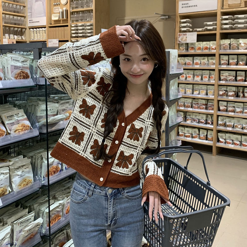 Осенний короткий трикотажный свитер с бантиком, большой размер, V-образный вырез, подходит для полных девушек, свободный крой