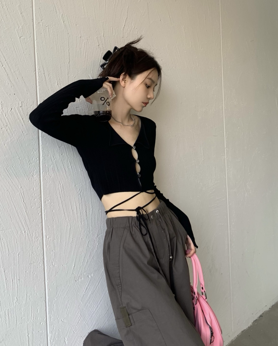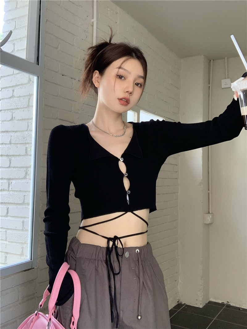 Дизайнерский ремень, зеленый лонгслив, трикотажный свитер, летний короткий кардиган, тренд сезона, V-образный вырез