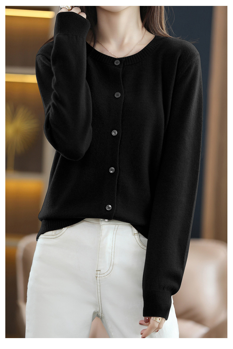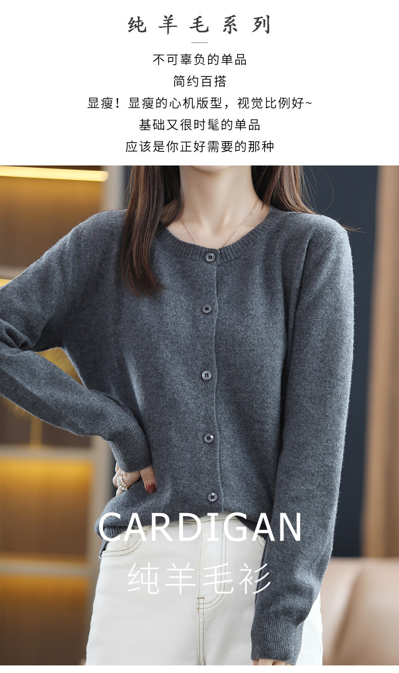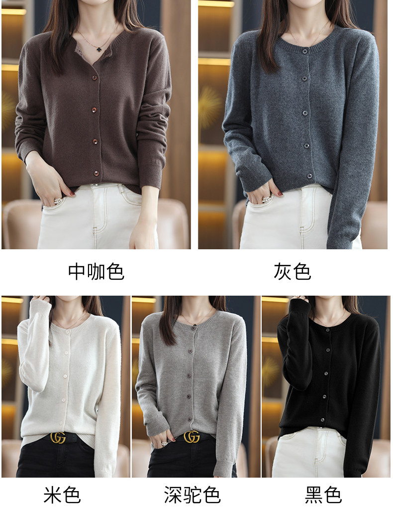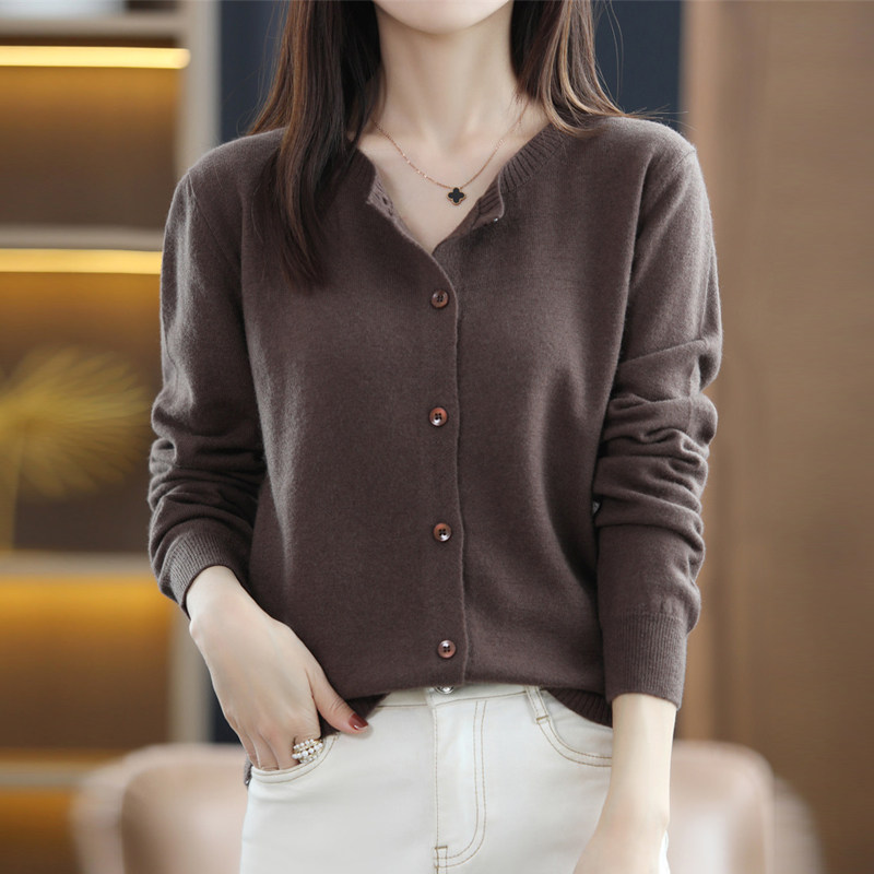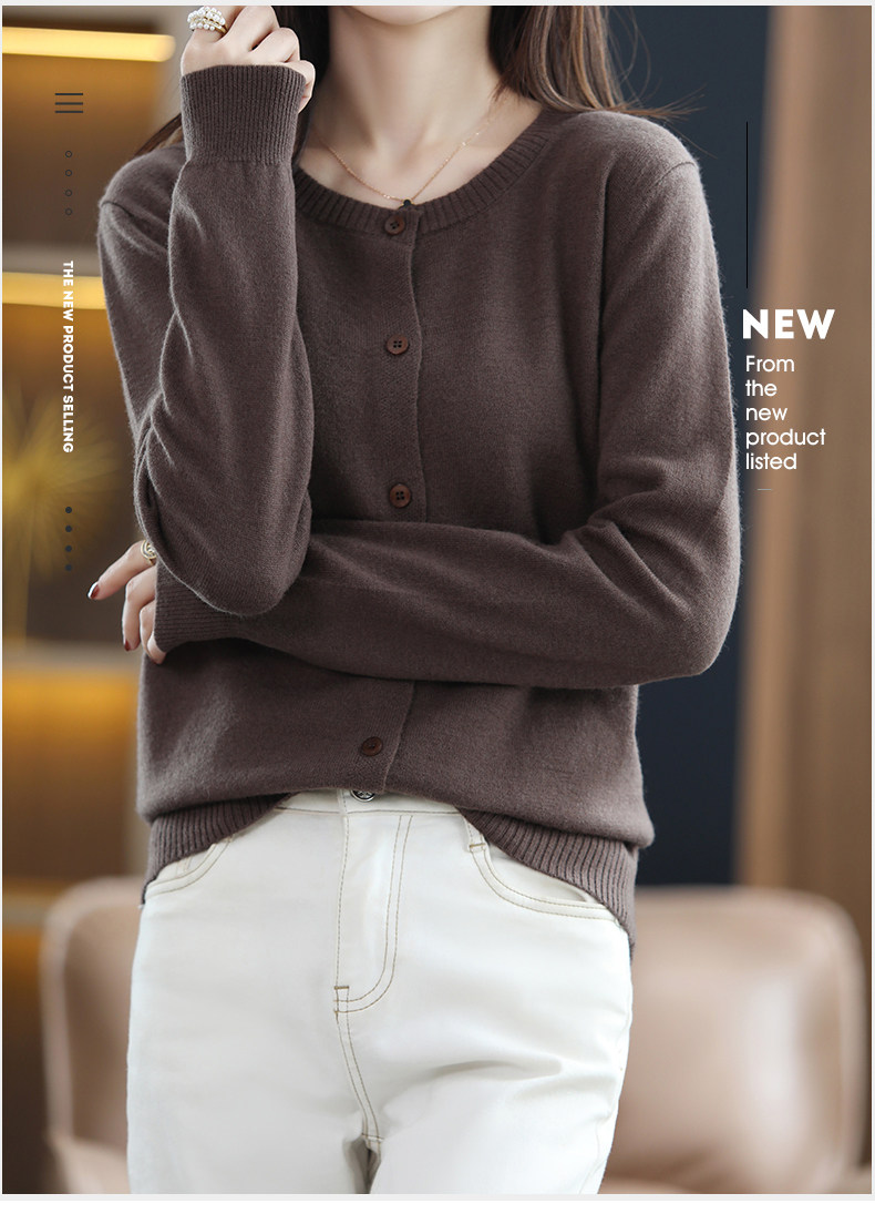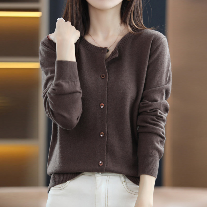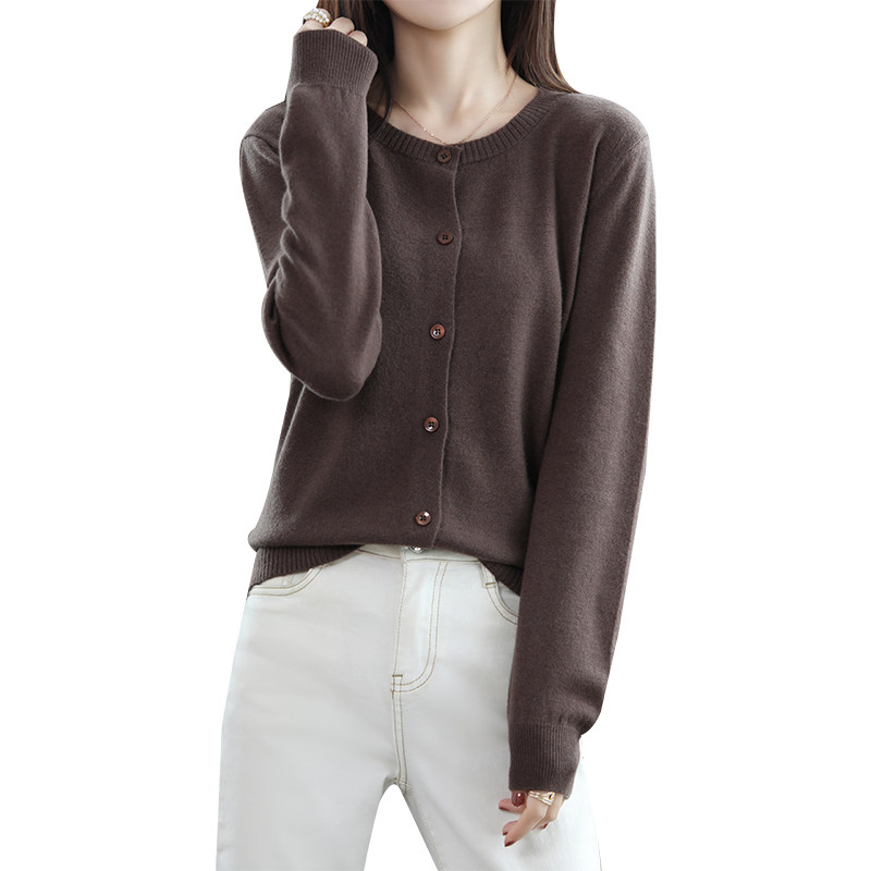 Осенний шерстяной тонкий кардиган, свитер с круглым воротником
