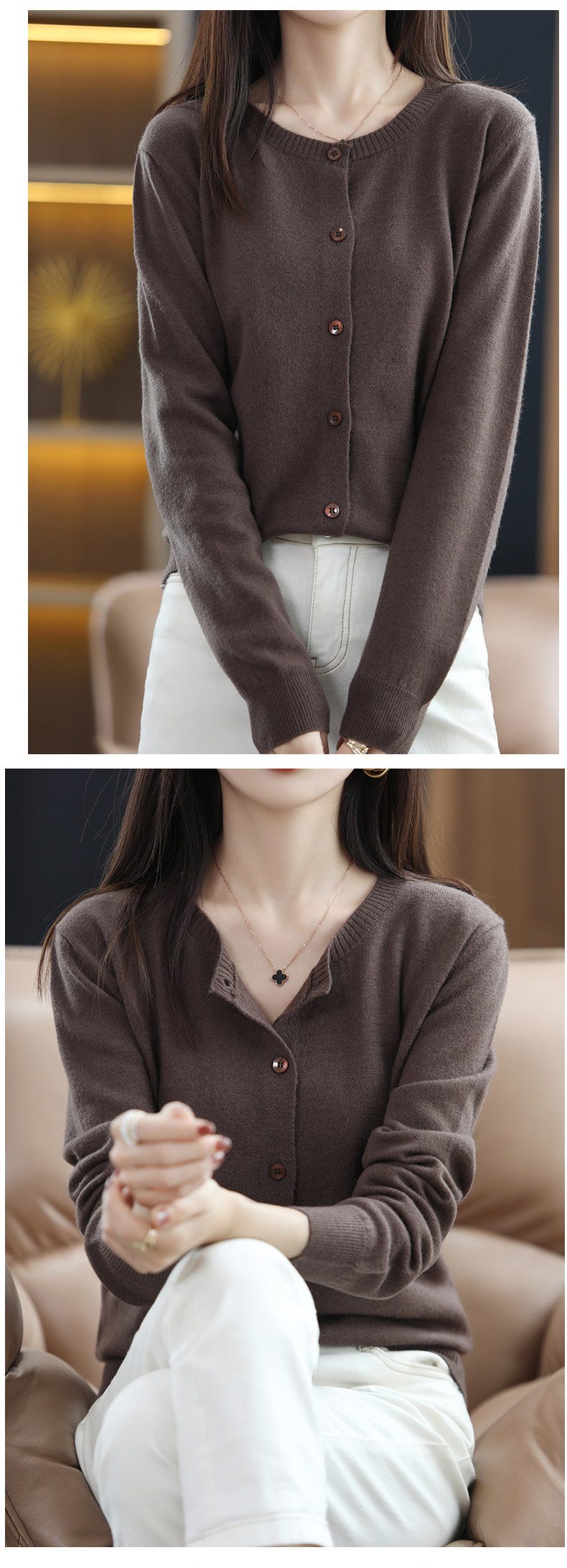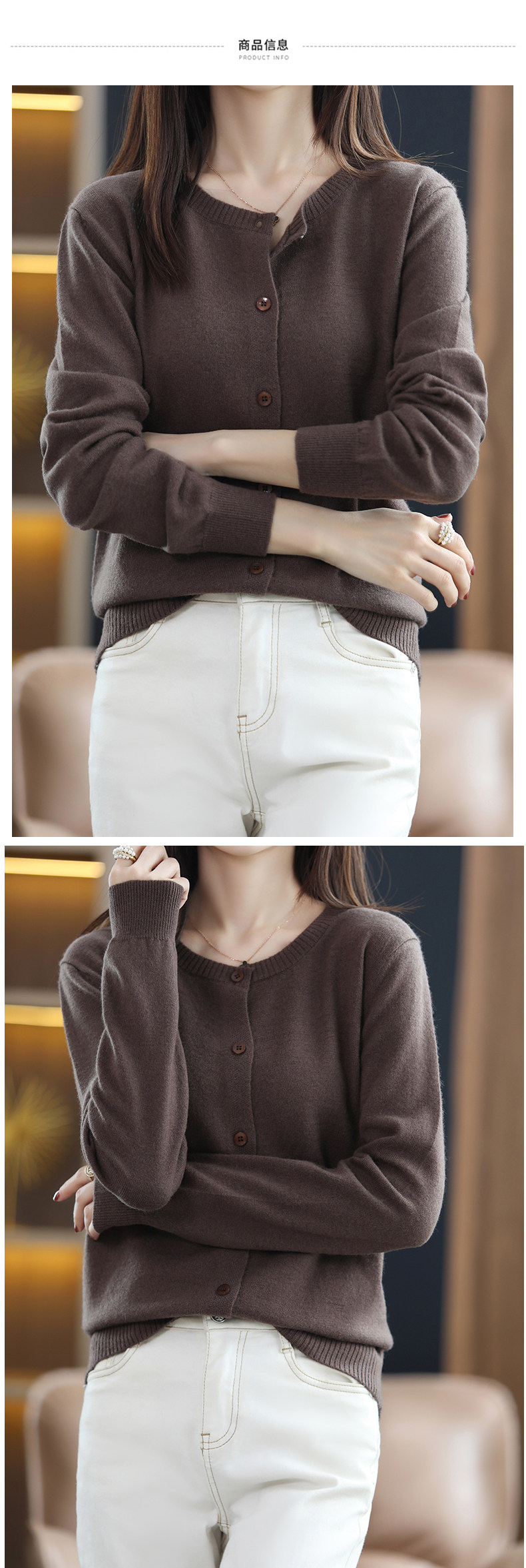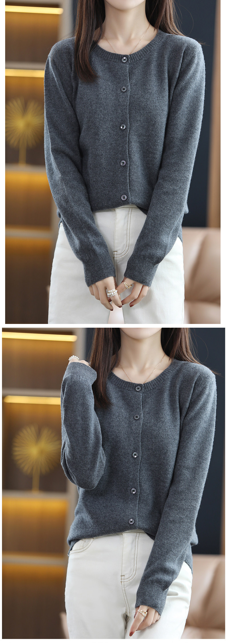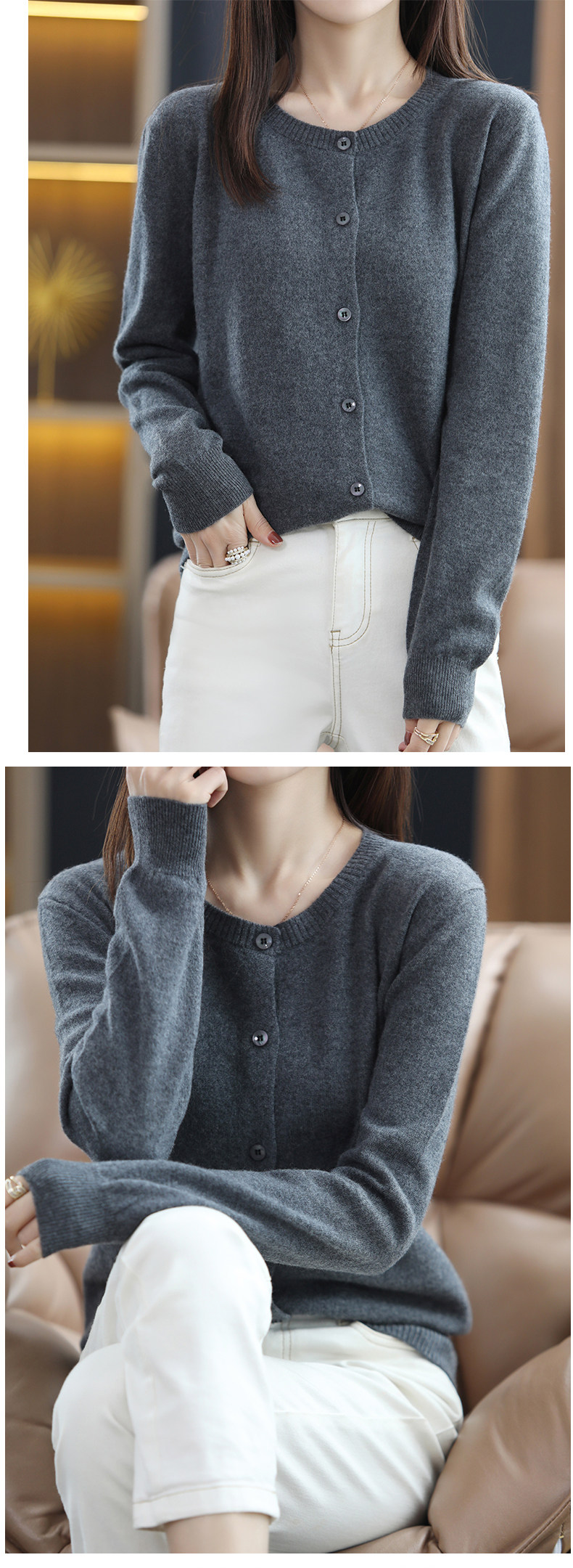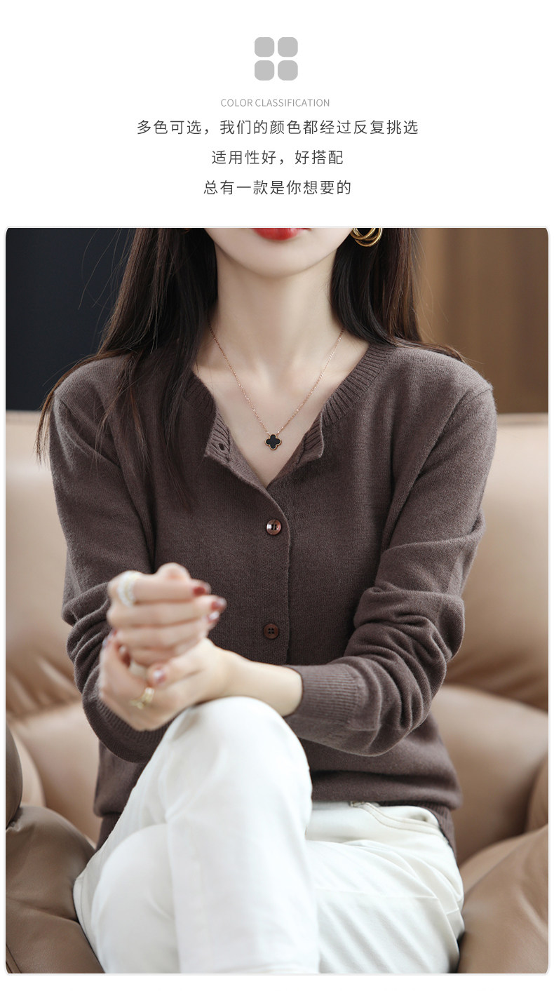 Осенний шерстяной тонкий кардиган, свитер с круглым воротником