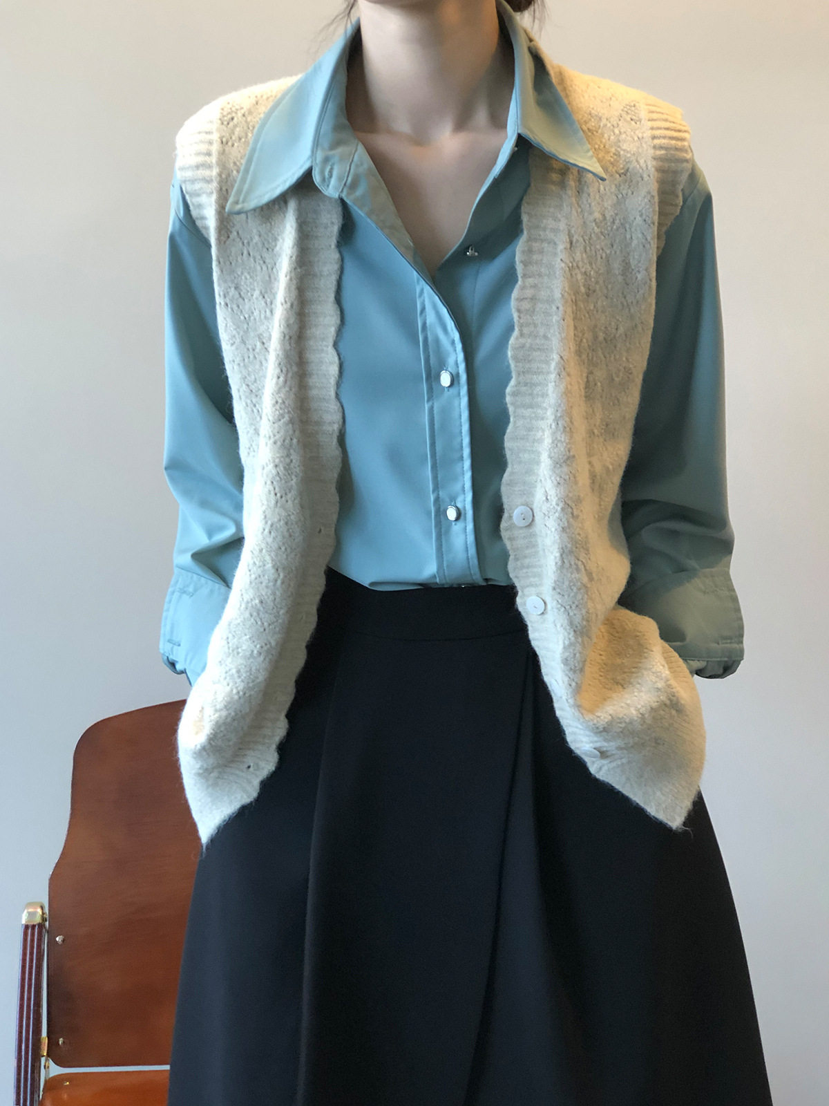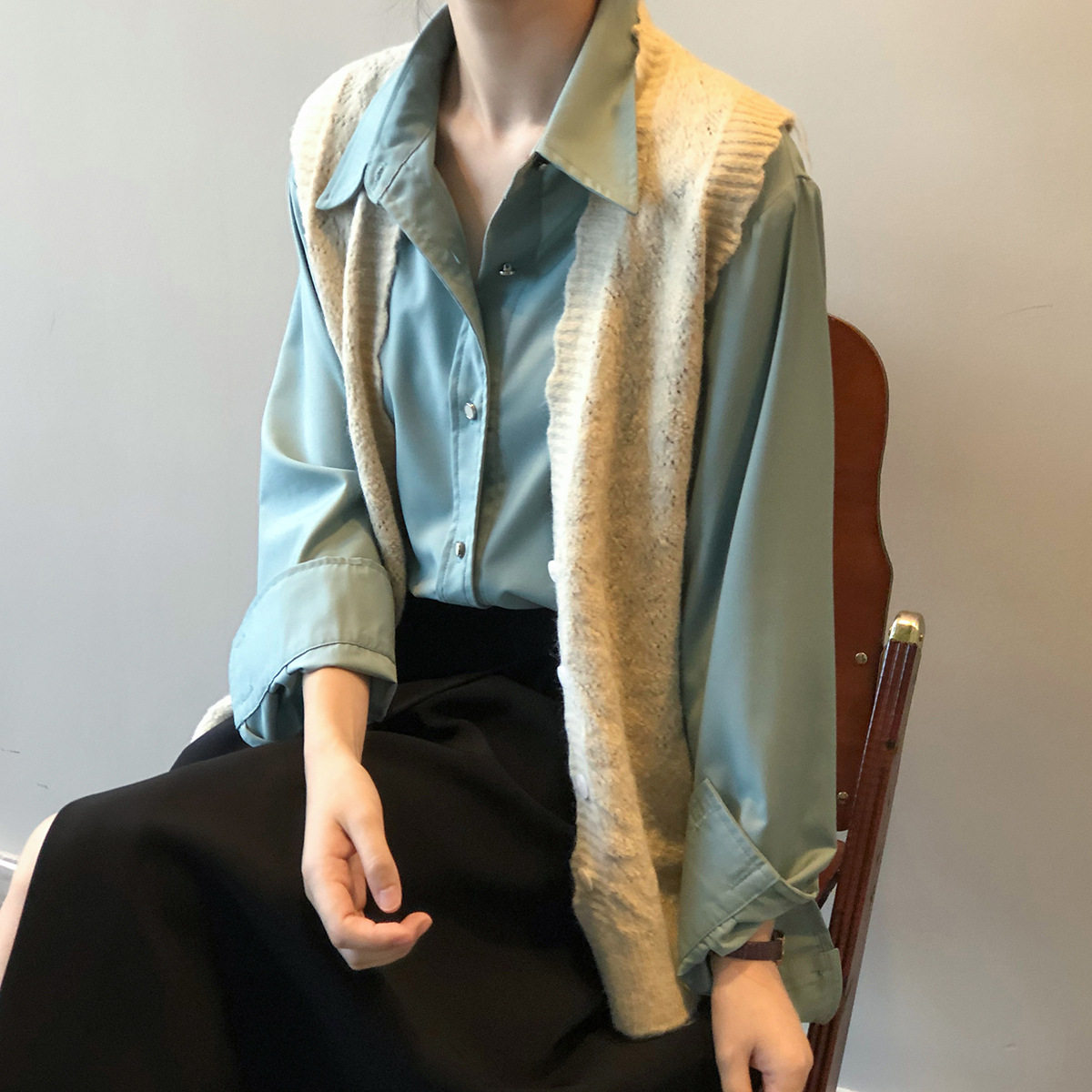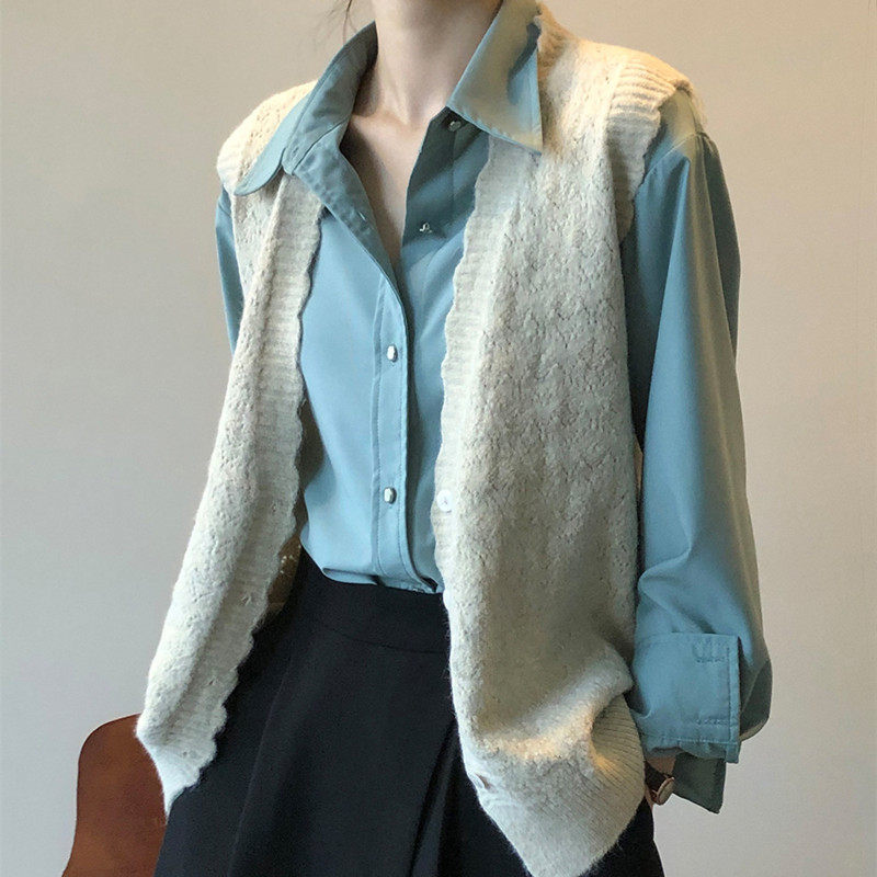 Трикотажный осенний демисезонный жилет, кардиган, свитер, майка топ, ретро футболка без рукавов, V-образный вырез
