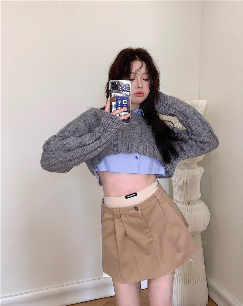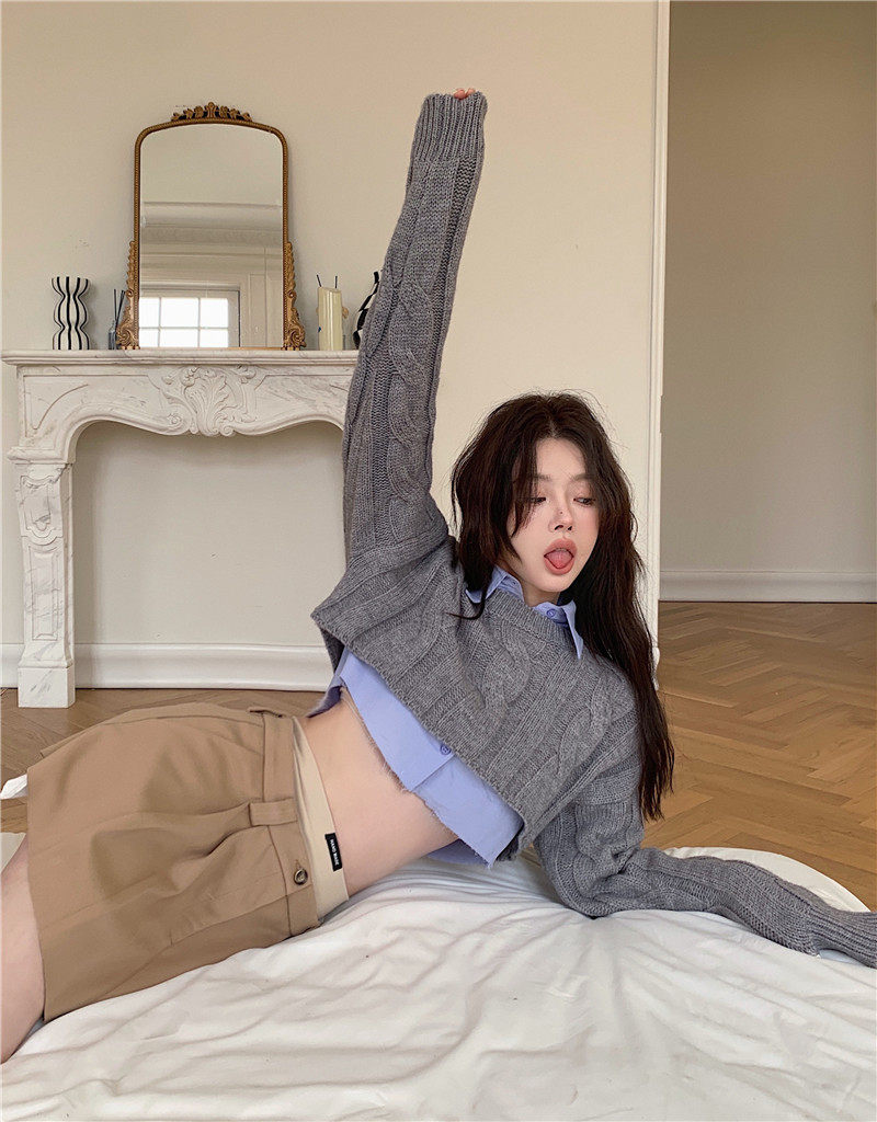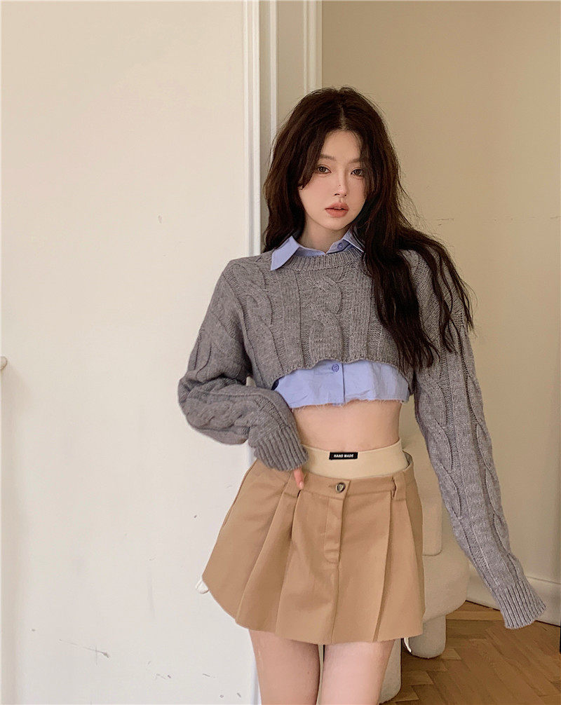 Трикотажный лонгслив, осенняя короткая накидка, свитер, в американском стиле
