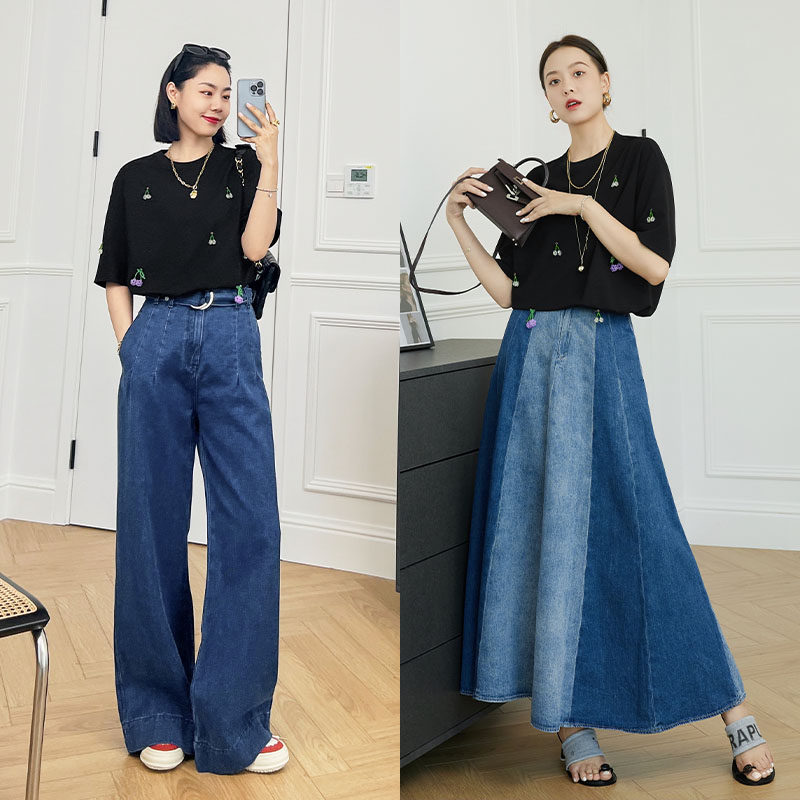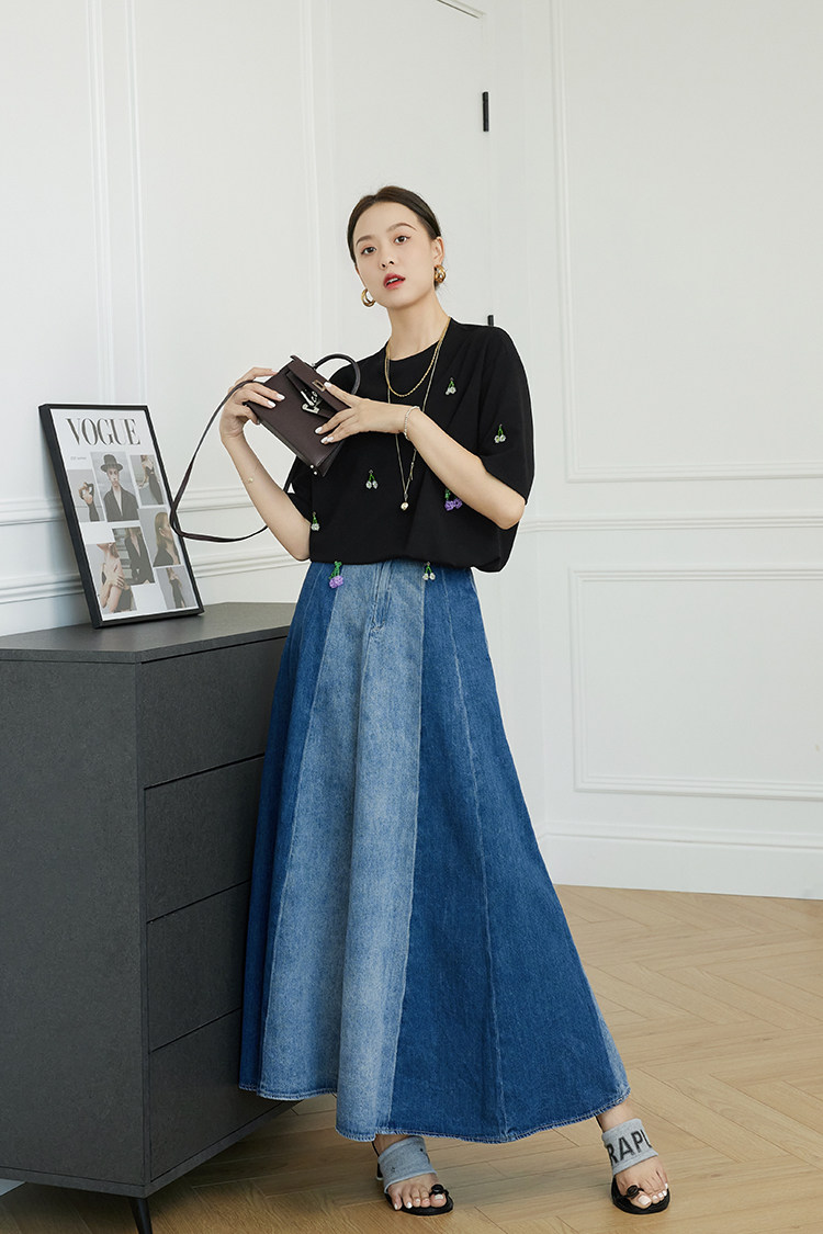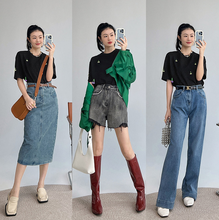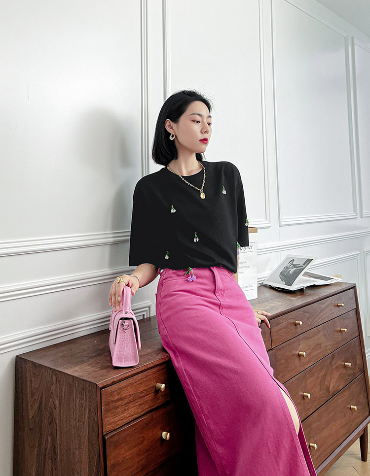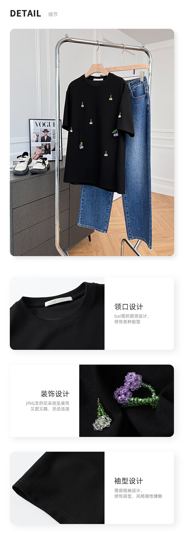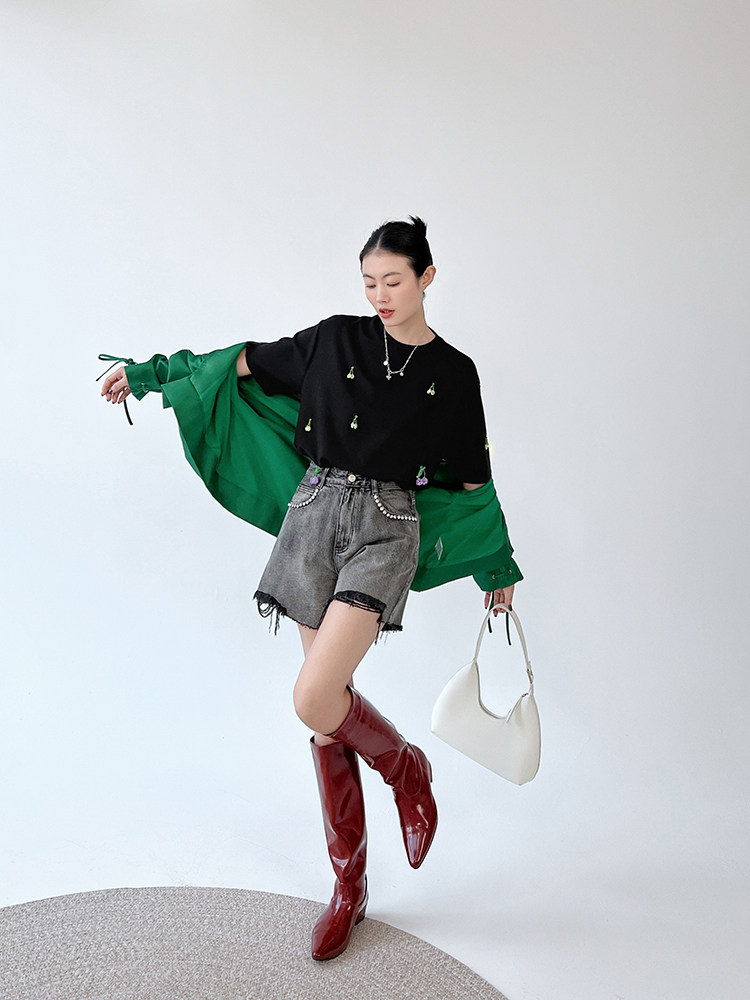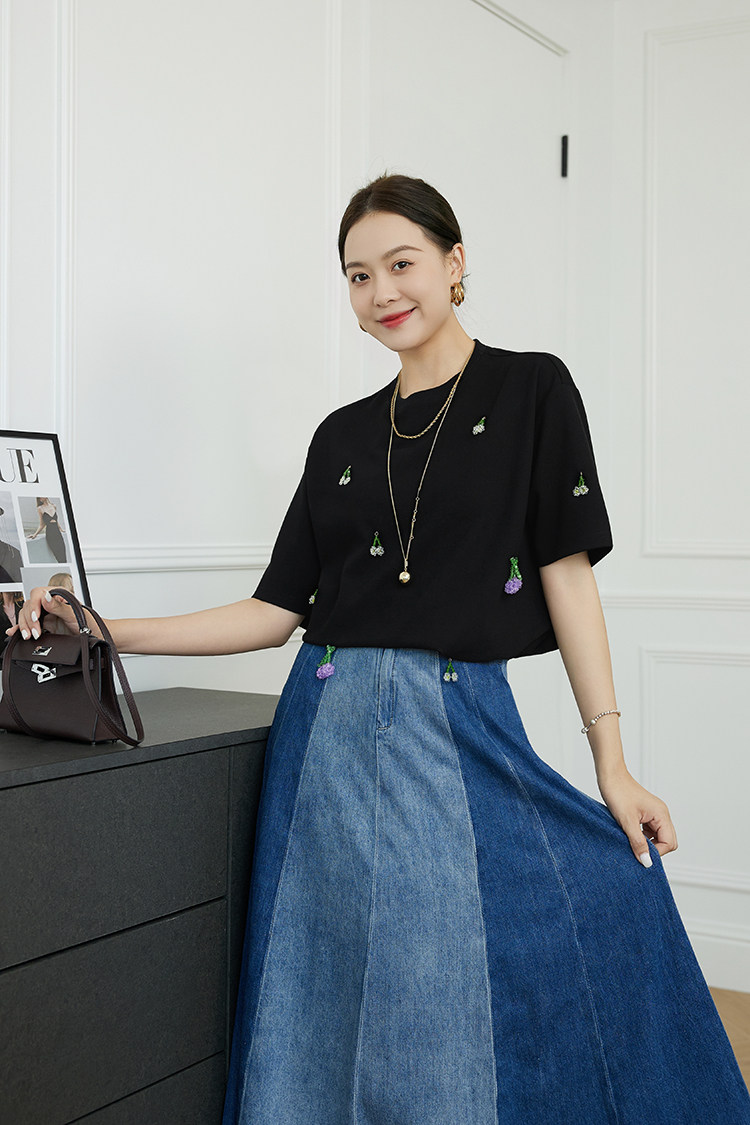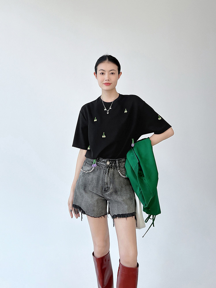 Футболка, трехмерные трикотажные нарукавники, свитер, в цветочек, короткий рукав