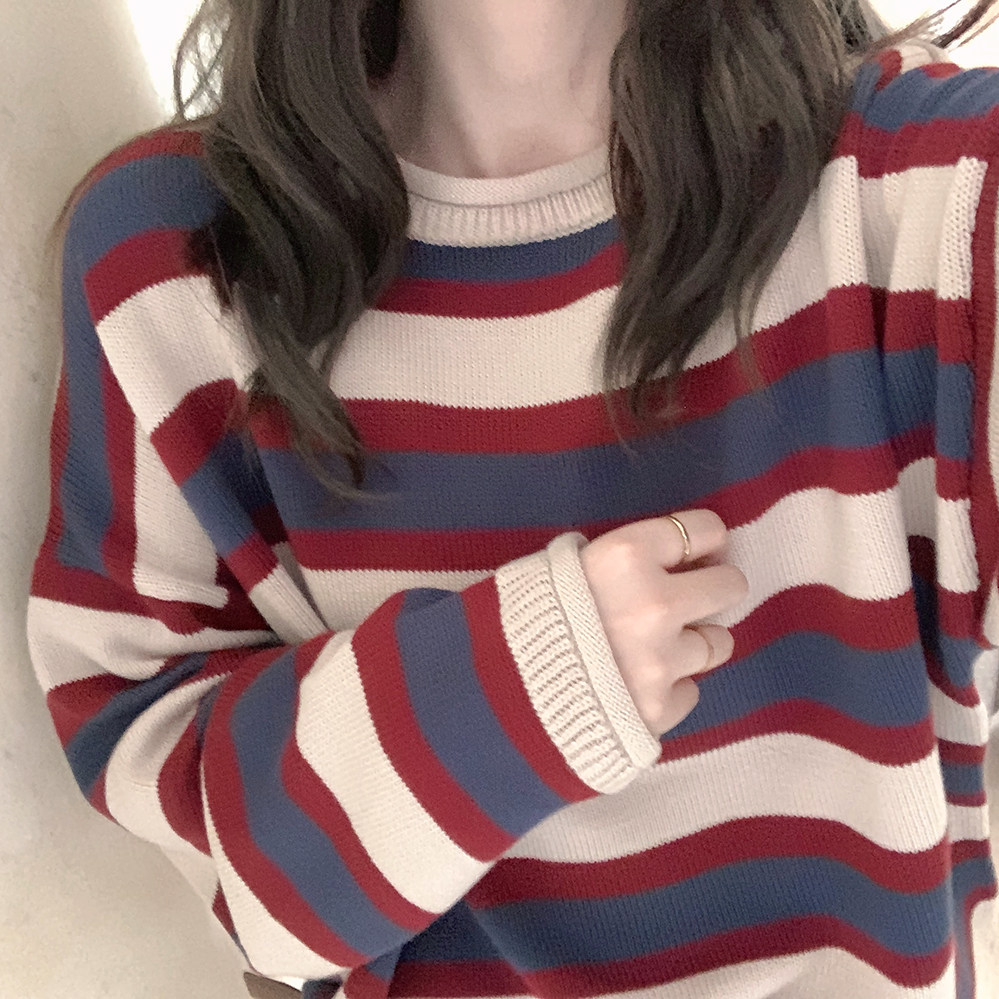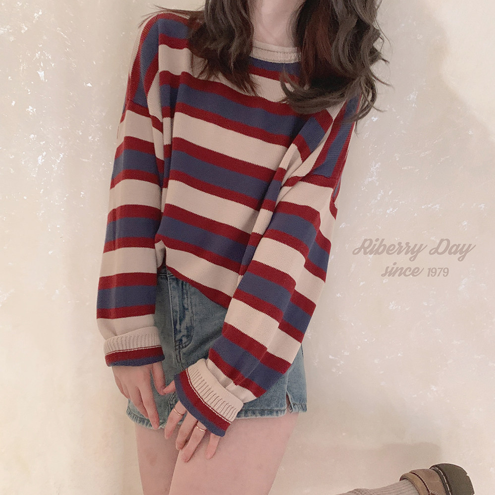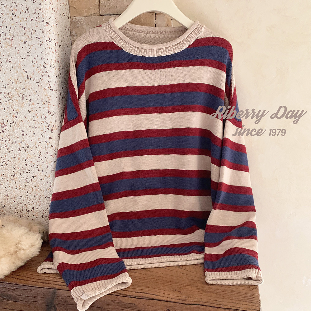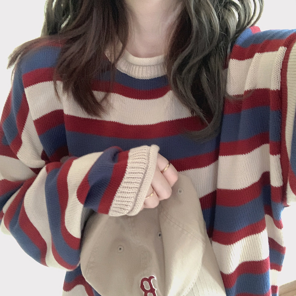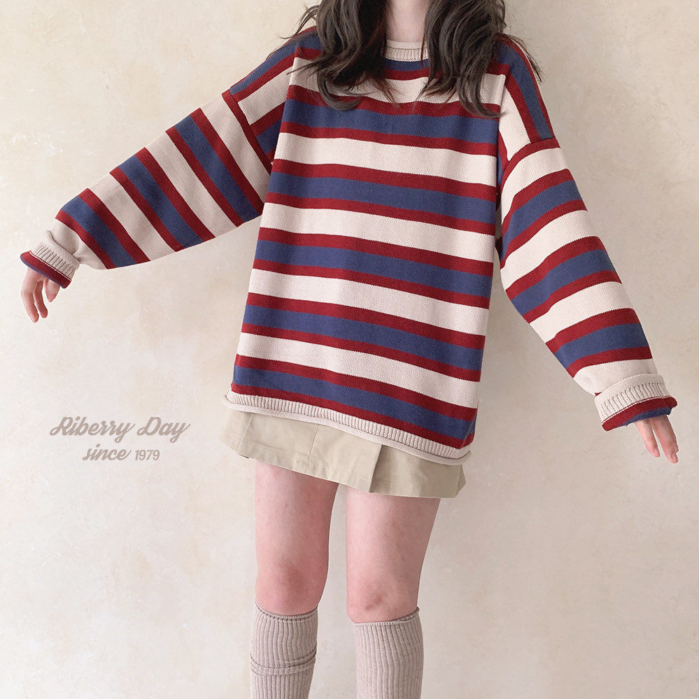*Ретро красочный рис красный и синий шириной полосы свернутые свернутые свернутые свитер K
