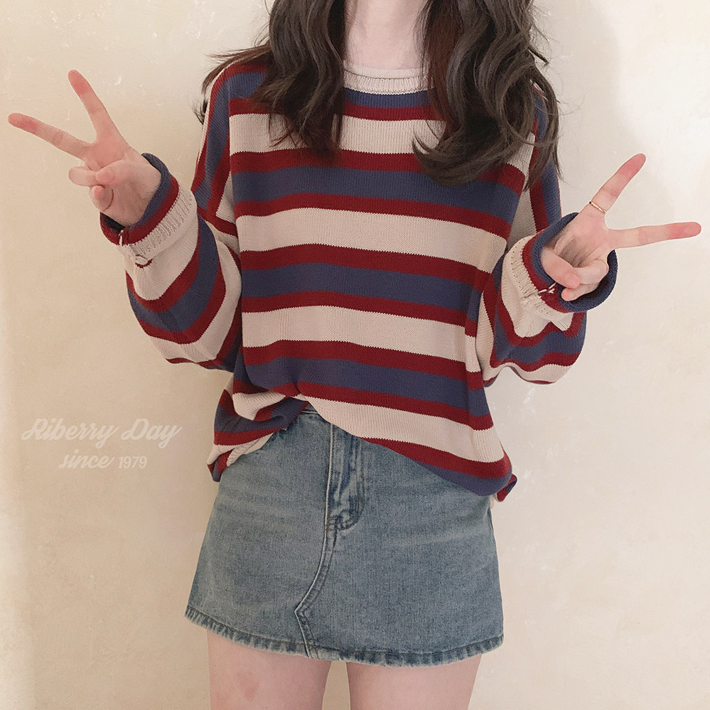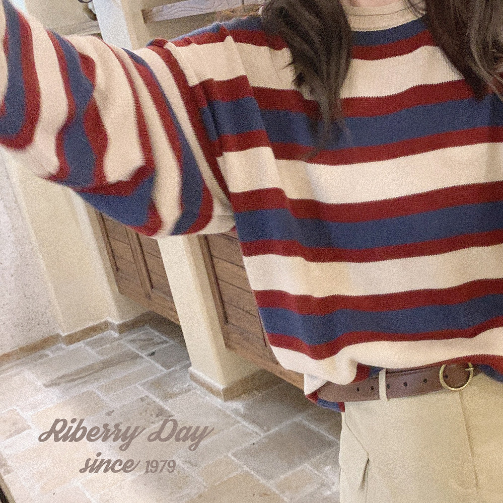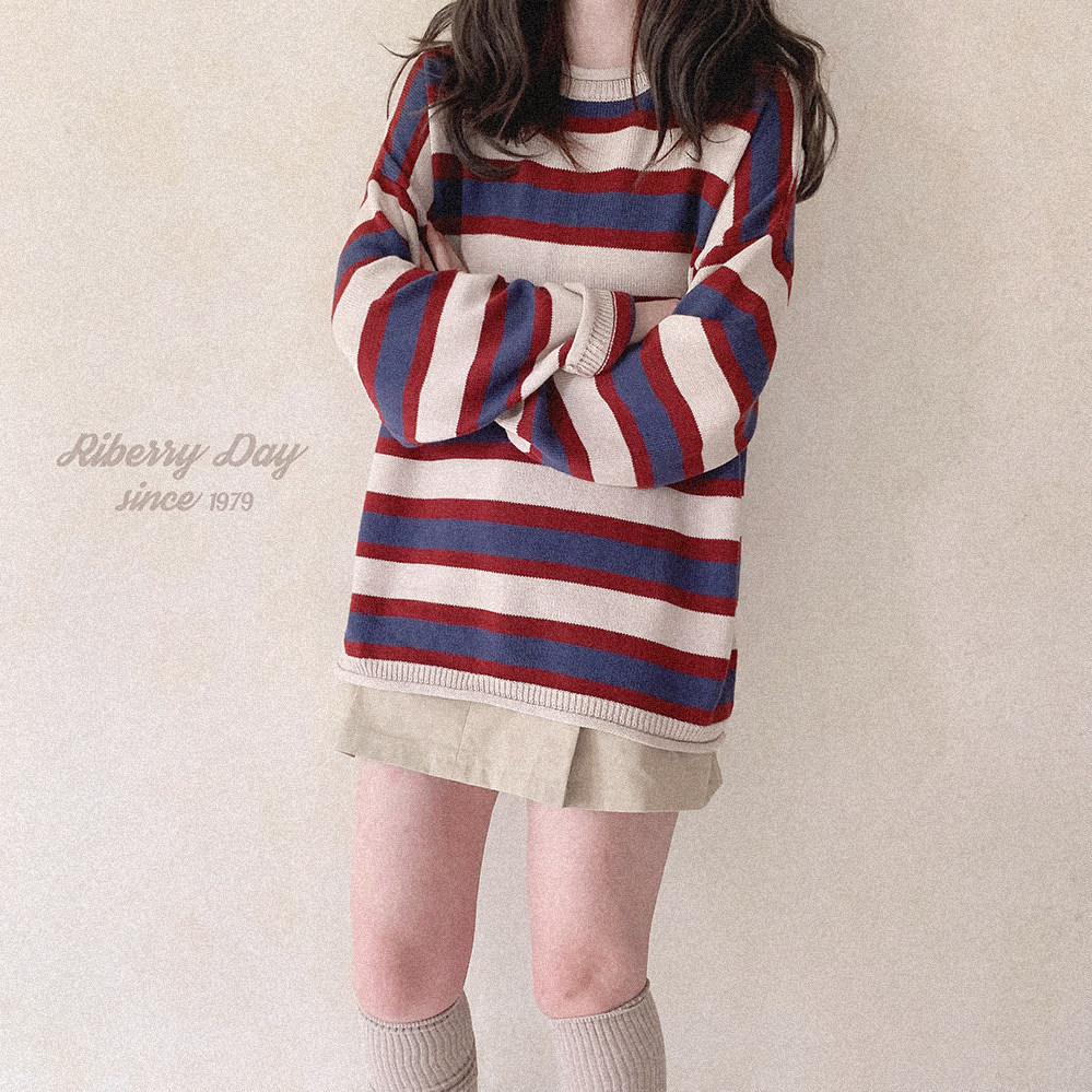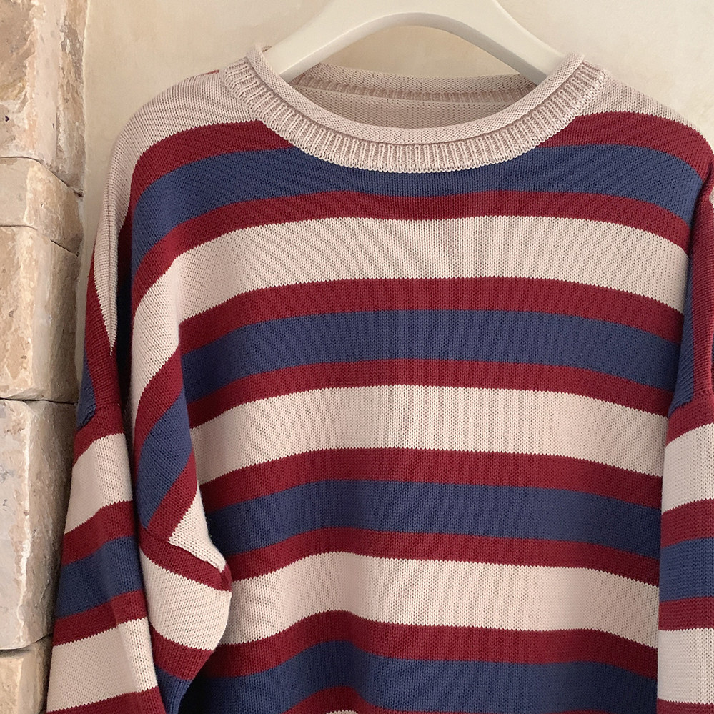 *Ретро красочный рис красный и синий шириной полосы свернутые свернутые свернутые свитер K