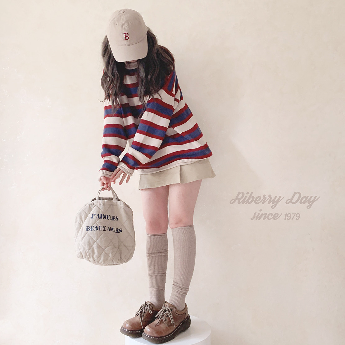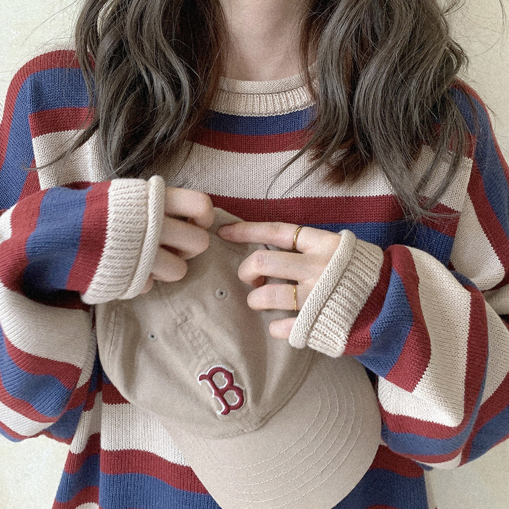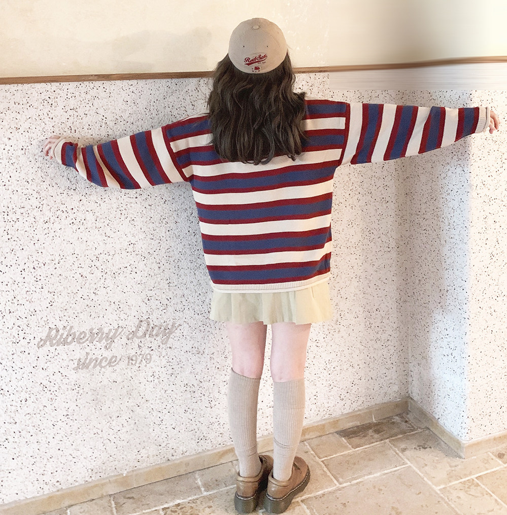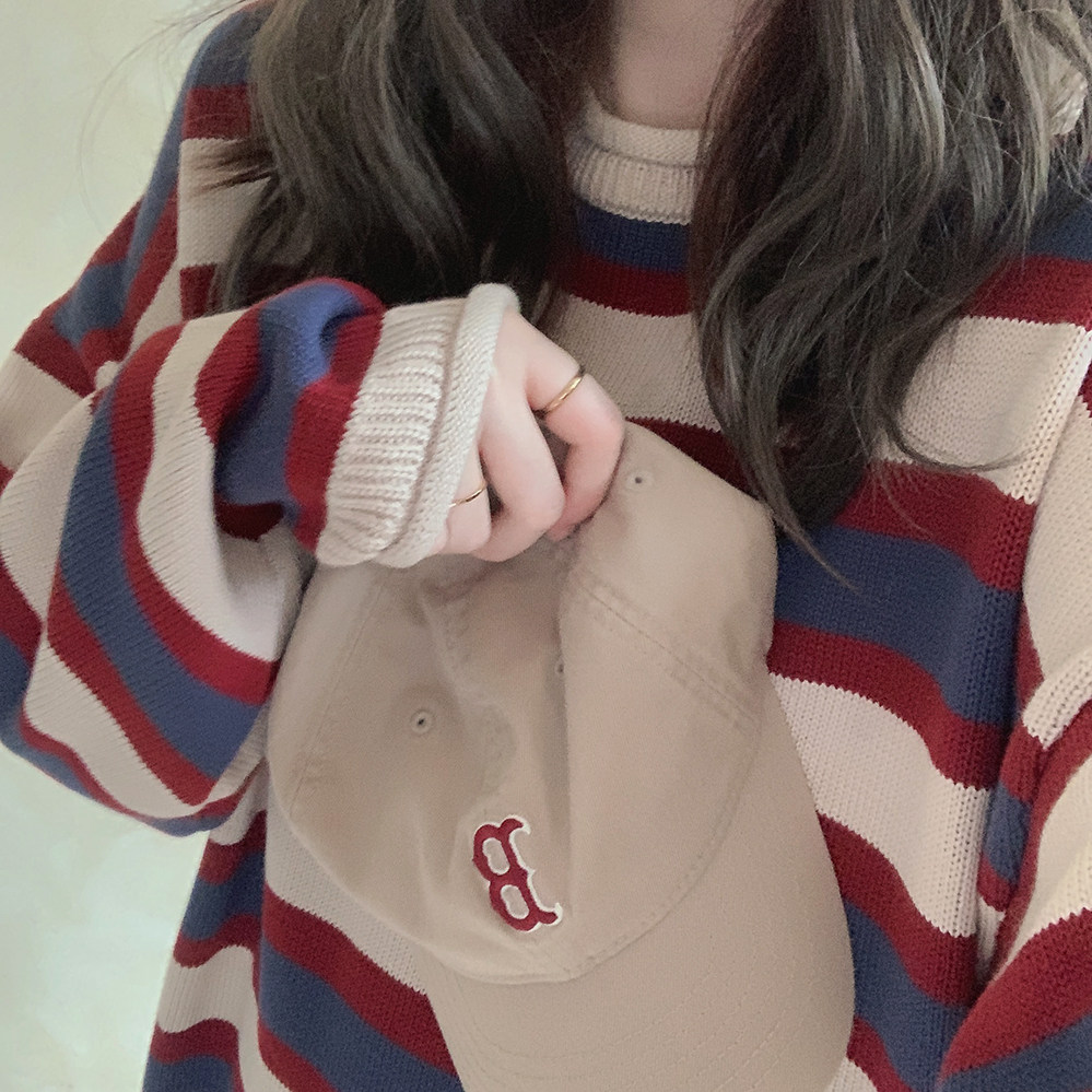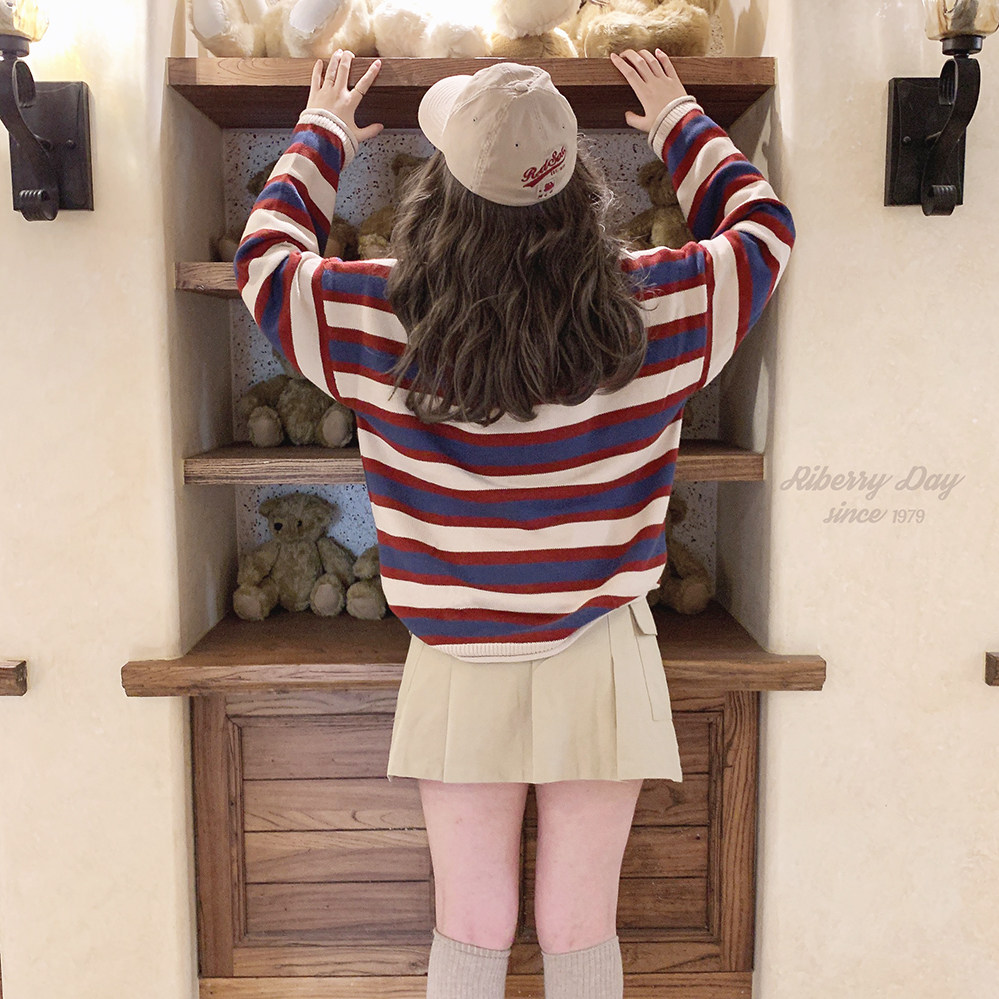 *Ретро красочный рис красный и синий шириной полосы свернутые свернутые свернутые свитер K