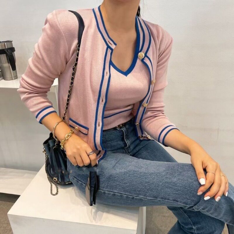 Трикотажный комплект, осенний свитер, жилет, кардиган, в стиле Шанель