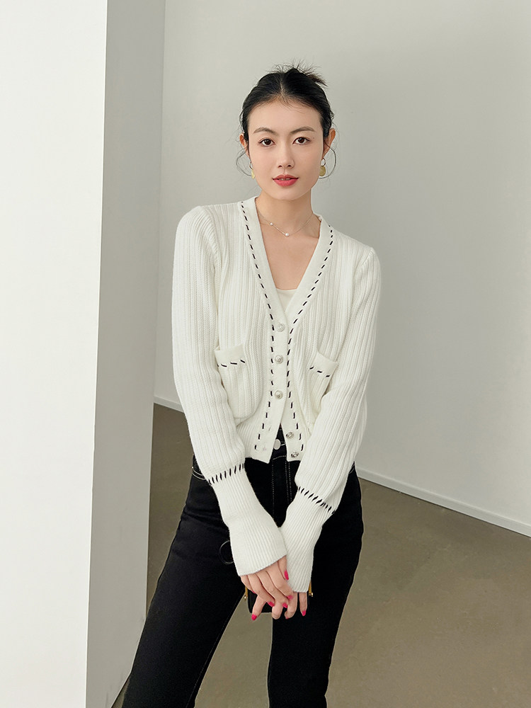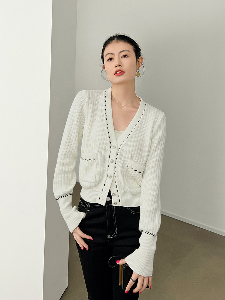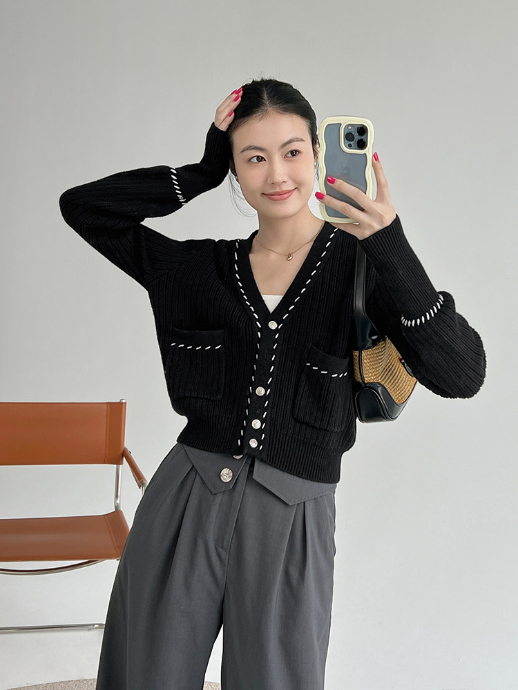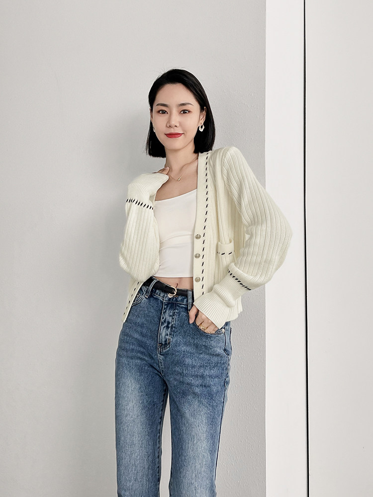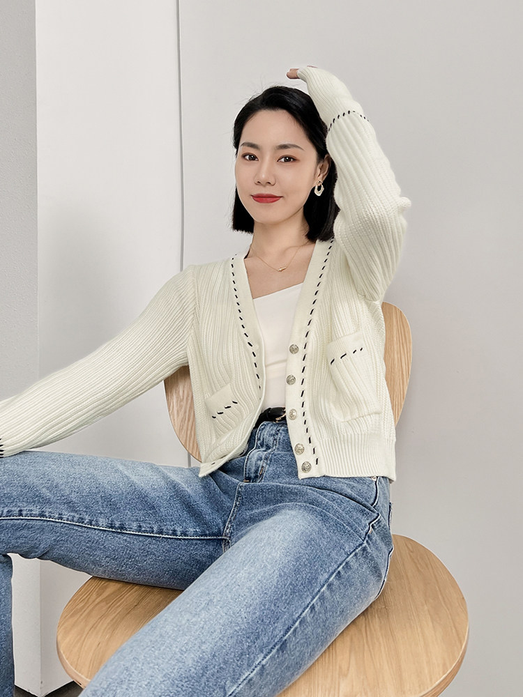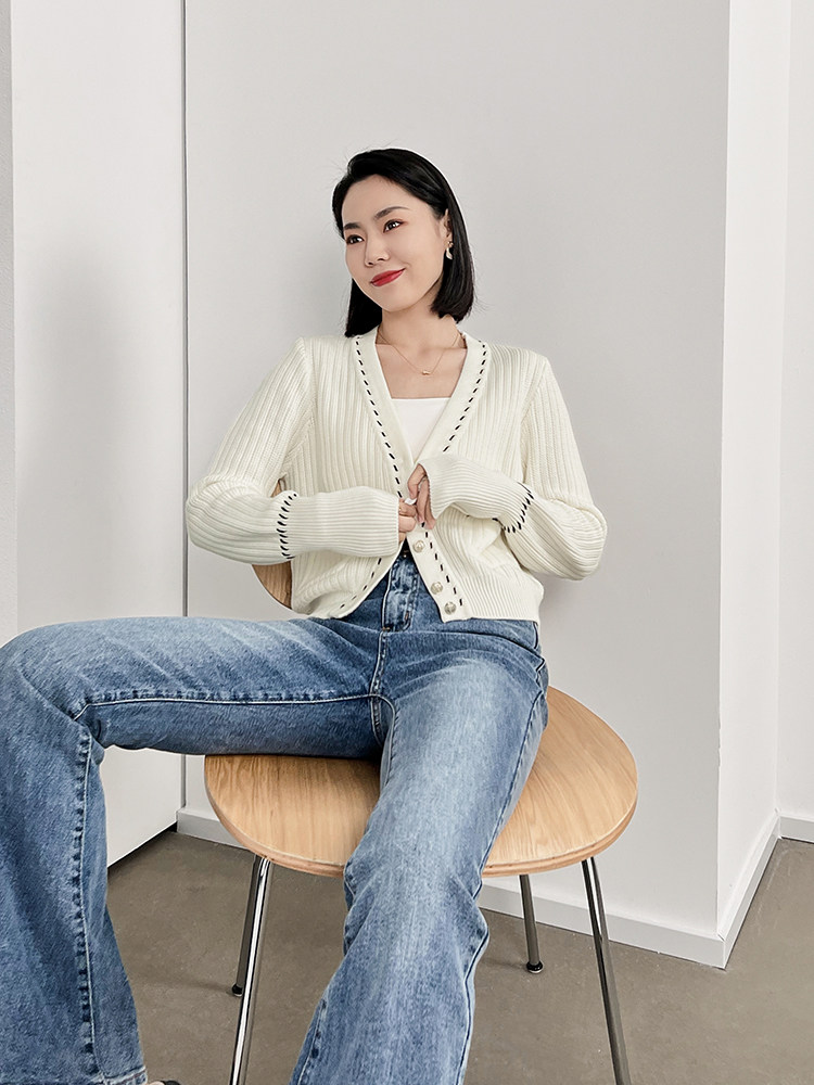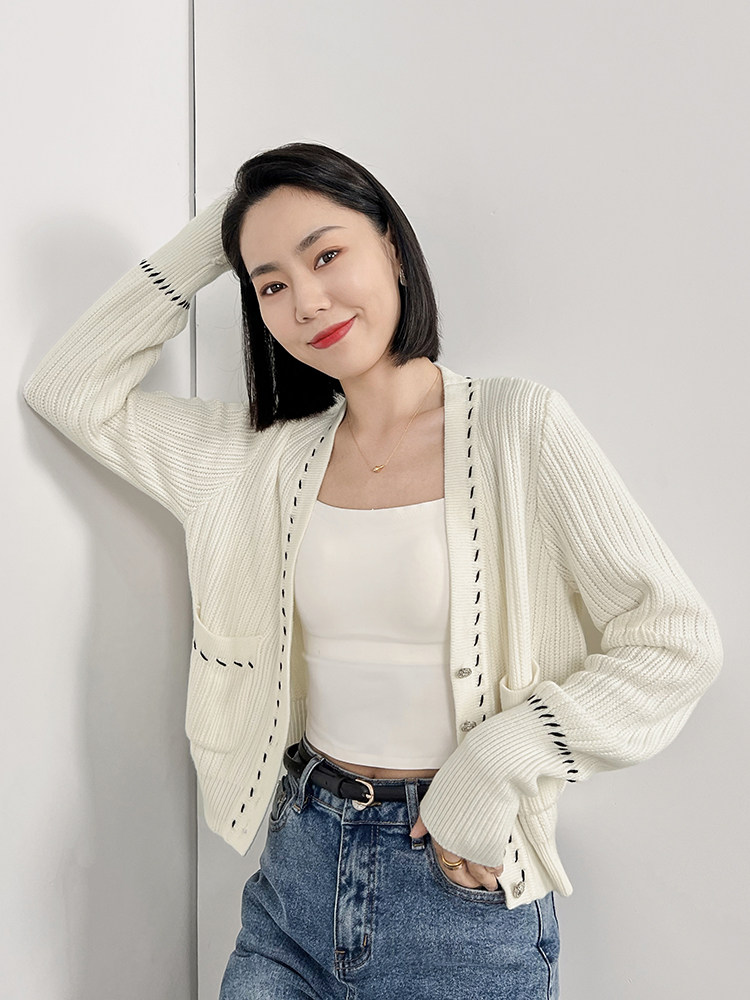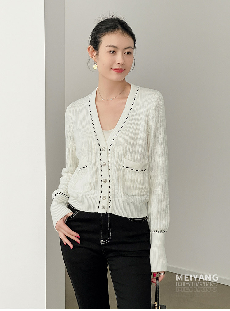 Meiyang Meiyang [Spot] Torter String String Cardigan Шерсть смешанный цвет арочный арочный игла