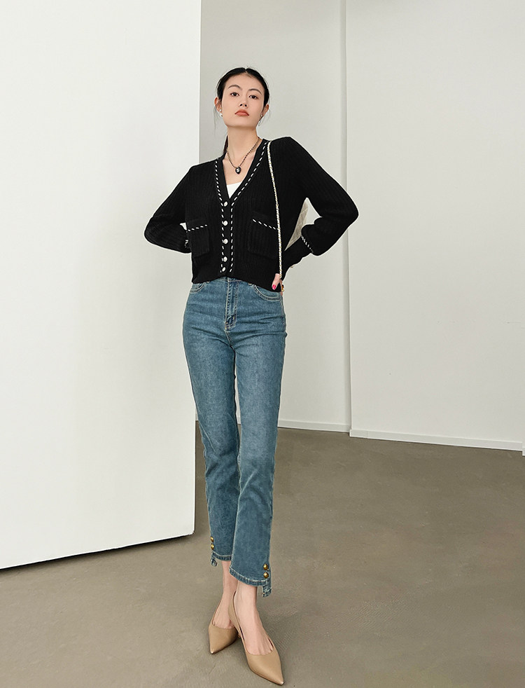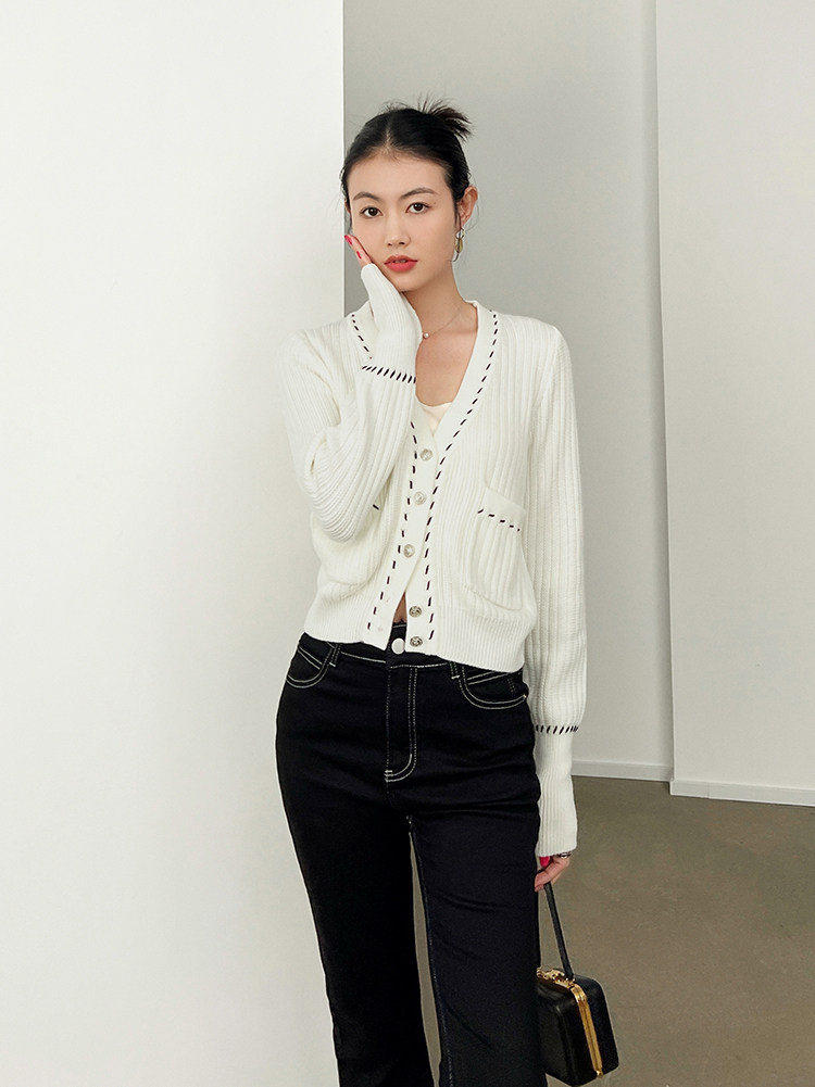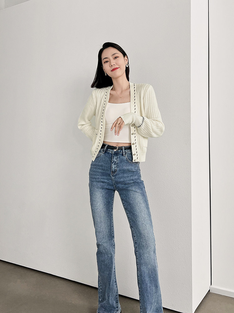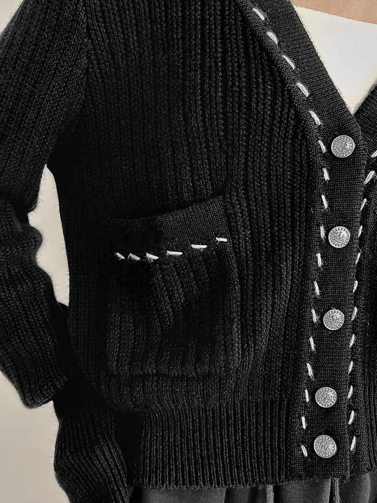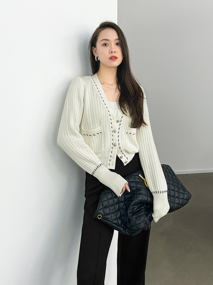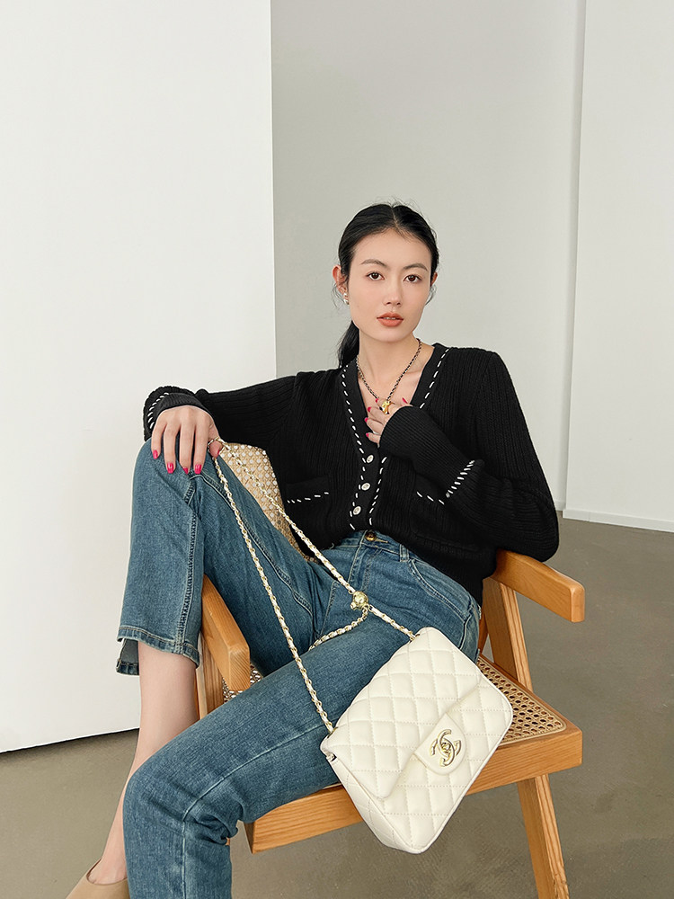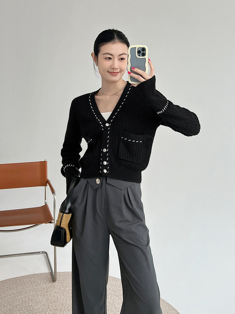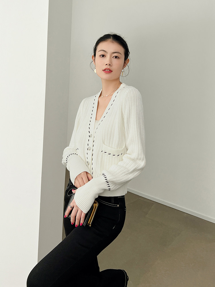 Meiyang Meiyang [Spot] Torter String String Cardigan Шерсть смешанный цвет арочный арочный игла