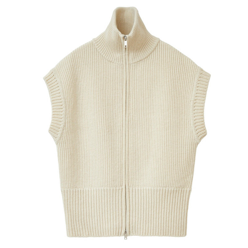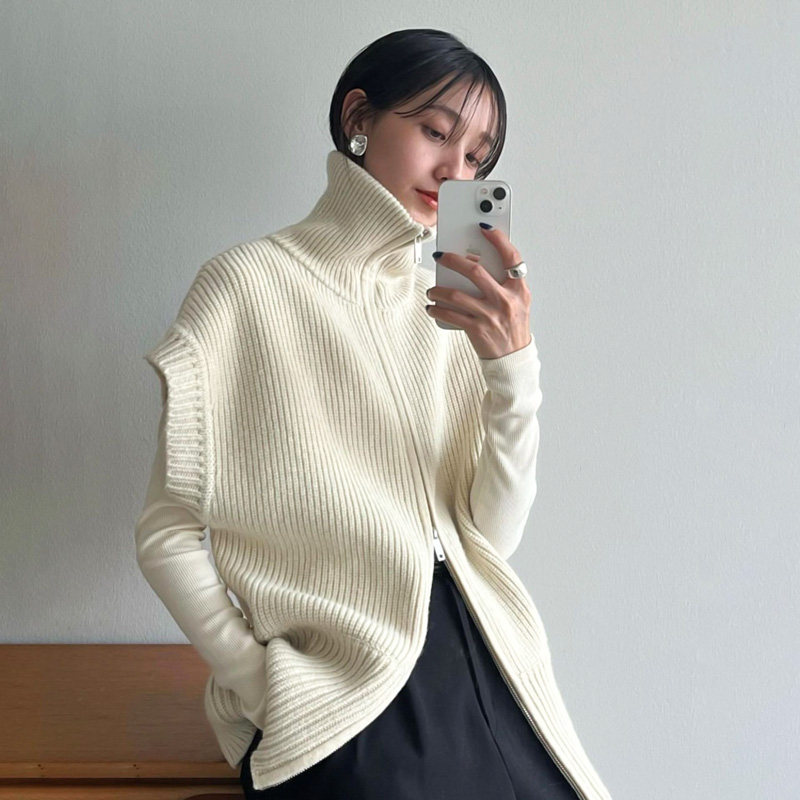 Шерстяной трикотажный свитер, базовый кардиган с молнией, куртка, высокий воротник