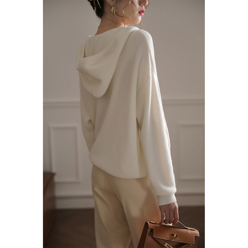 Трикотажный осенний свитер с капюшоном, трикотажная куртка, толстовка с капюшоном