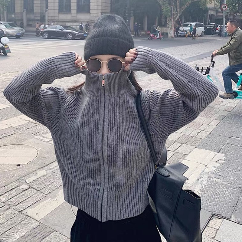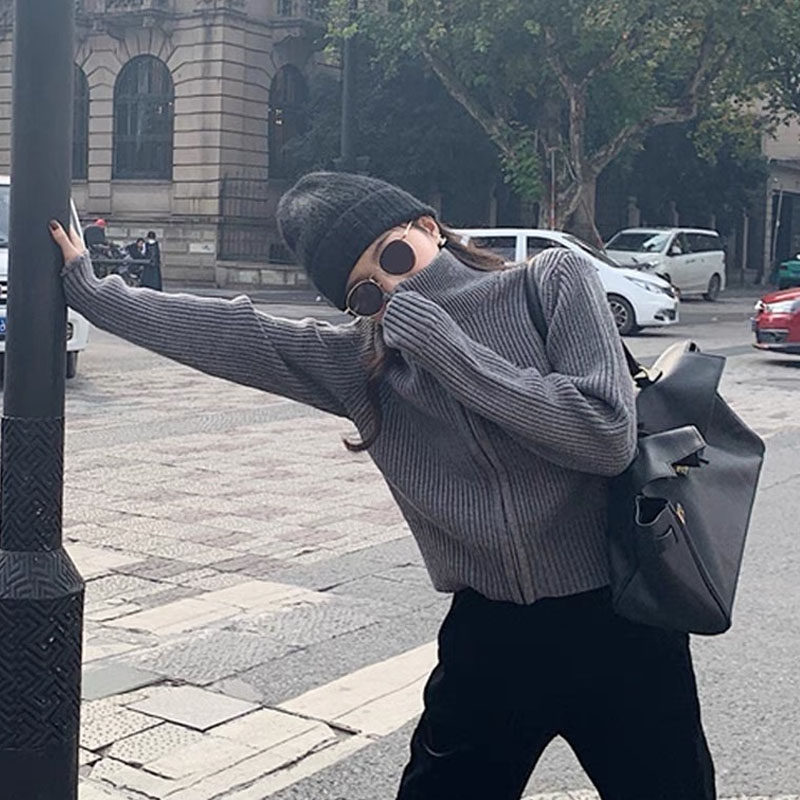 Черный осенний трикотажный свитер с молнией, весенний кардиган, короткая куртка, коллекция 2022, в корейском стиле