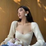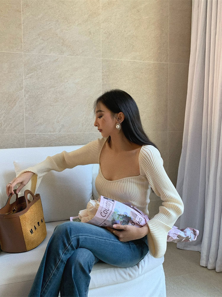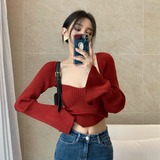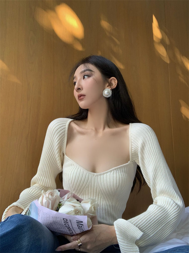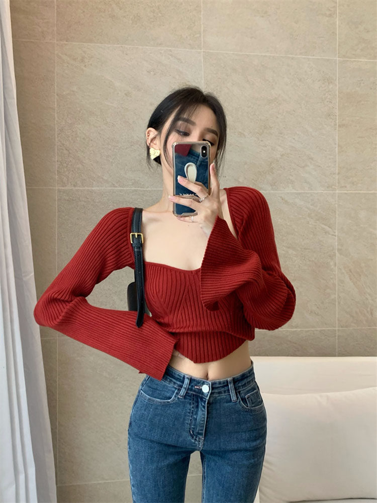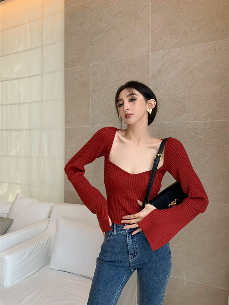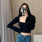Сексуальный трикотажный летний короткий лонгслив, квадратный вырез, 2024 года