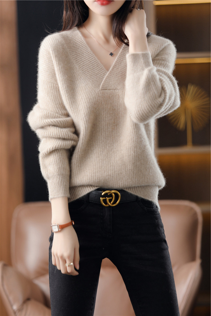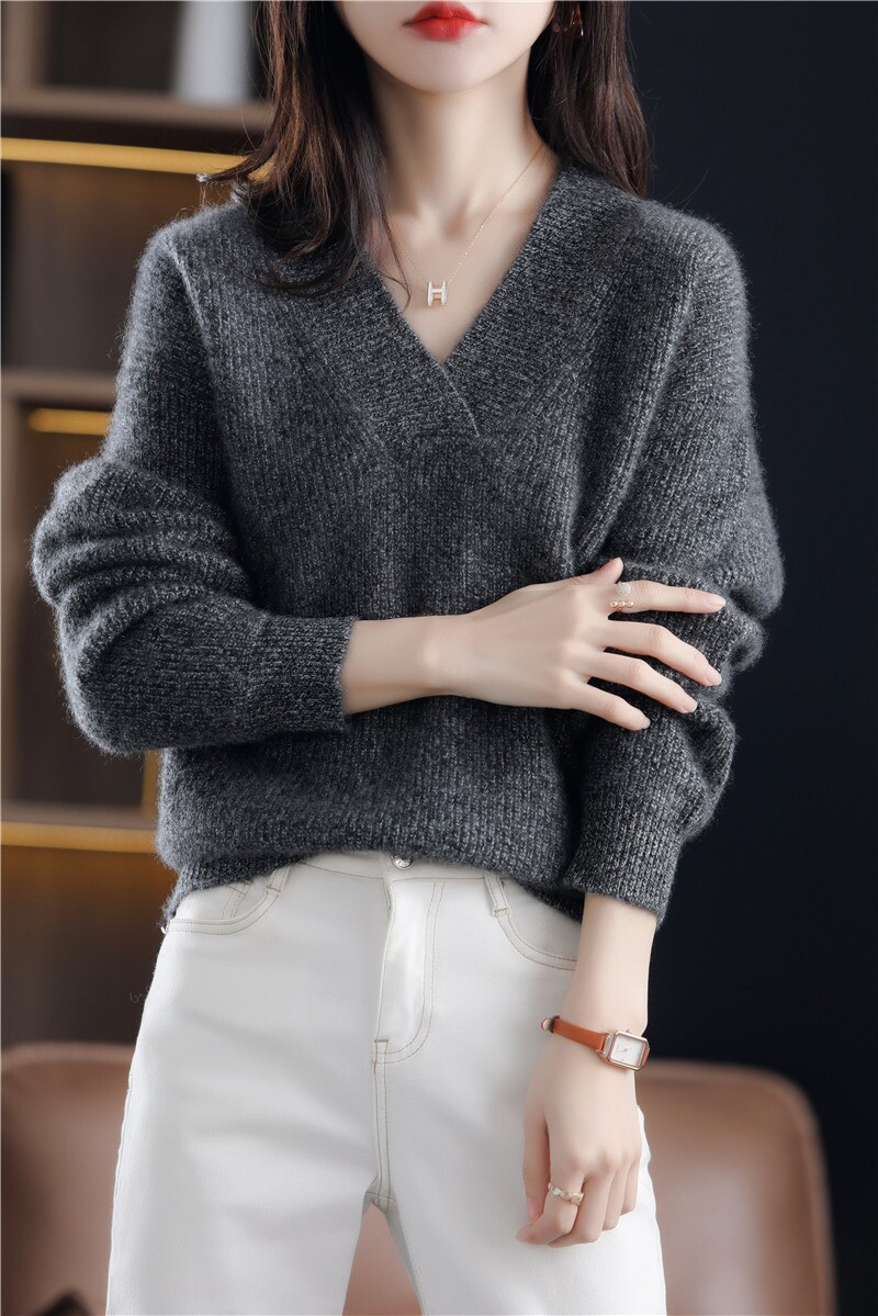 Цветной трикотажный демисезонный свитер, базовая приятная телу утепленный лонгслив для отдыха, V-образный вырез, свободный крой, городской стиль