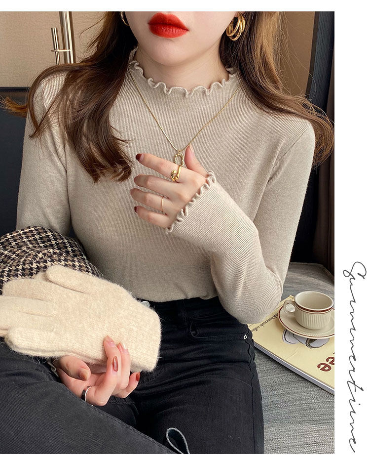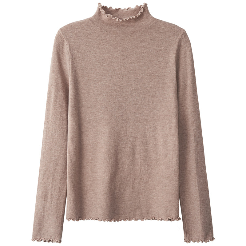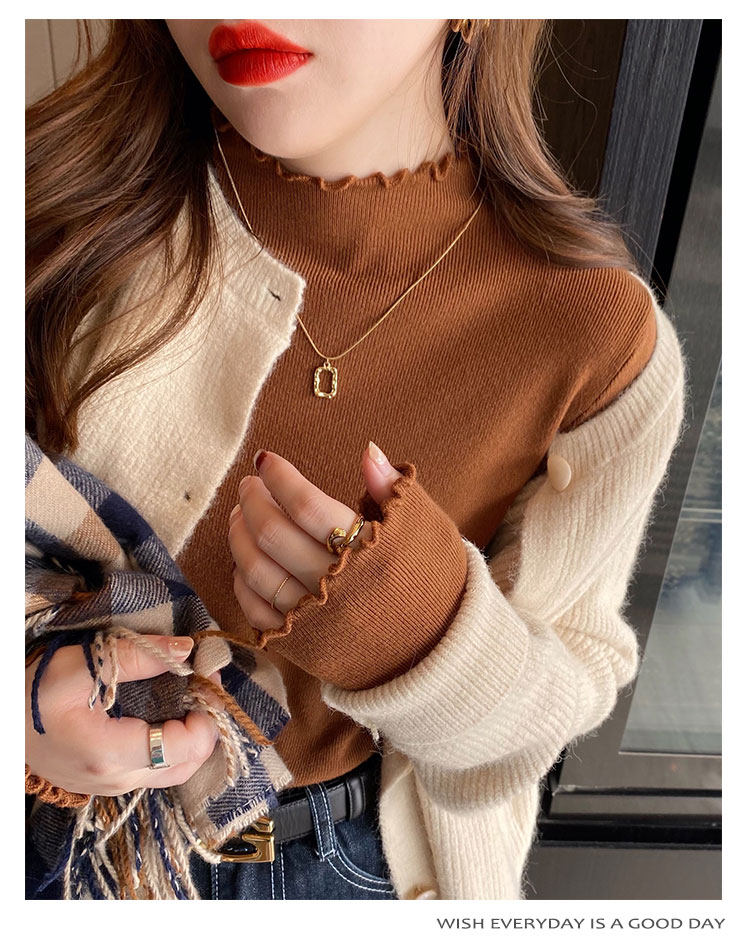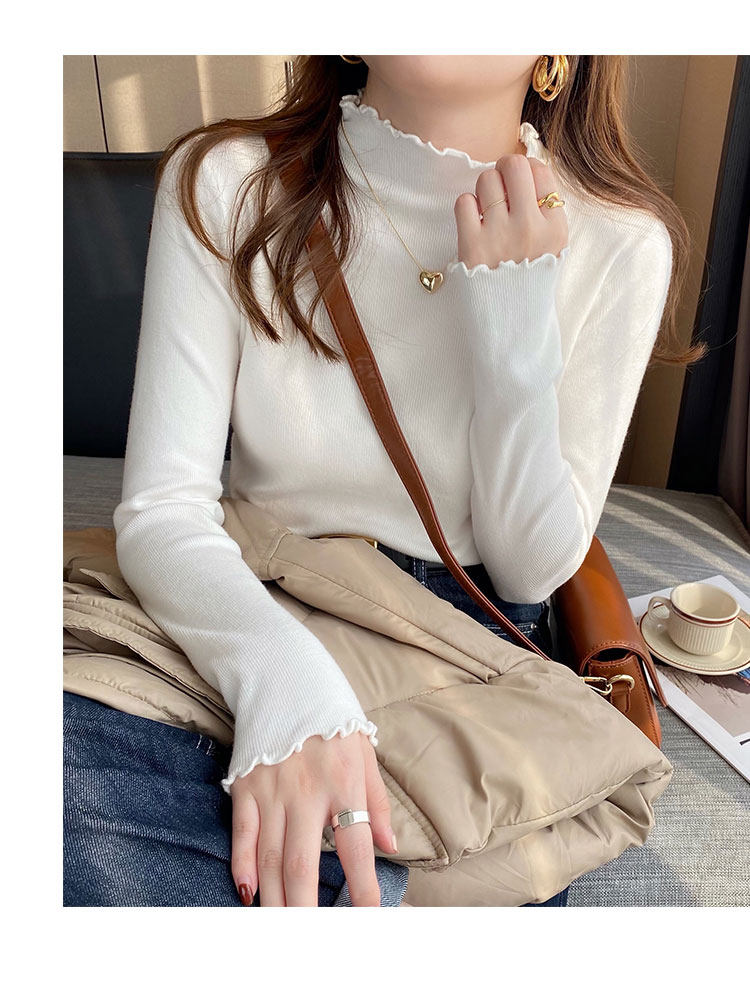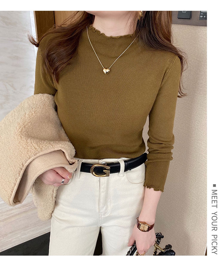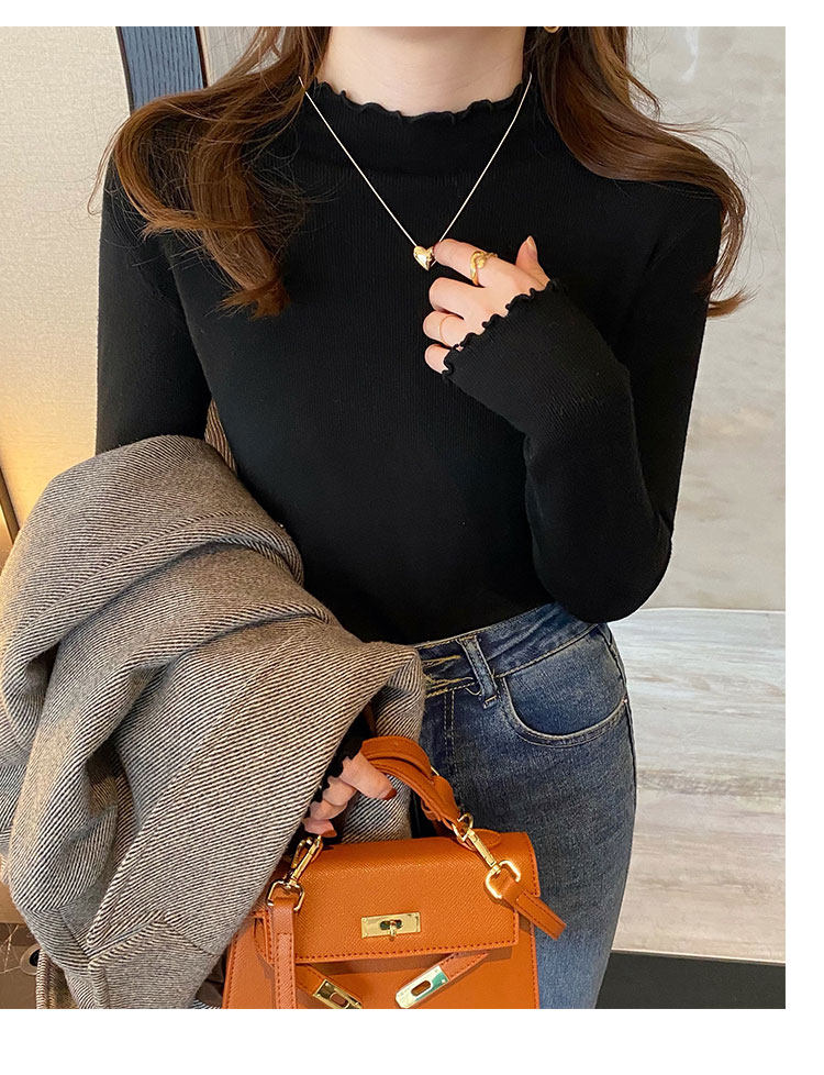 Демисезонная трикотажная модная рубашка, свитер, лонгслив, высокий воротник, облегающий крой