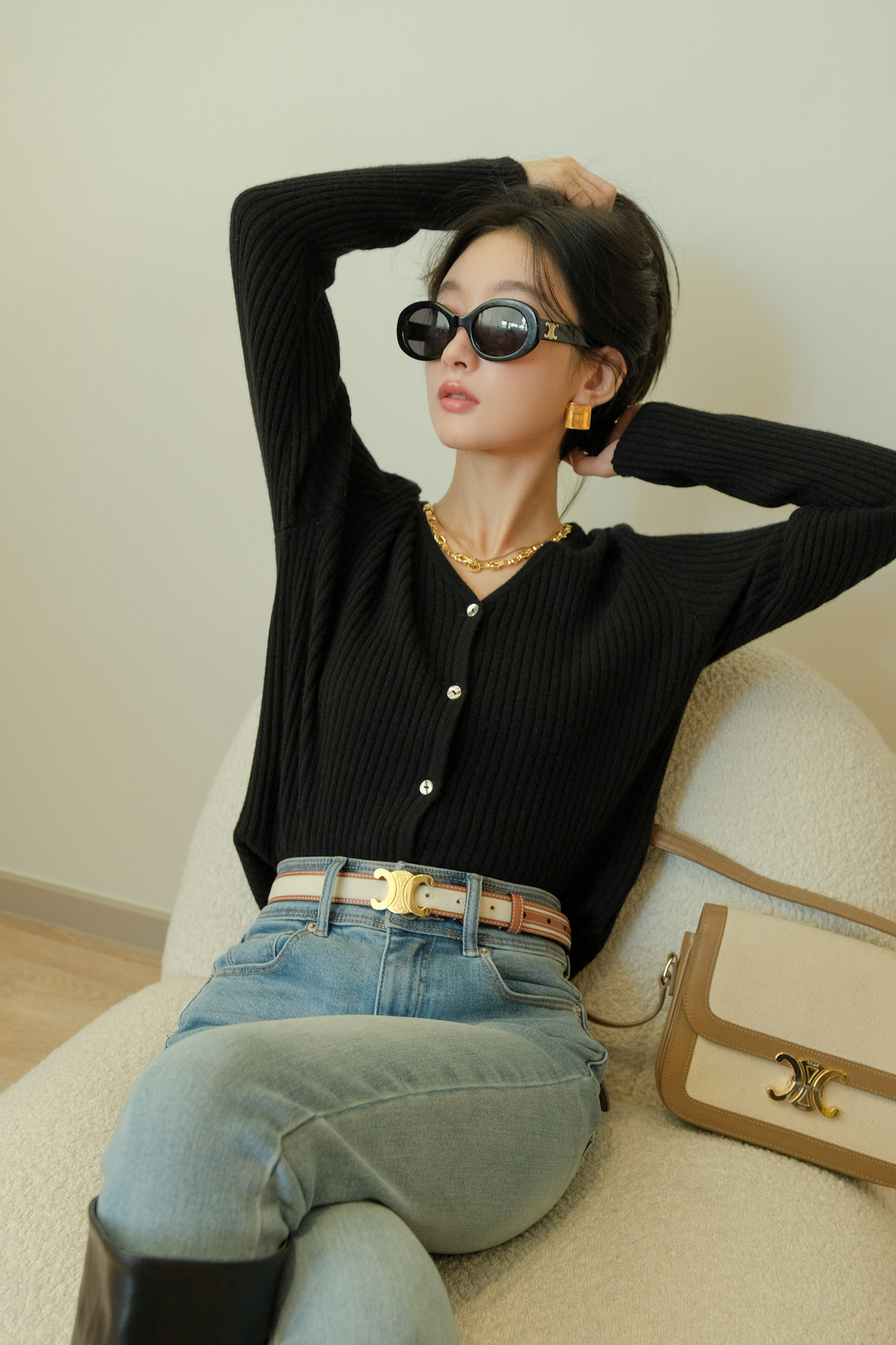 | V -neck открытие дизайна,Визуально измените линии шеи, лицо тонкое, а лицо маленькое Верхняя часть положительных рукавов на плече выглядит тонким и спиной, создавая чувство зрения бумажного человека Дизайн манжеты аккуратный и кости, но и без мягкости Уникальная текстура тела, Простой и модный | ||||