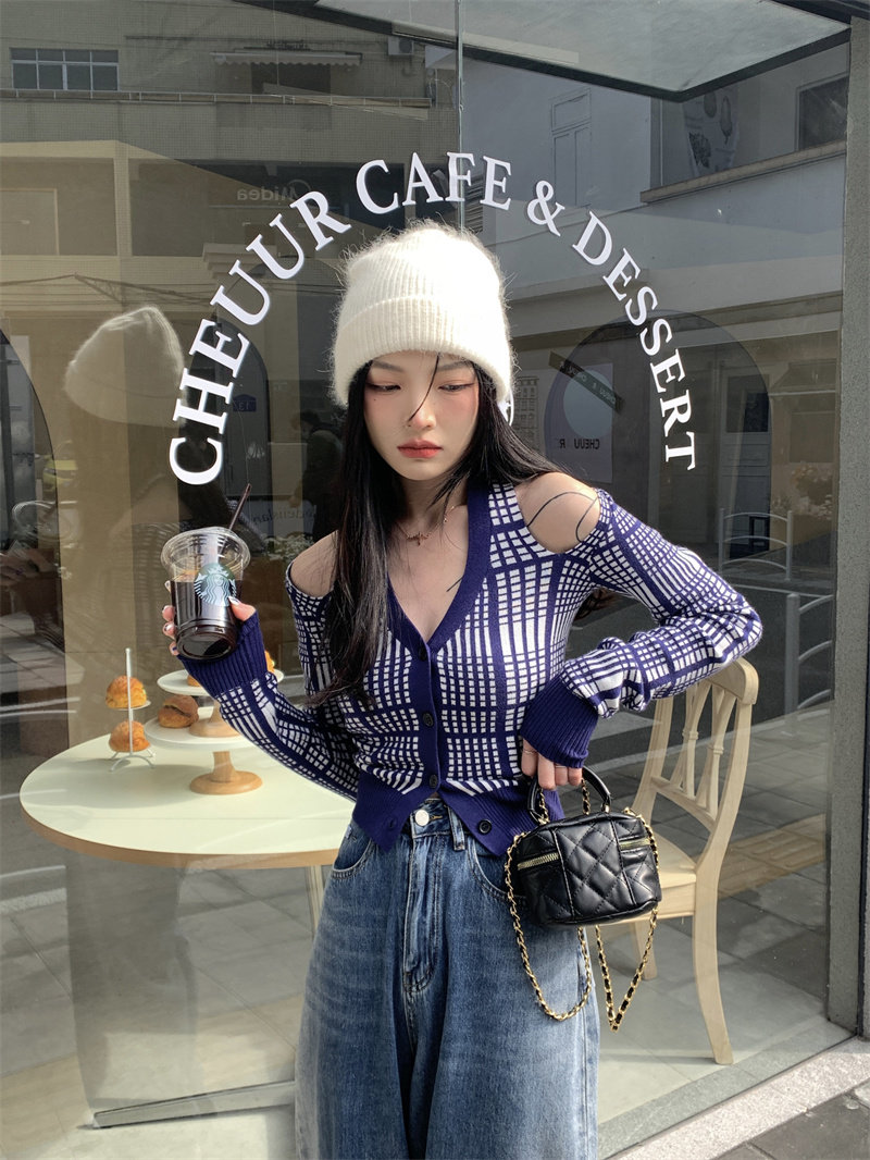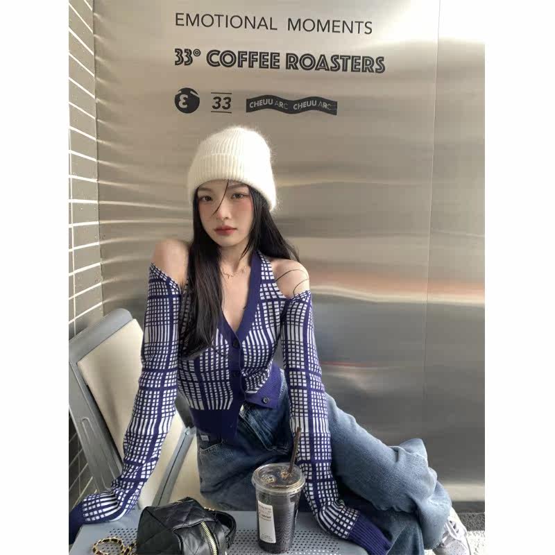 Pphome Left Bank Cocoa ~ Hot Girl Plaid Wleater Осень Осень ОСНОВНАЯ КОНЦИОННАЯ НАЛИЧА