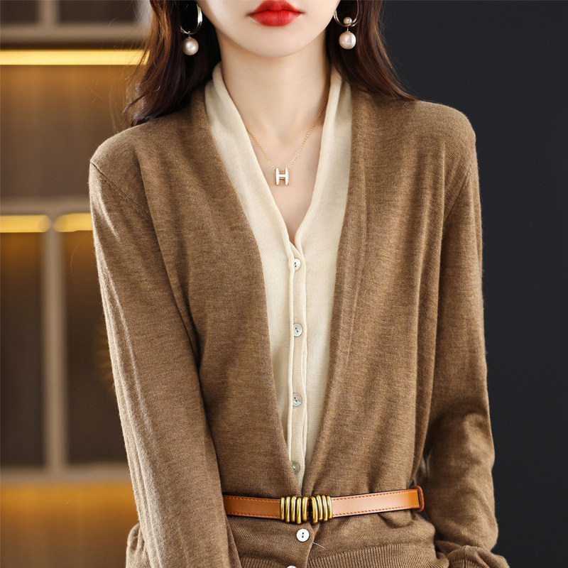 Осенний кашемировый кардиган, трикотажный комплект, шерстяной лонгслив, куртка, V-образный вырез, в корейском стиле