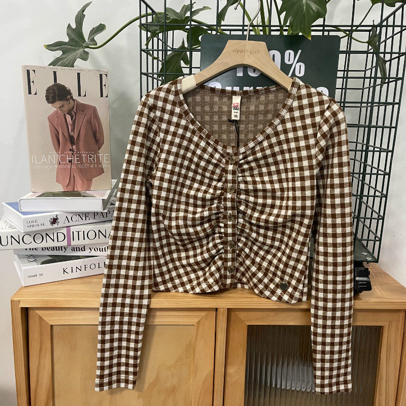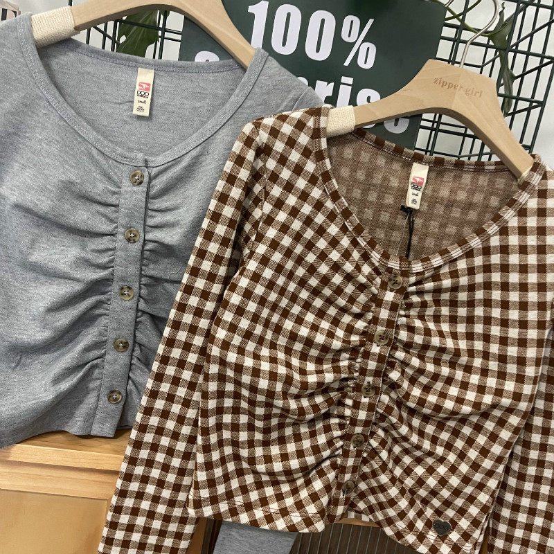 | Цвет: | Коричневые шахматы, лонгслив, Серая плиссированная футболка с длинными рукавами |