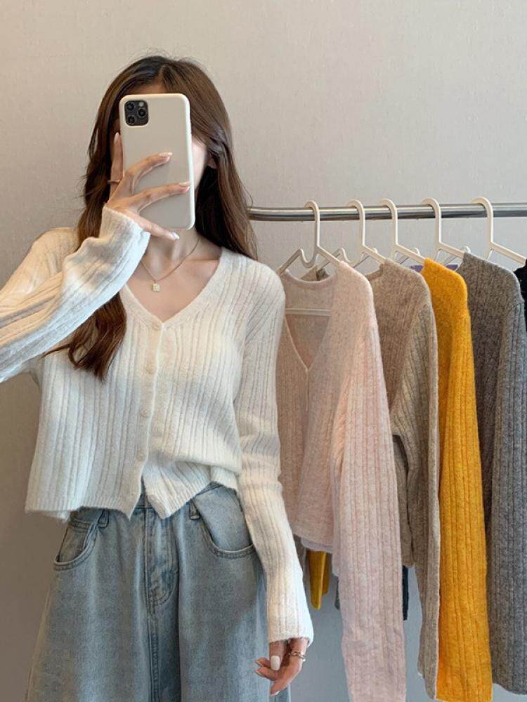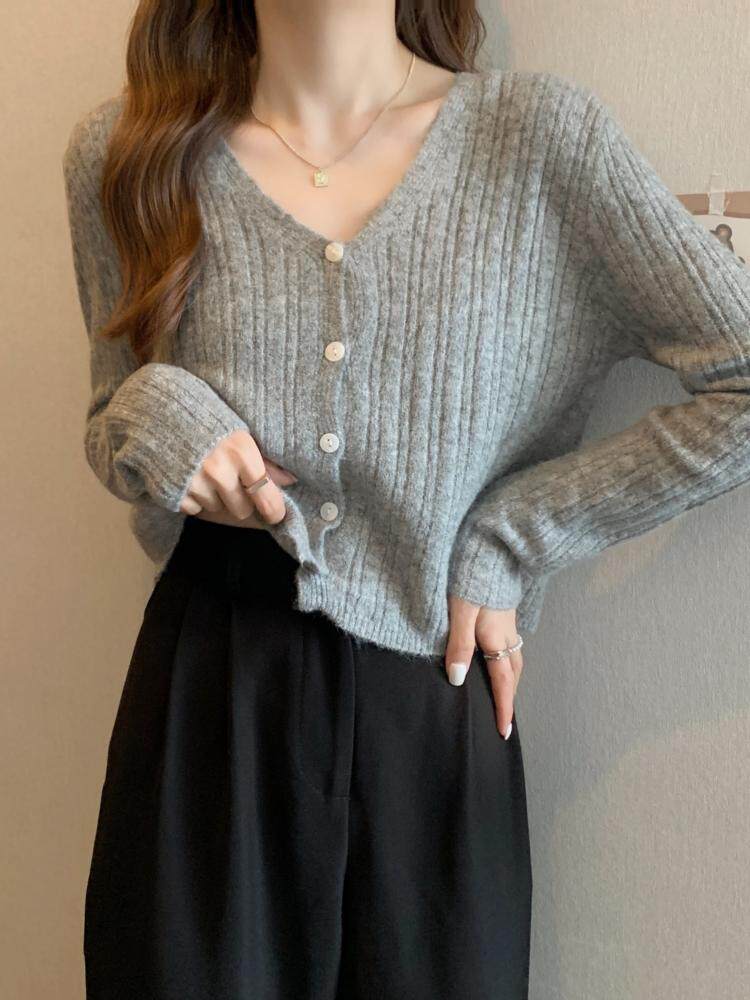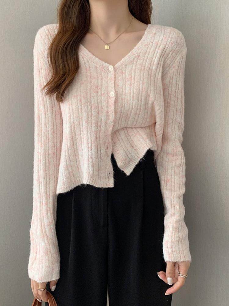 Приятный телу дизайнерский трикотажный кардиган, V-образный вырез, французский стиль