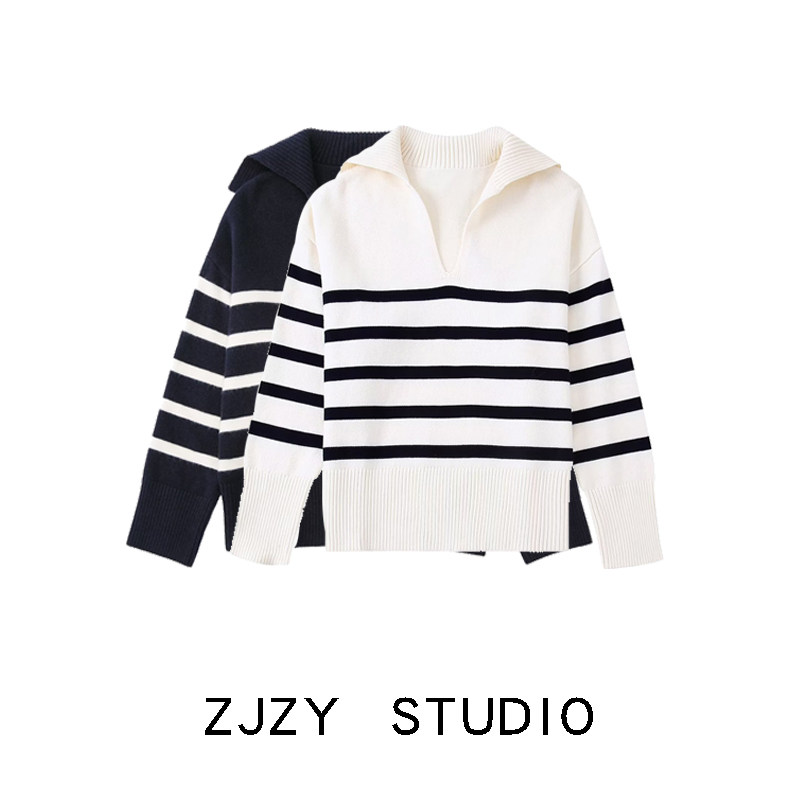 Модный лонгслив, трикотажный свитер, европейский стиль, французский стиль, воротник поло