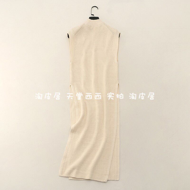 Длинный трикотажный жилет для отдыха без рукавов, свитер, средней длины, городской стиль, облегающий крой