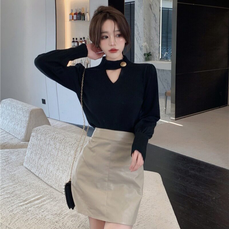 Трикотажный базовый приятный телу свитер, большой размер, V-образный вырез, осенний, рукава фонарики, по фигуре