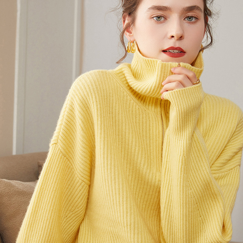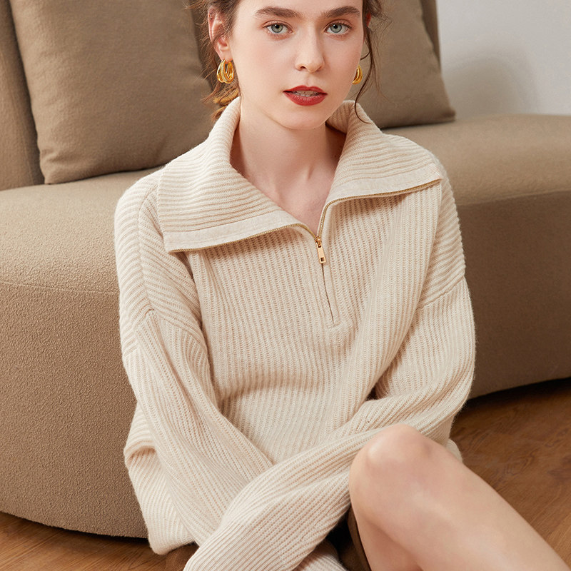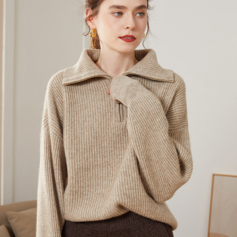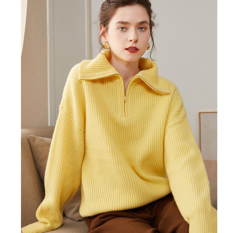 Кашемировая рубашка, демисезонный трикотажный шерстяной свитер с молнией, большой размер, оверсайз, увеличенная толщина, на молнии