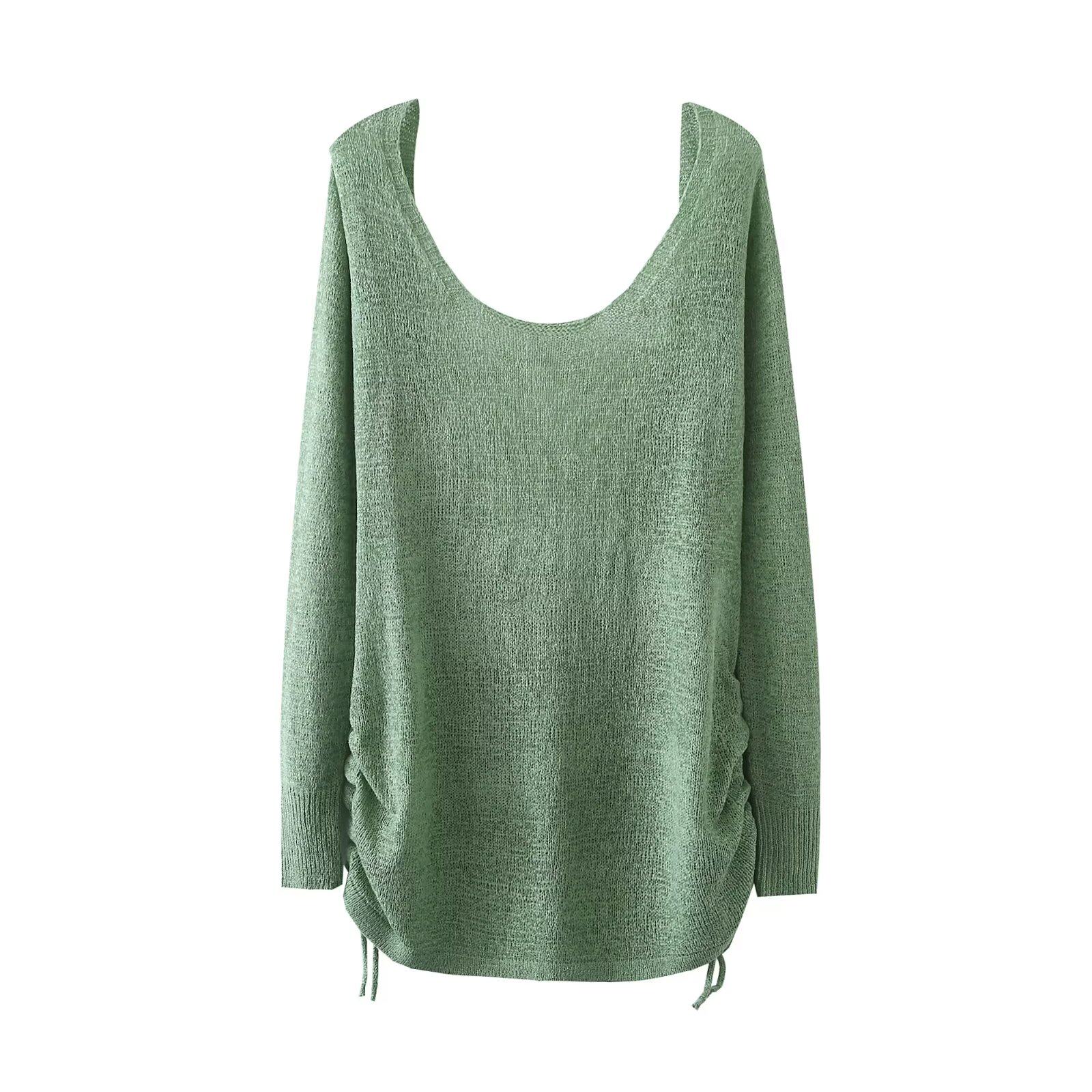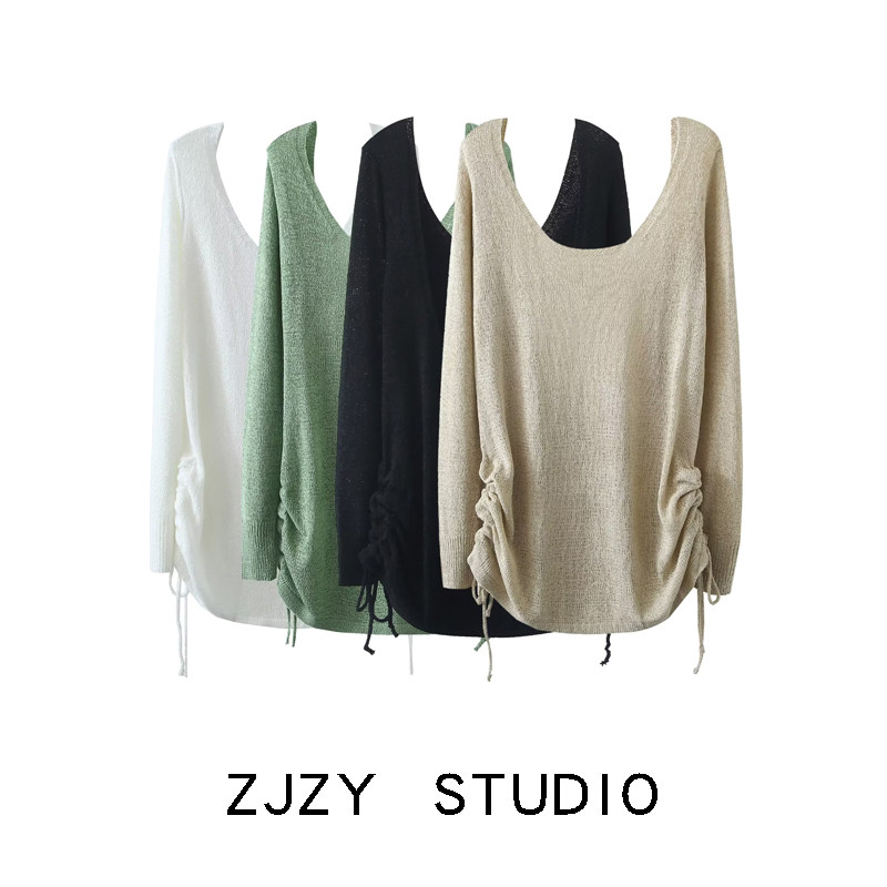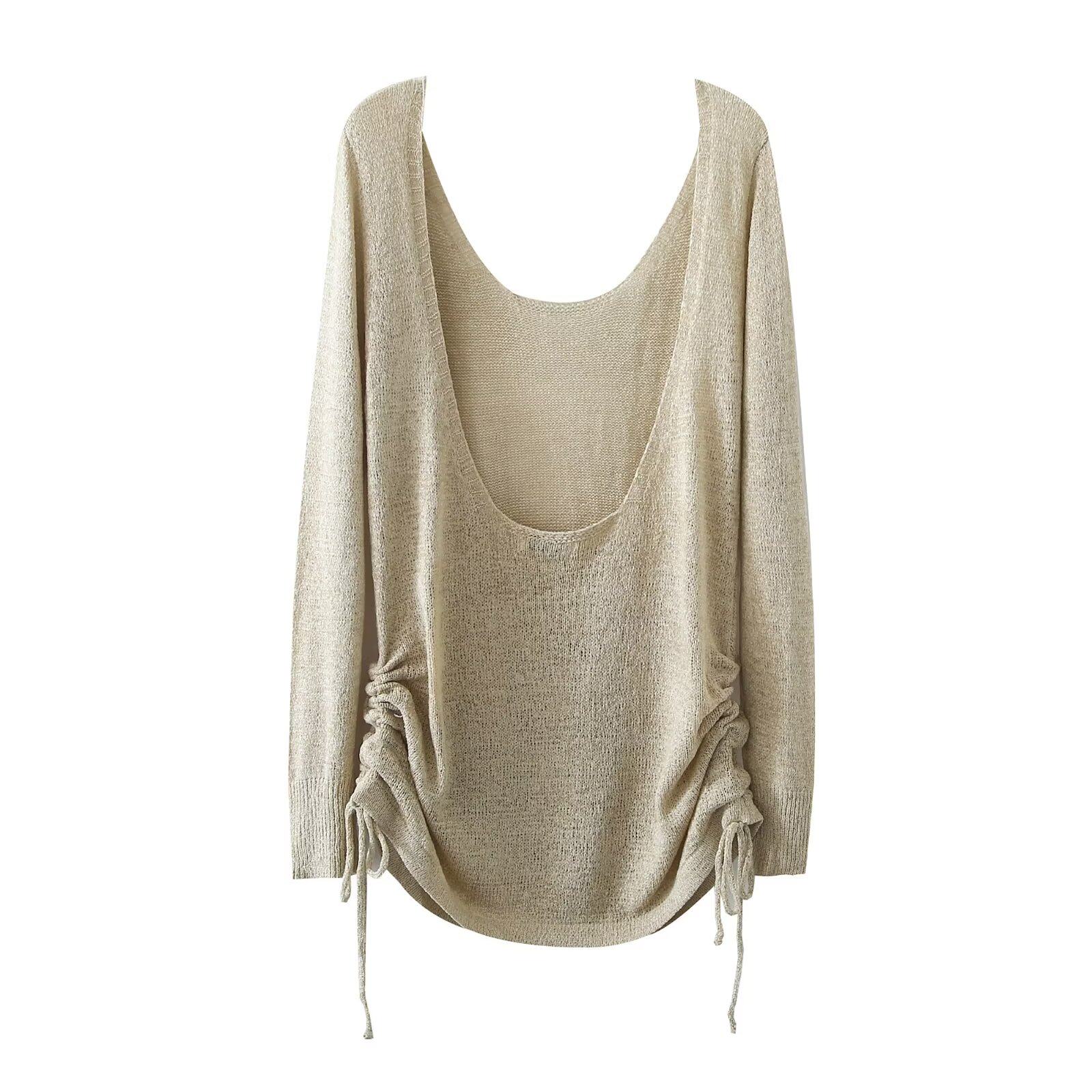 ZR Женская одежда ZA в европейском и американском стиле во французской нише, свободный и ленивый вязаный топ с большой открытой спиной и завязками
