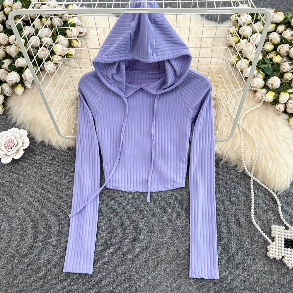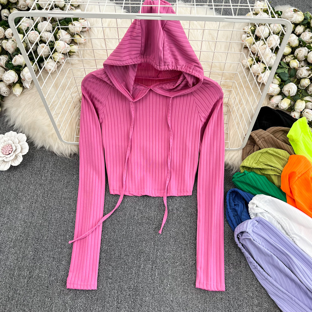 Осенний приталенный лонгслив с капюшоном, короткая толстовка, 2023, в корейском стиле