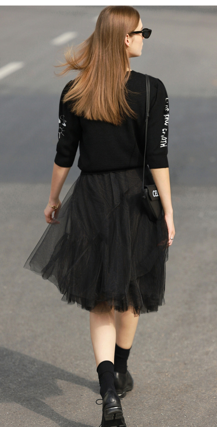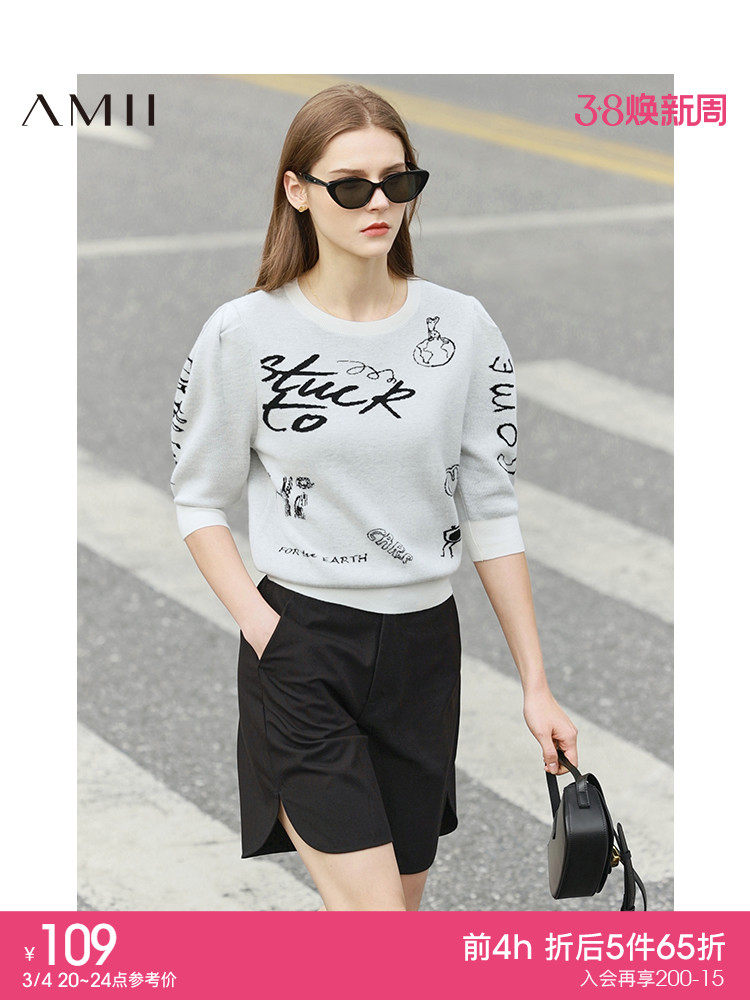 Amii Летний трикотажный короткий свитер с круглым воротником