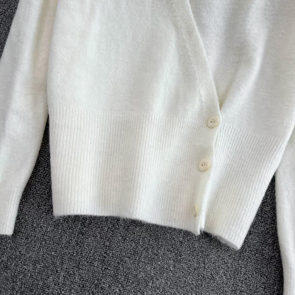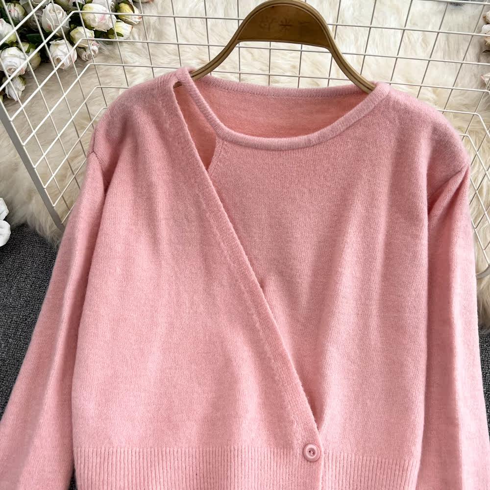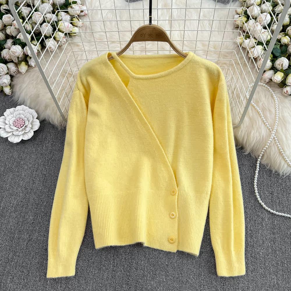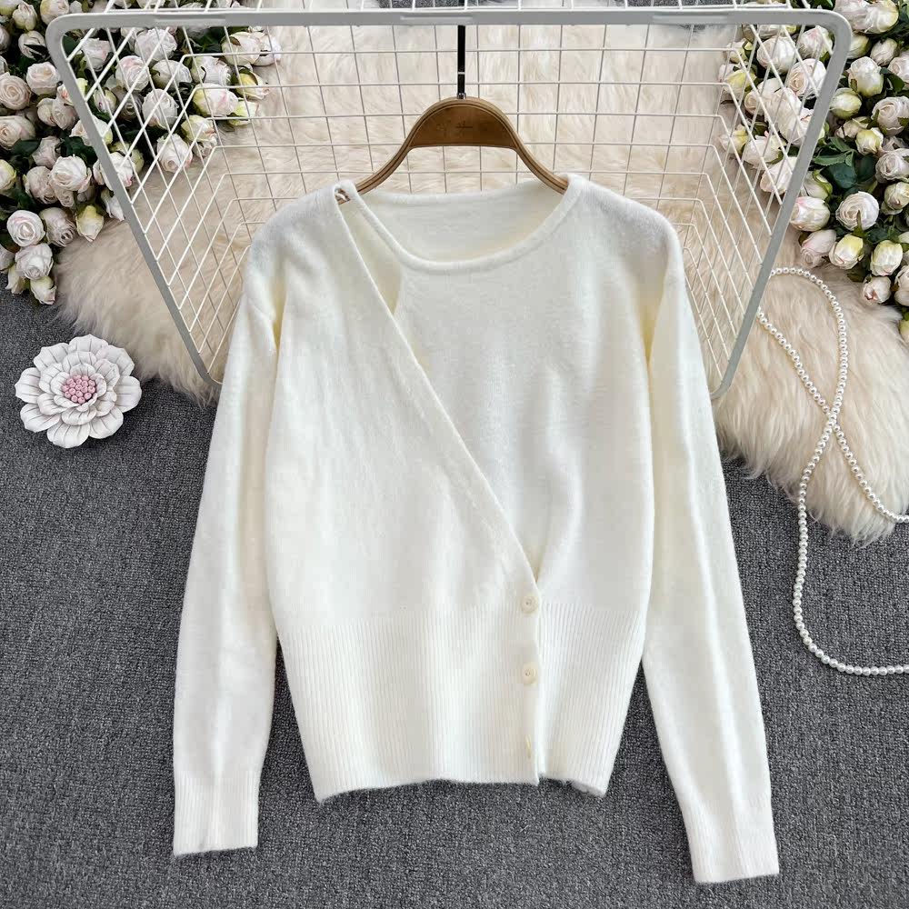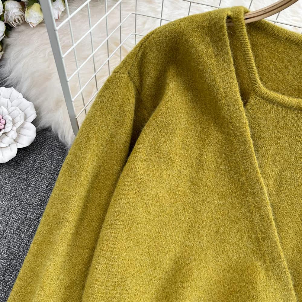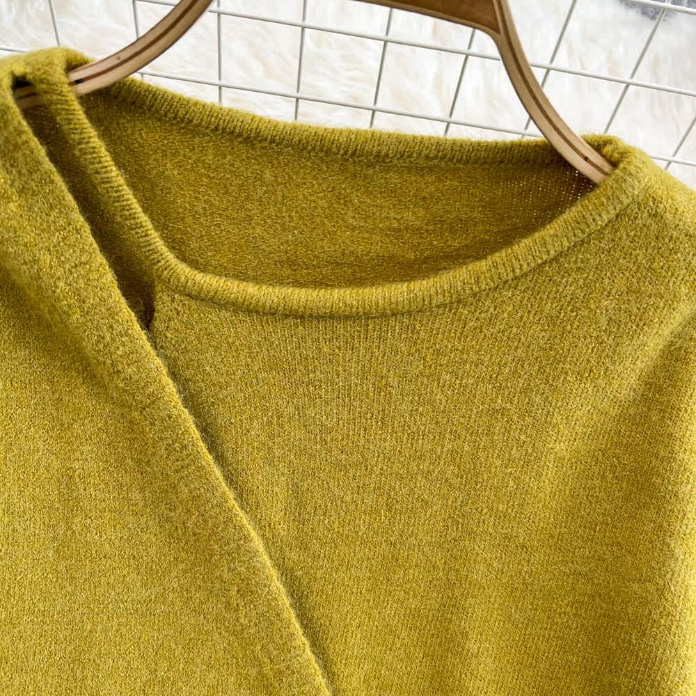 Осенний дизайнерский комплект с круглым воротником, трикотажный корсет, брендовый универсальный свитер, тренд сезона, оверсайз