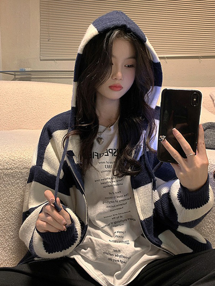 Весенняя демисезонная осенняя толстовка с капюшоном, трикотажный кардиган, свитер, коллекция 2023, городской стиль