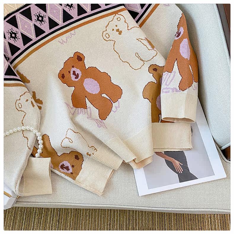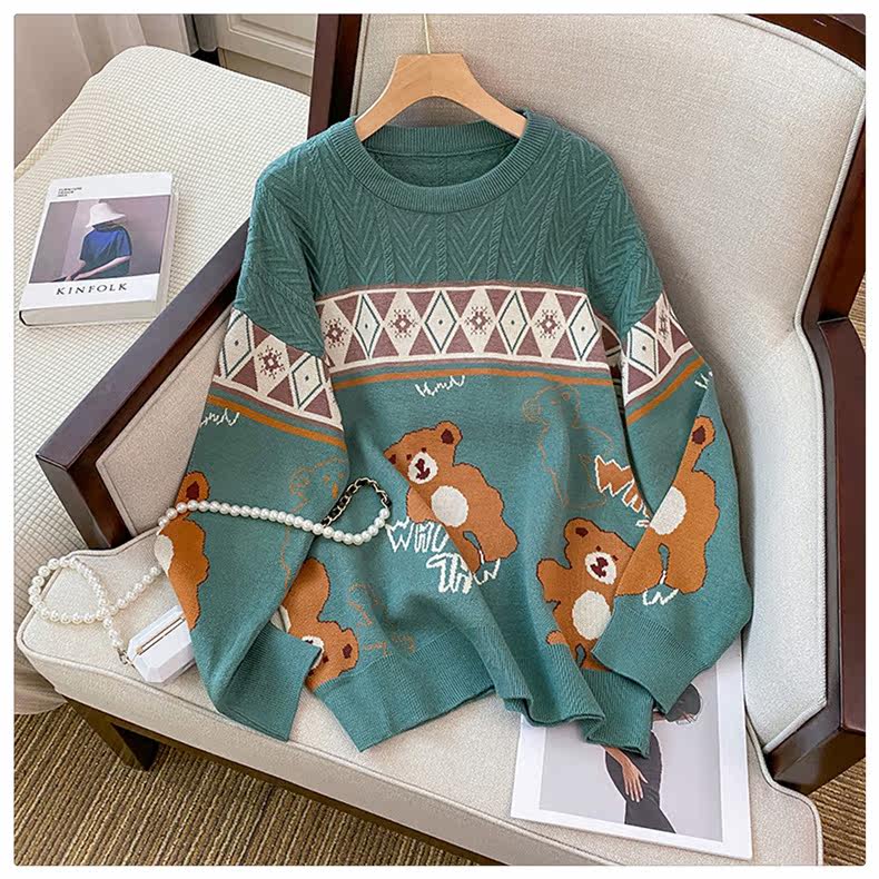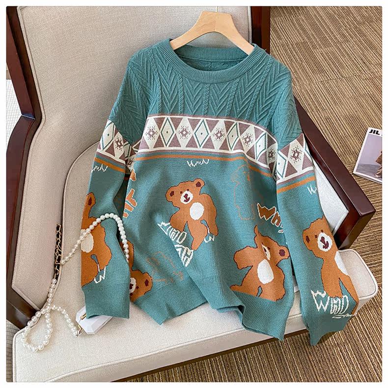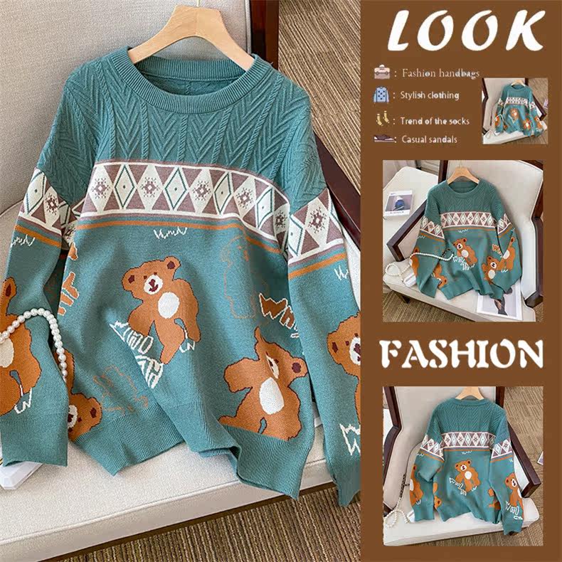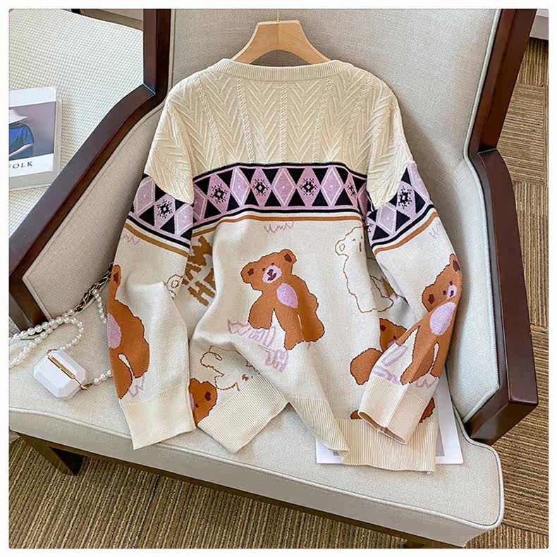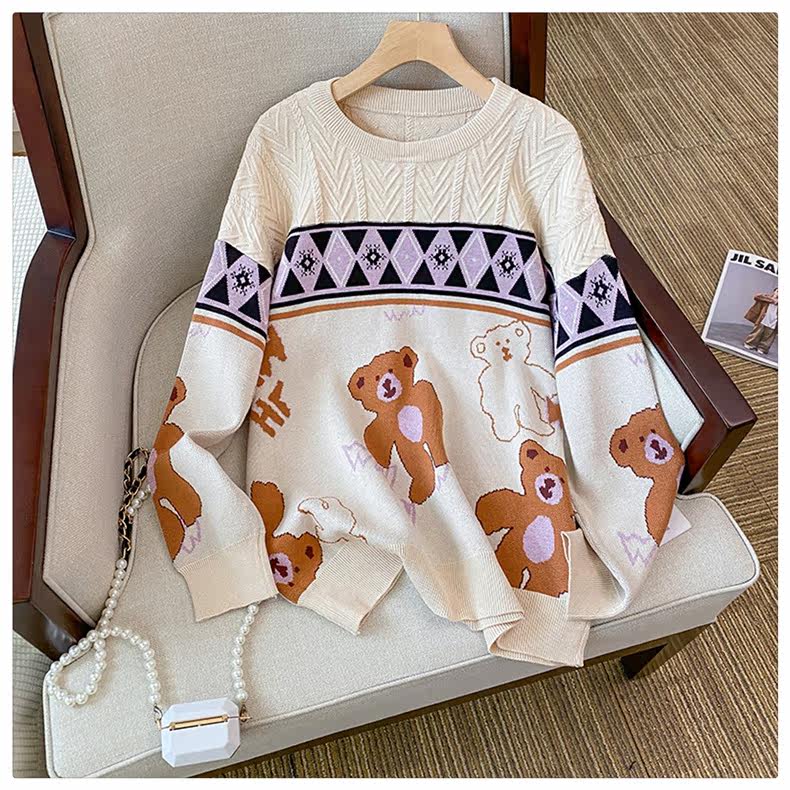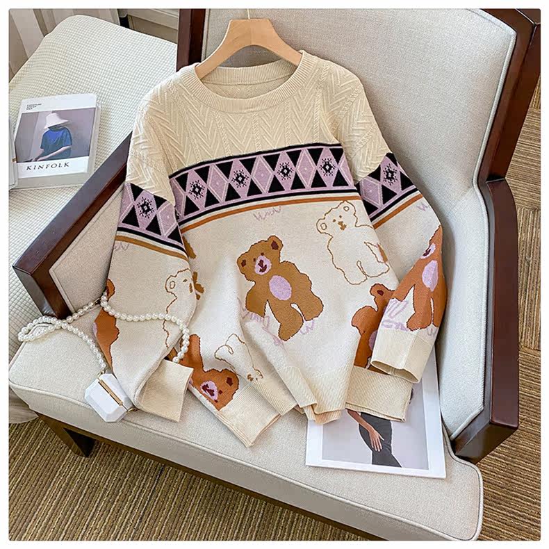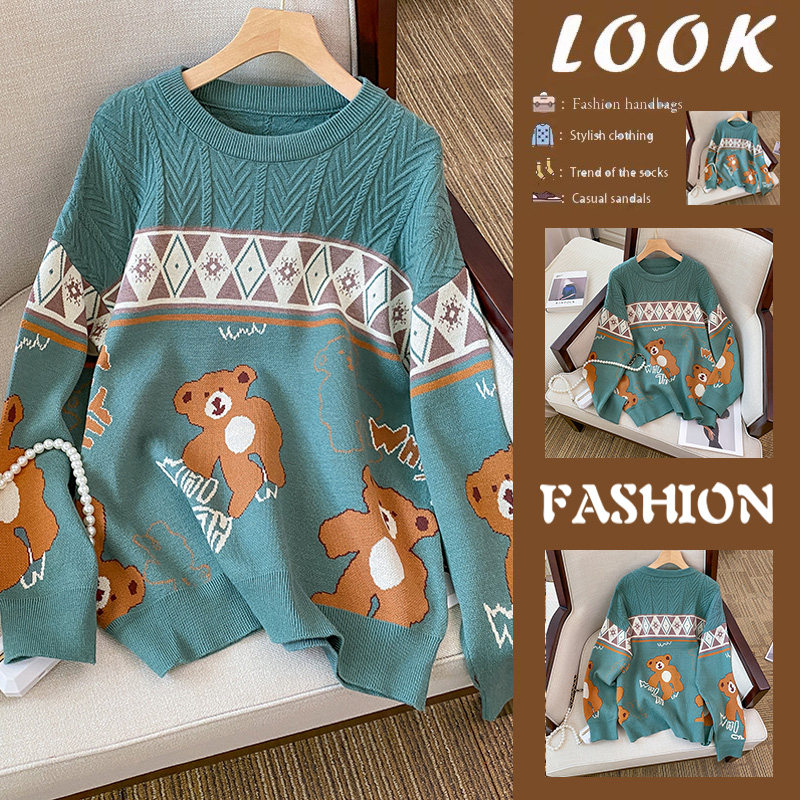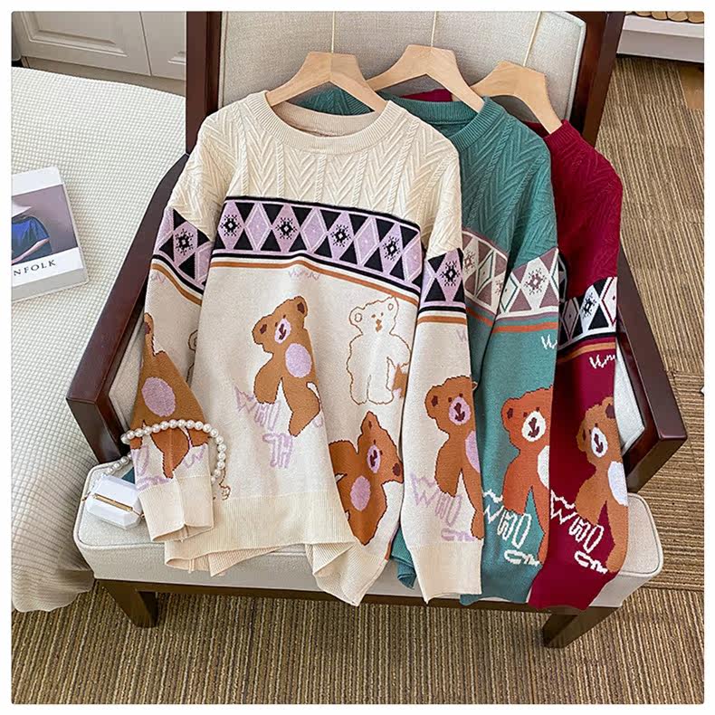 (Трансграничная торговля), мультяшный трикотажный свитер, рубашка, с медвежатами, оверсайз