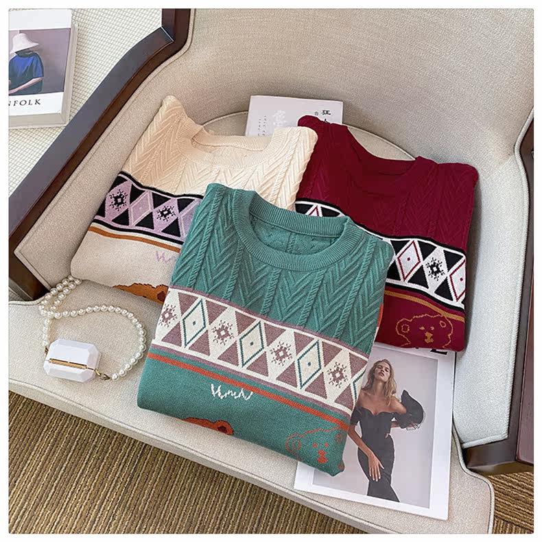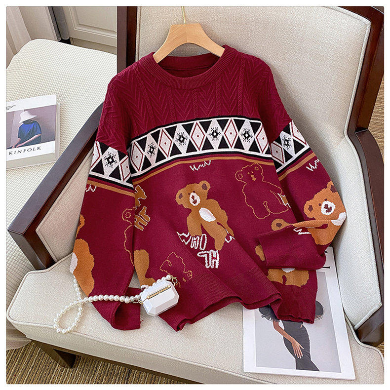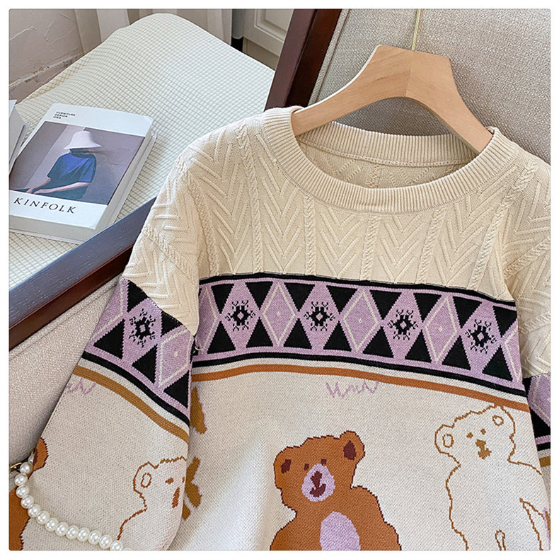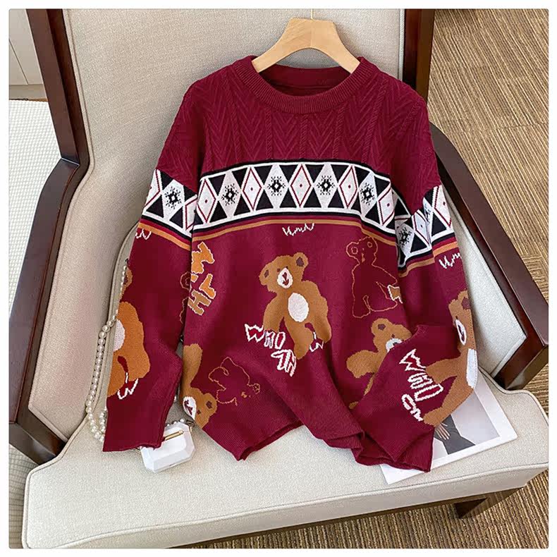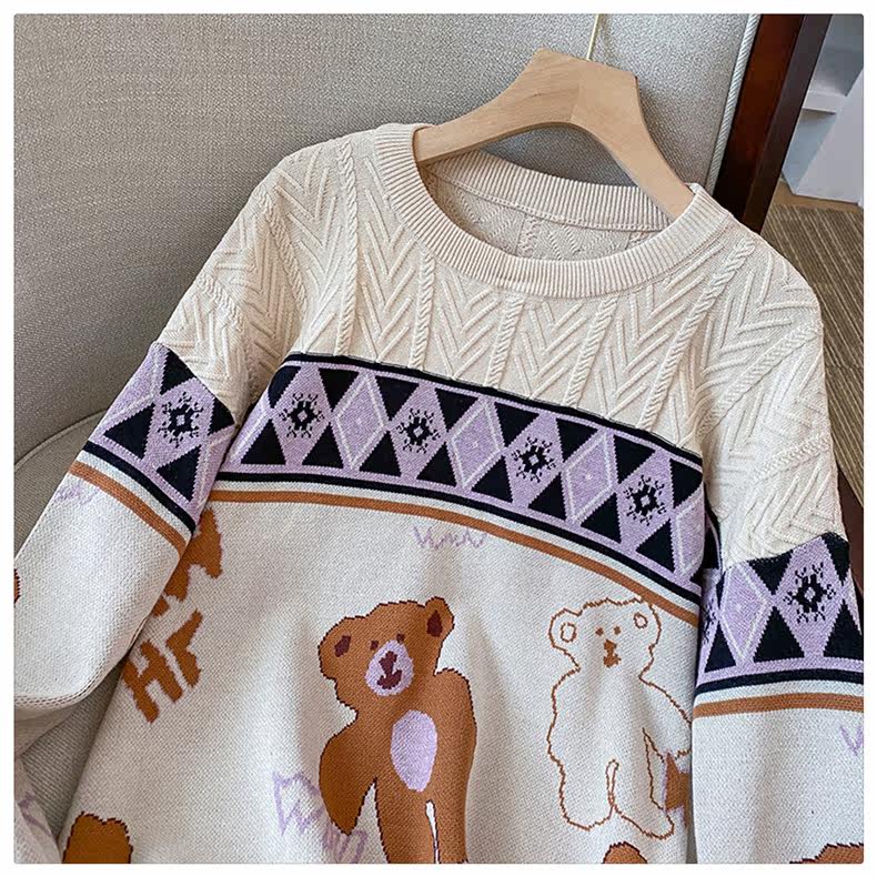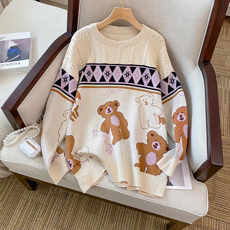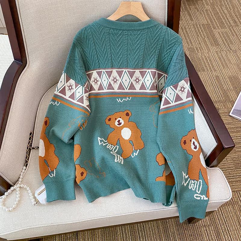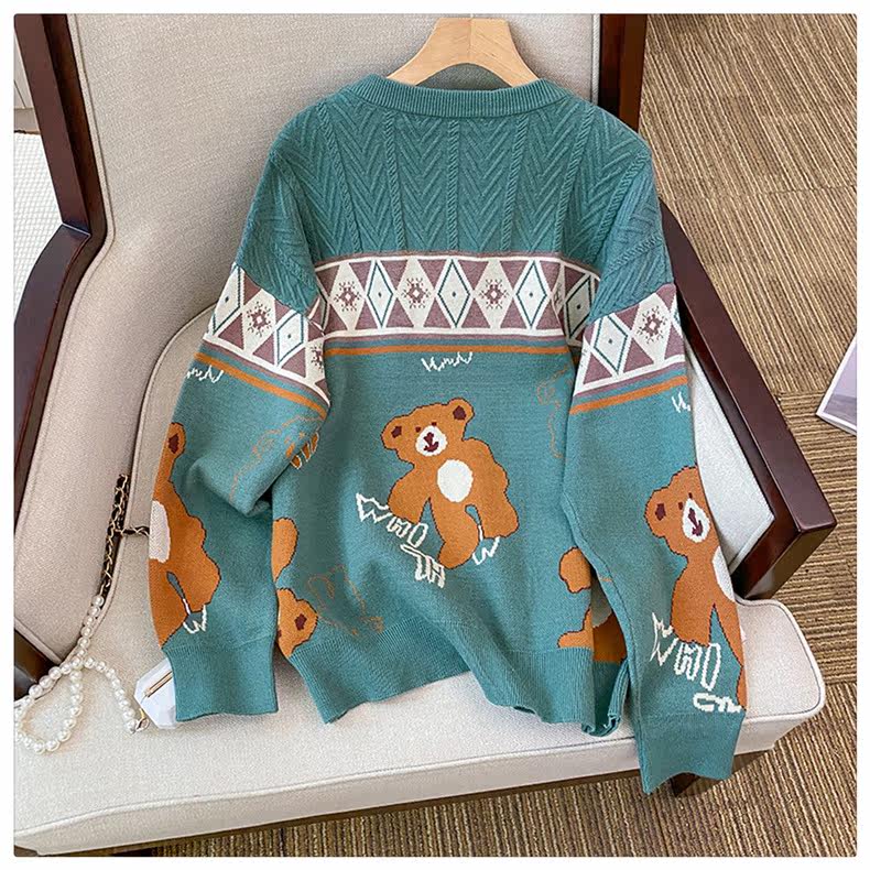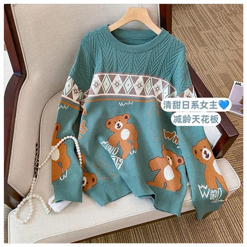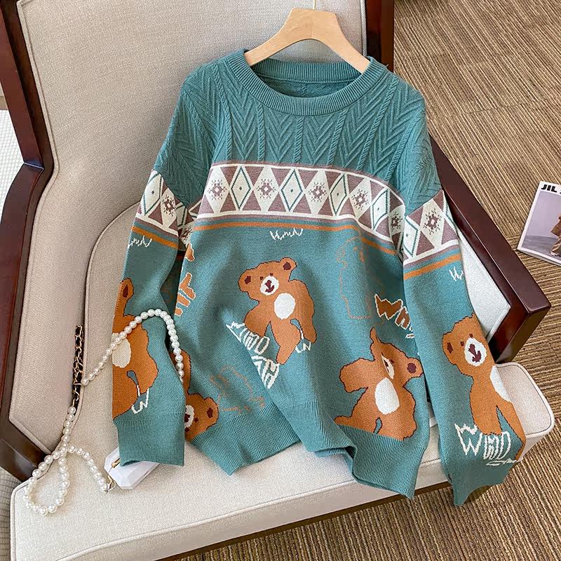 (Трансграничная торговля), мультяшный трикотажный свитер, рубашка, с медвежатами, оверсайз