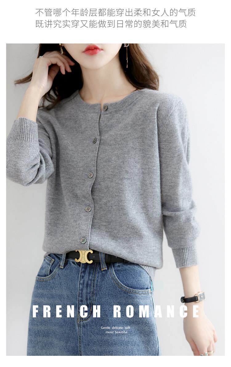 Шерстяной осенний кардиган с круглым воротником, тонкий лонгслив, кашемировое пальто, оверсайз