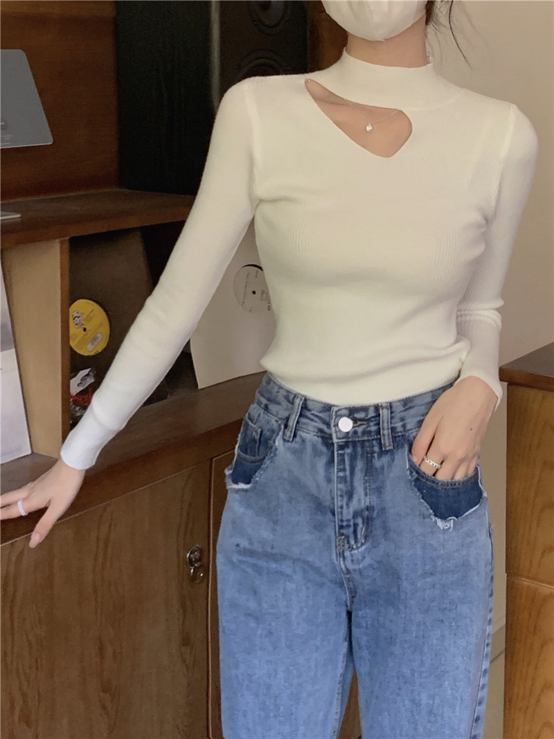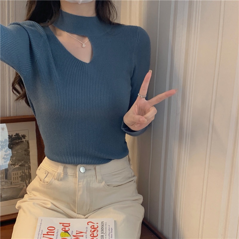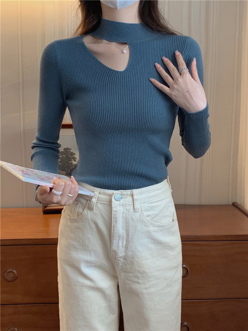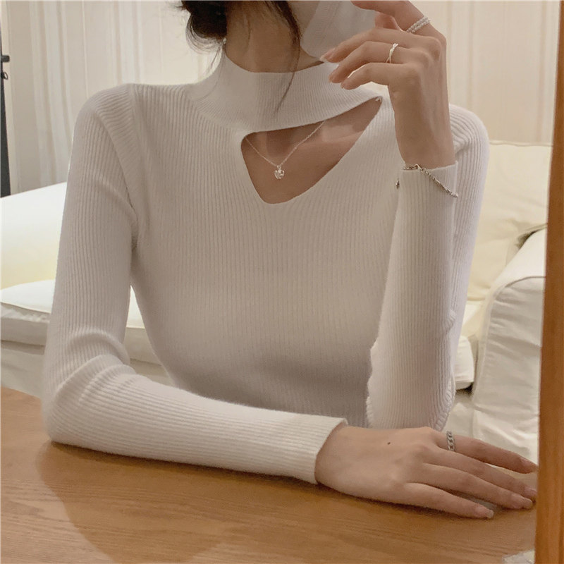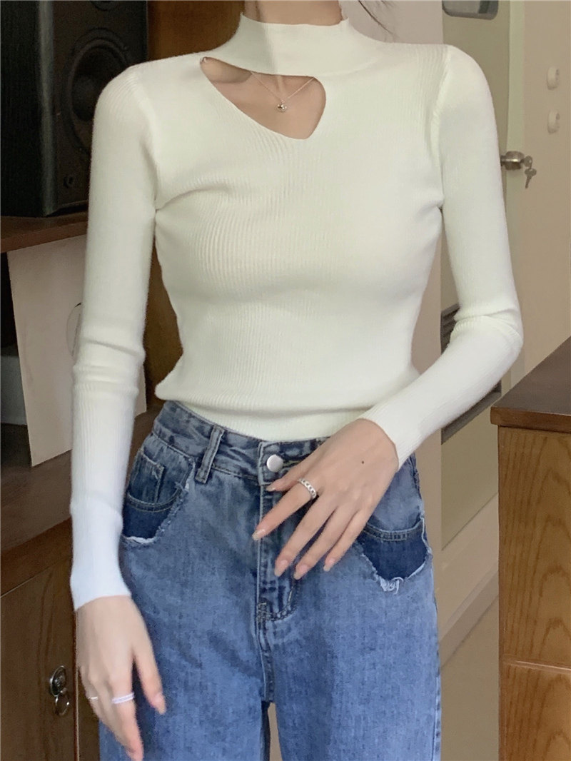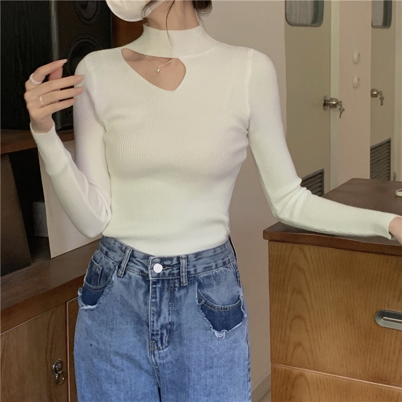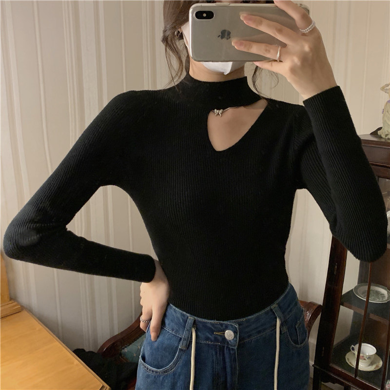 Демисезонный модный трикотажный свитер, лонгслив, высокий воротник