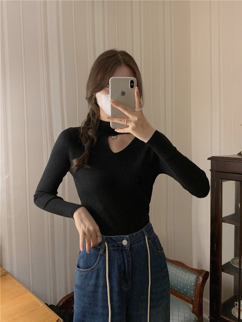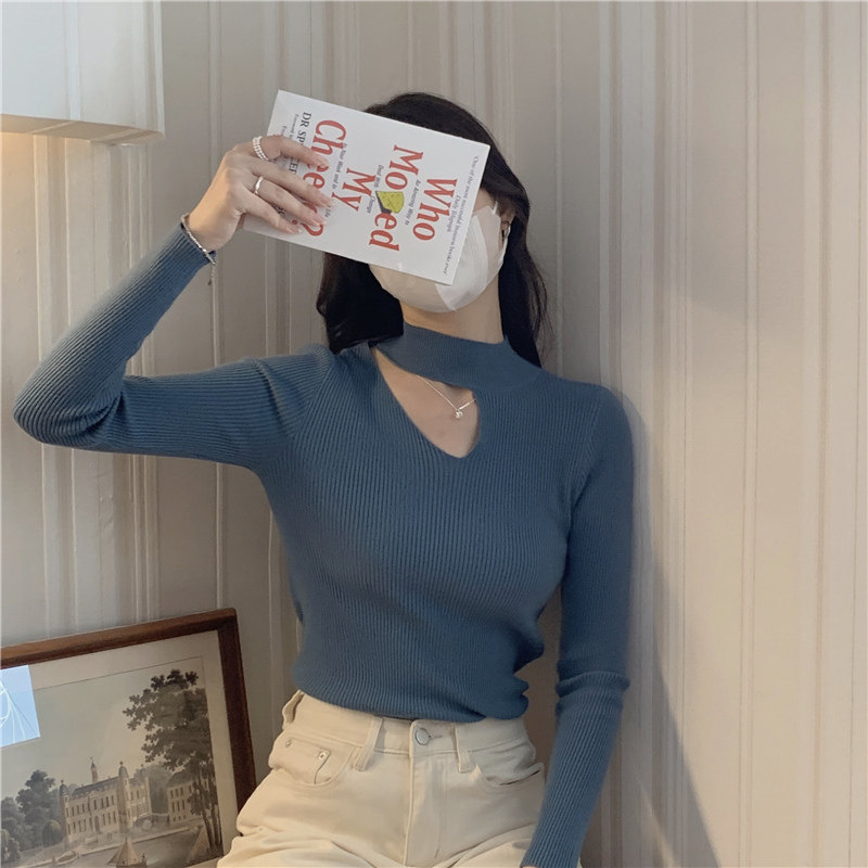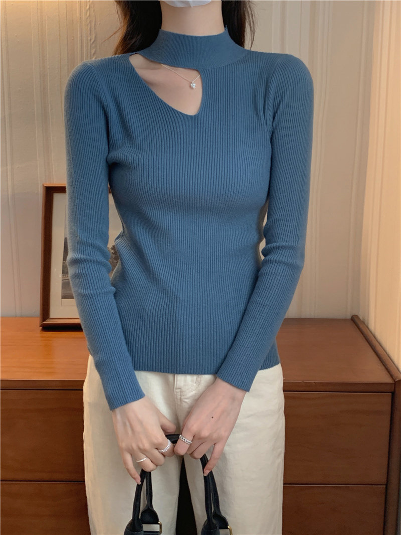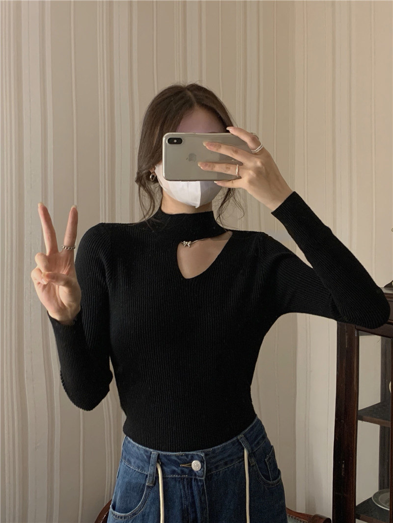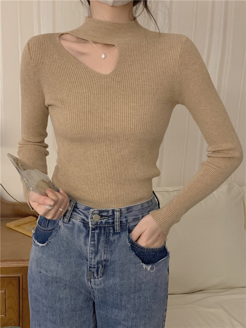 Демисезонный модный трикотажный свитер, лонгслив, высокий воротник