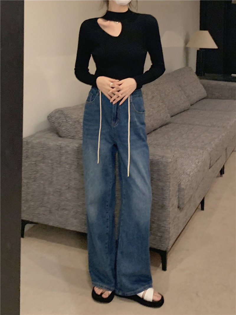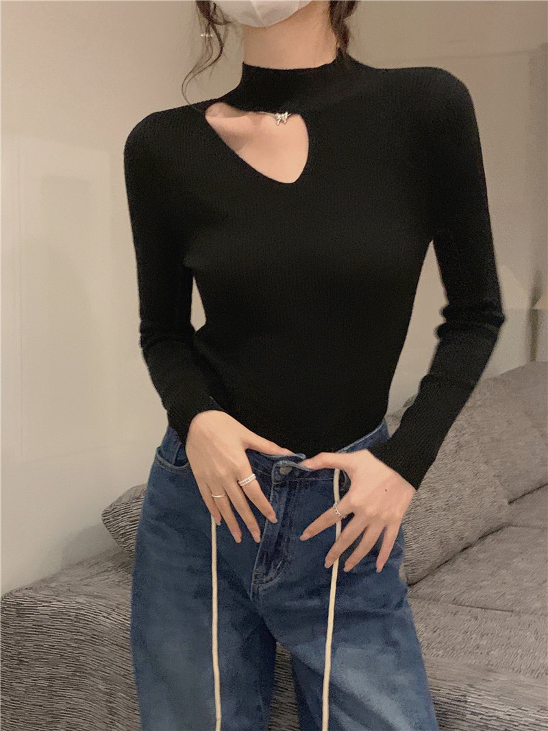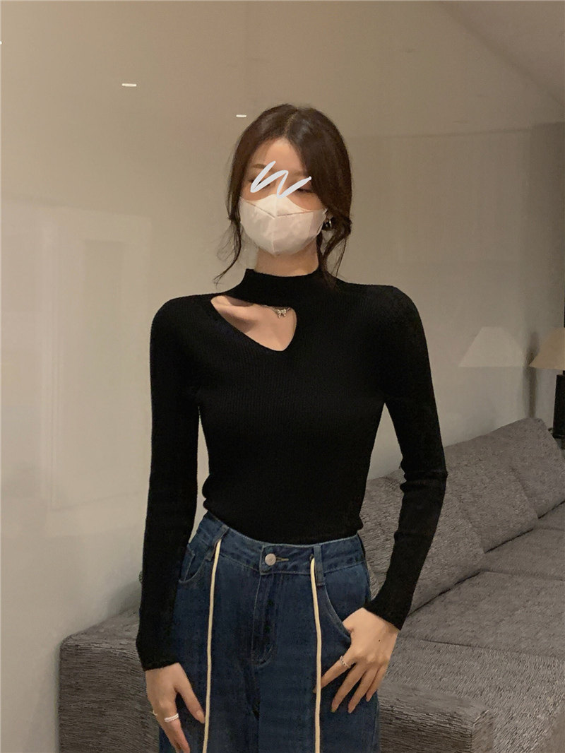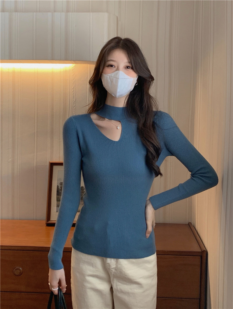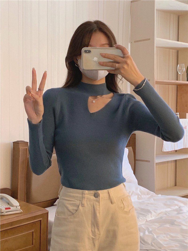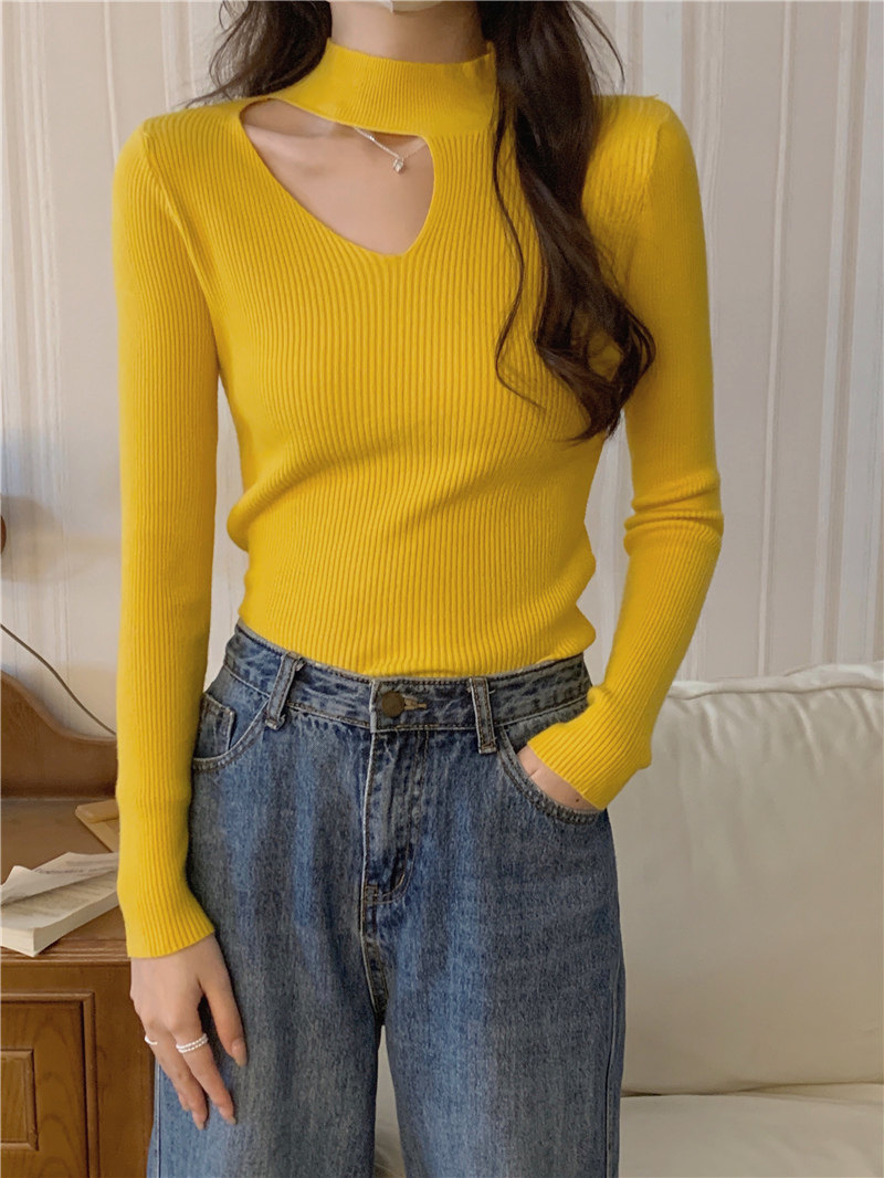 Демисезонный модный трикотажный свитер, лонгслив, высокий воротник
