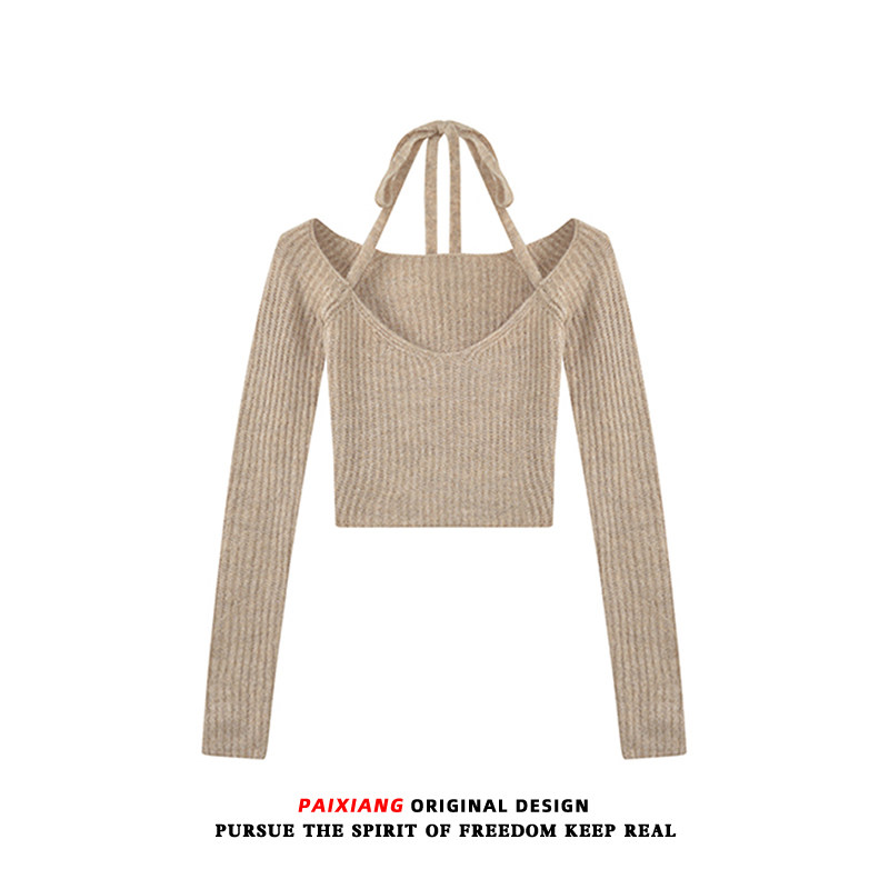 Трикотажный весенний свитер, базовый приятный телу сексуальный короткий ремень, V-образный вырез
