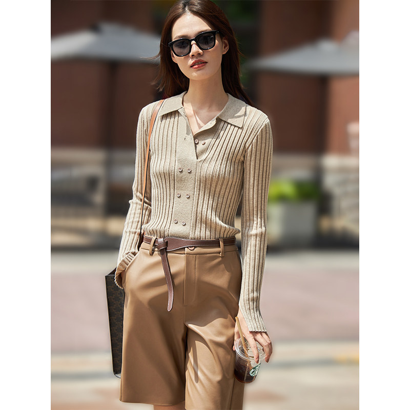 Трикотажный весенний приталенный свитер, базовая приятная телу футболка polo