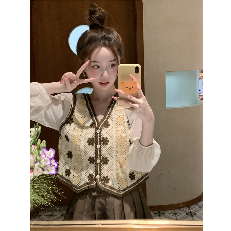 Осенний кардиган, модный лонгслив, в корейском стиле, с вышивкой, в цветочек