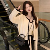 Демисезонный дизайнерский трикотажный тонкий кардиган, 2024 года, городской стиль, тренд сезона, облегающий крой, в стиле Шанель, французский стиль