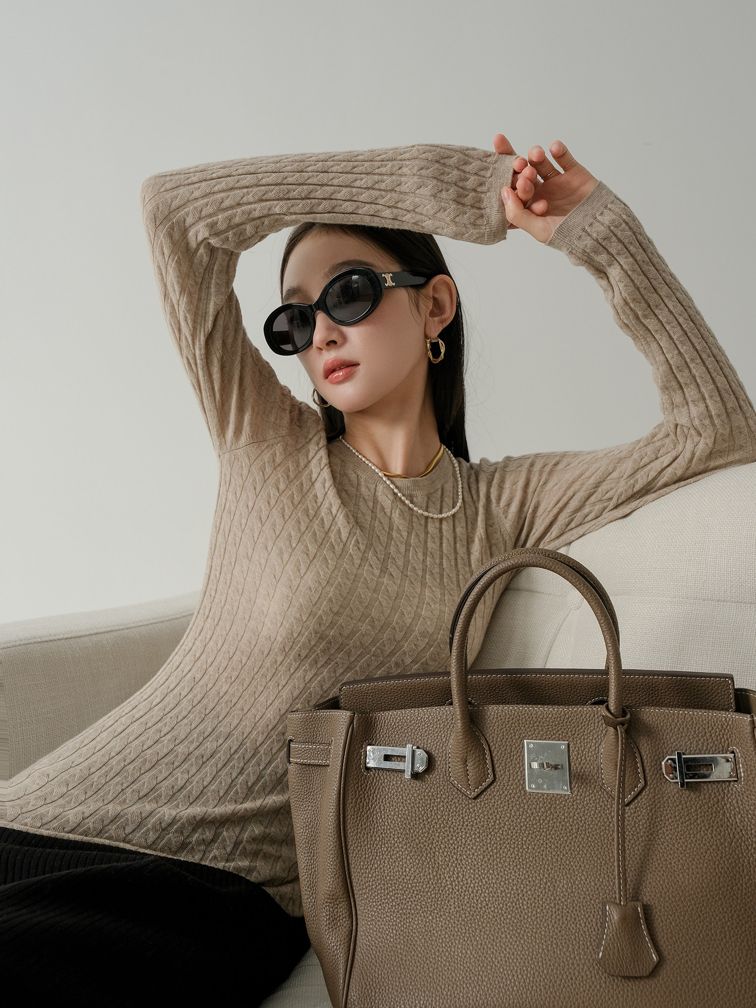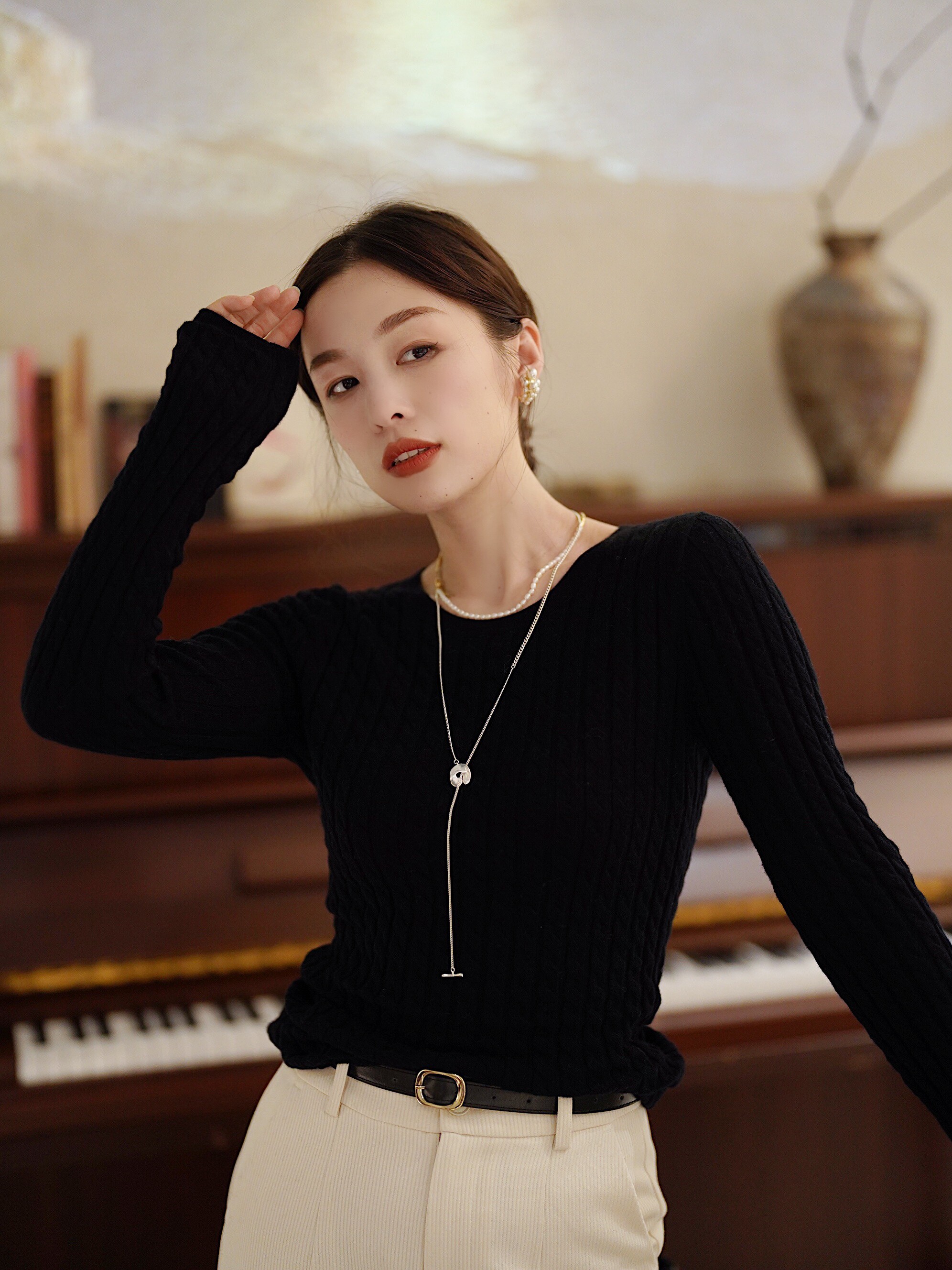 | Простая круглая шея,Сражаться на плечах, Бай Бай не выбирает людей Дизайн манжеты халатаЭто более подходит для осени и зимы, удобно и долговечна Подол -это также дизайн романтики, узкодоело Дайте простую одежду с ощущением стиля,Ленивая и случайная верхняя часть тела |