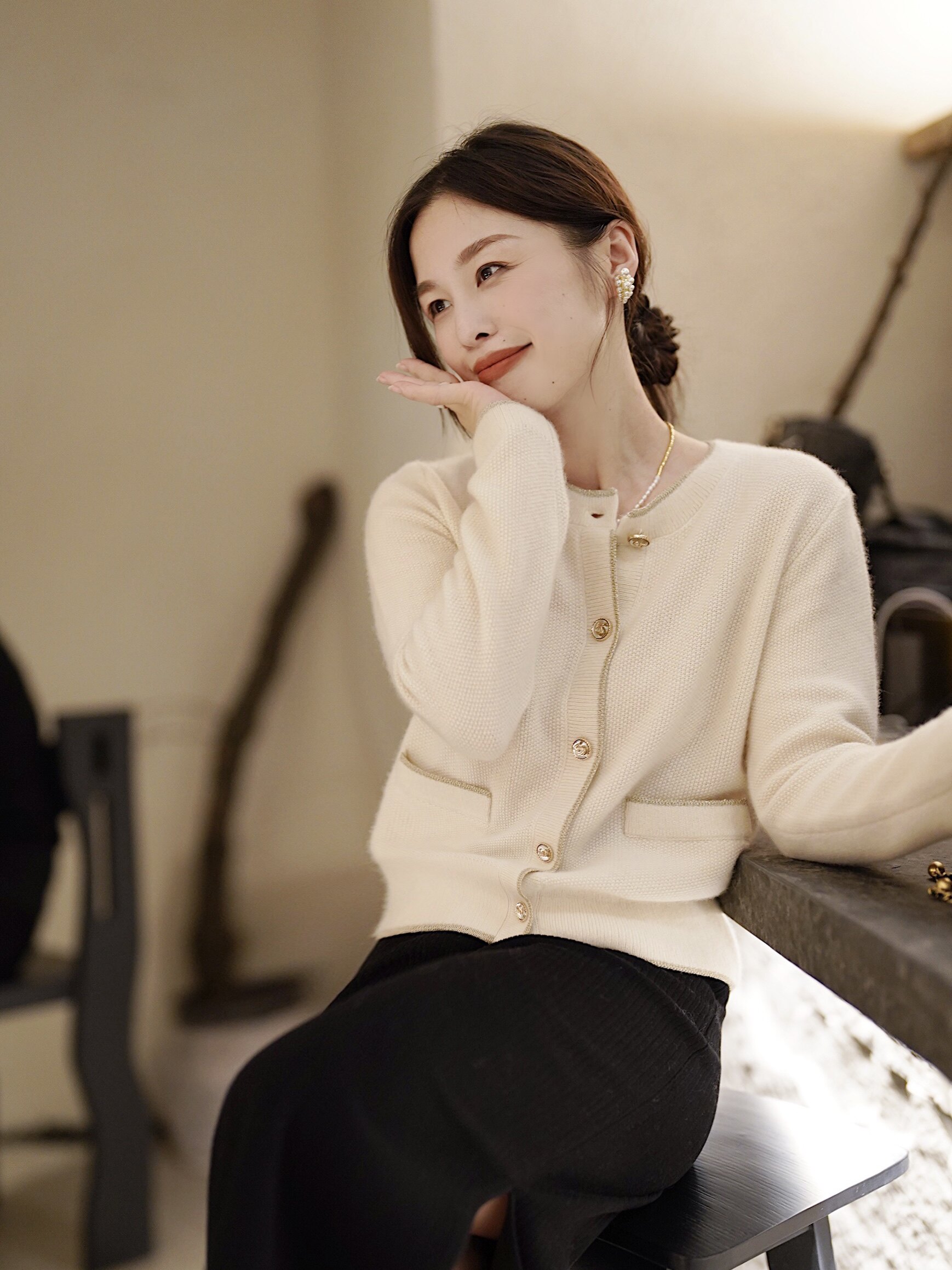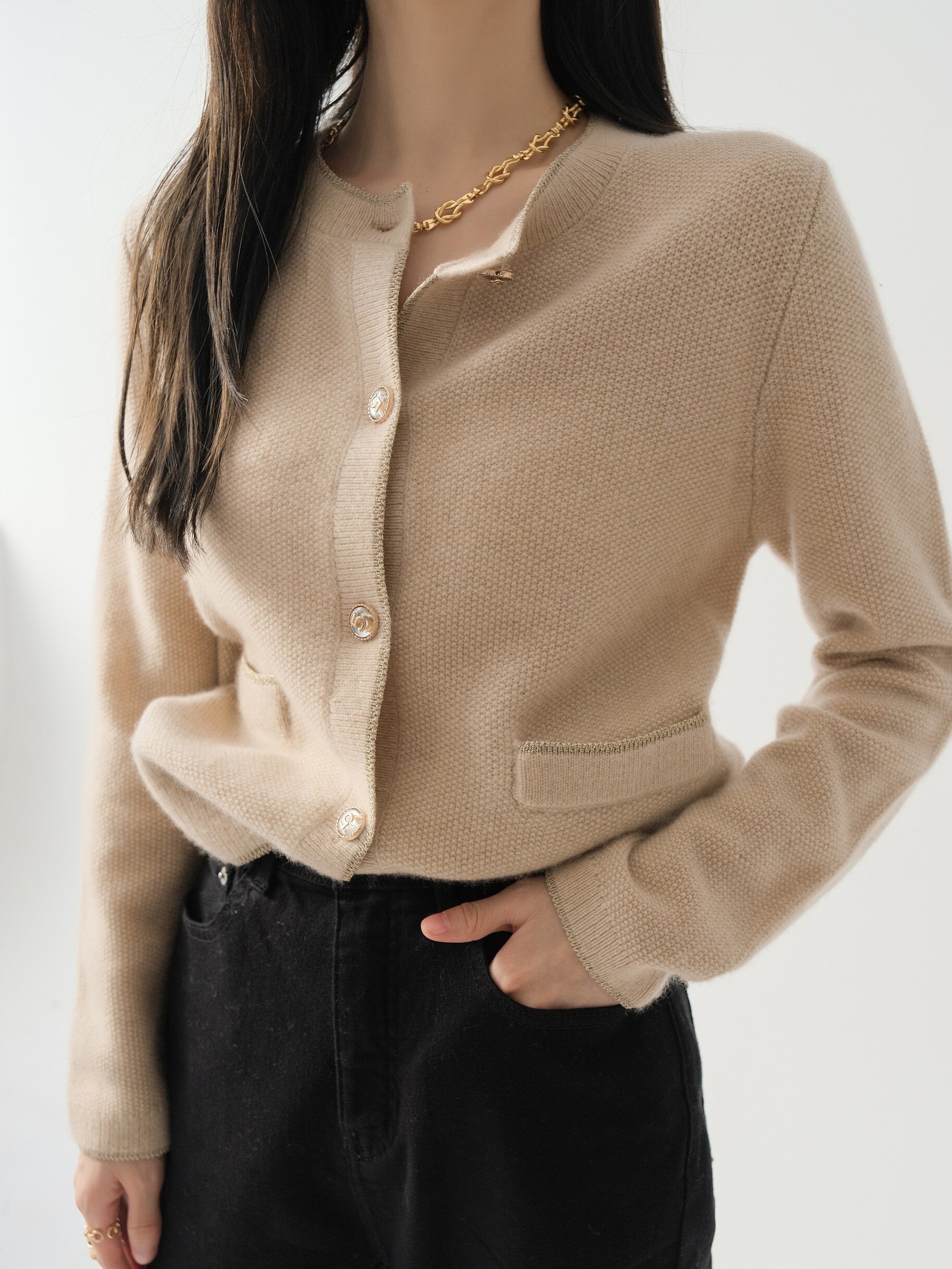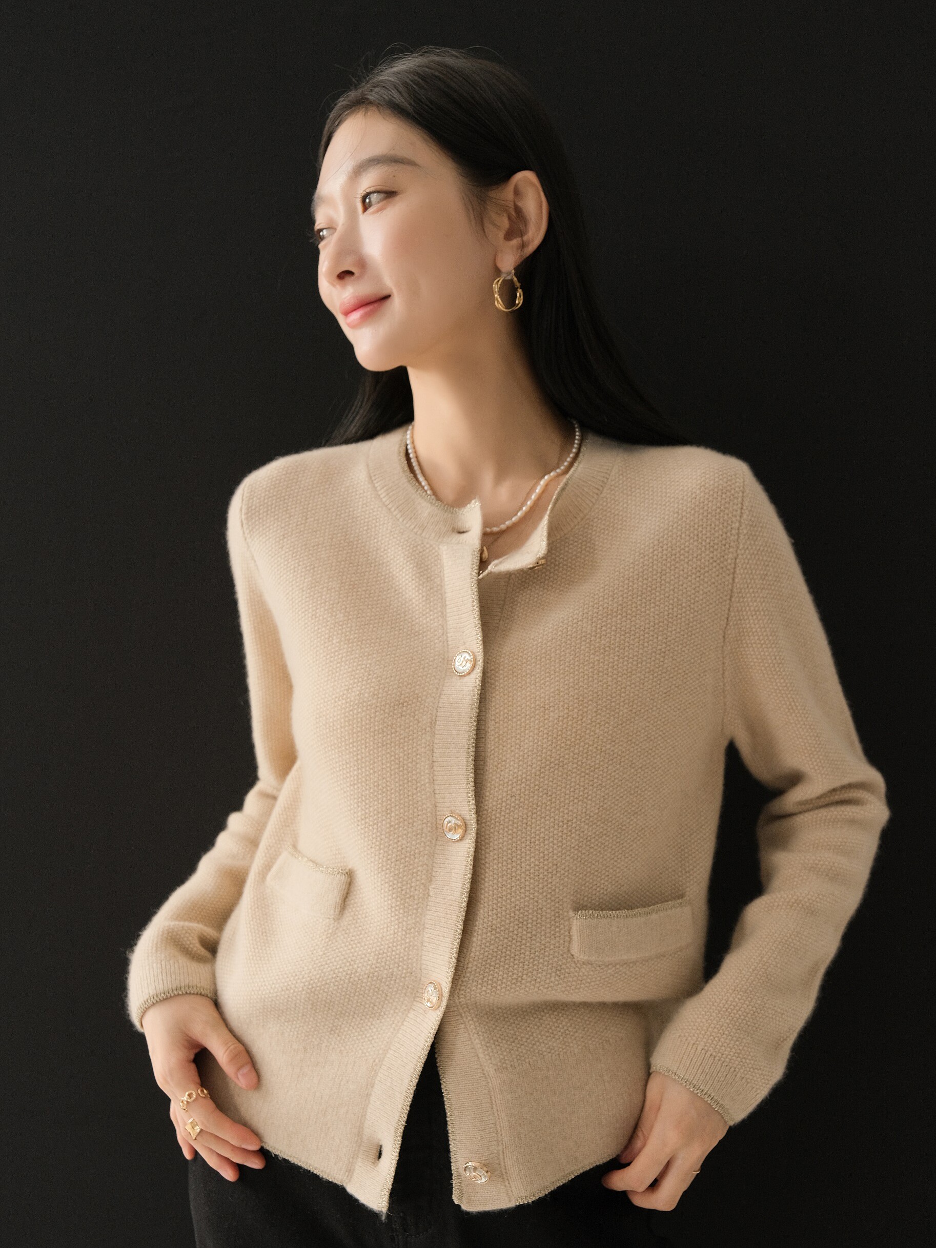 Кашемировый свитер тыквенной долины | Кашемир100.% Длиной -вязаный кардиган Z1619