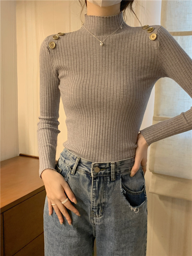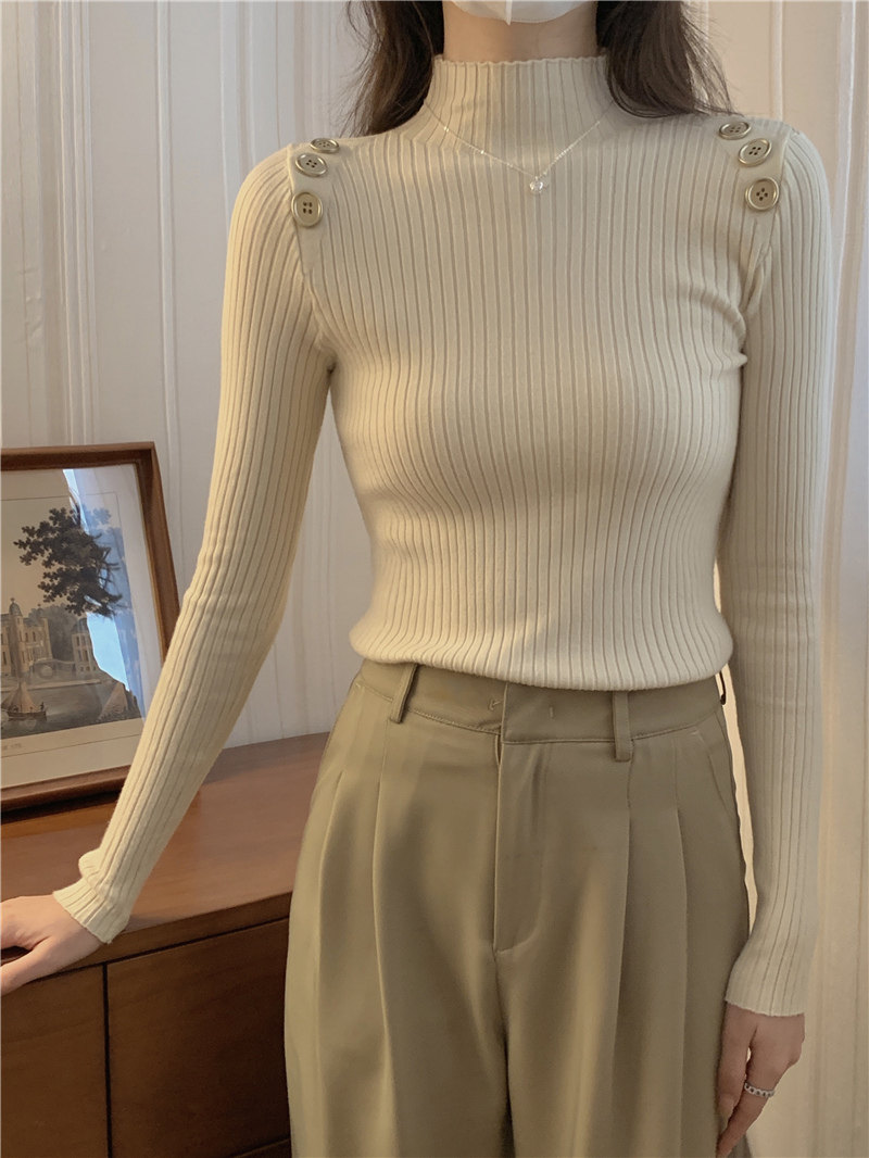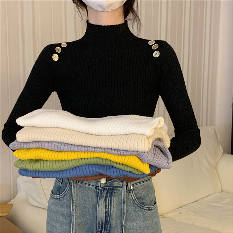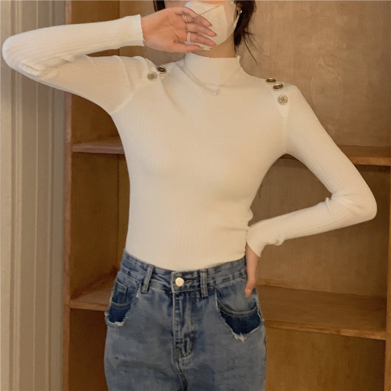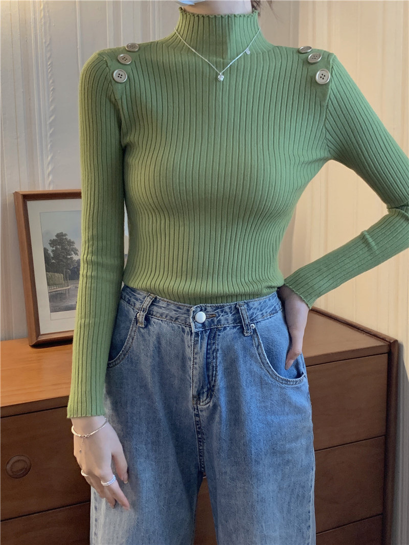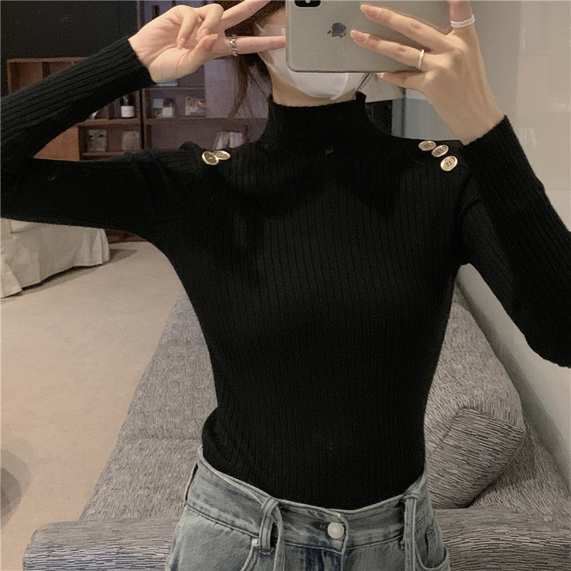 Демисезонный приталенный лонгслив, трикотажный свитер, высокий воротник