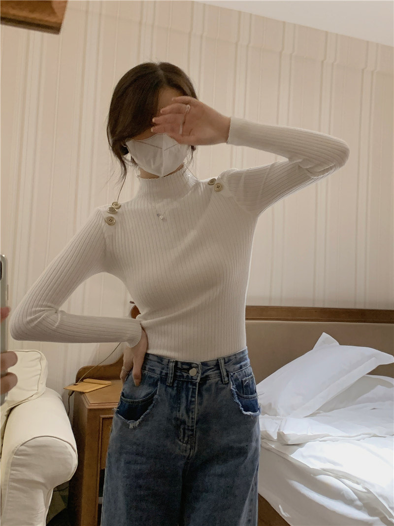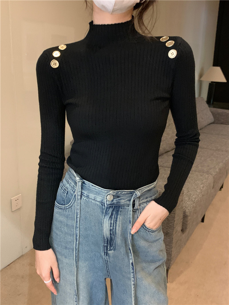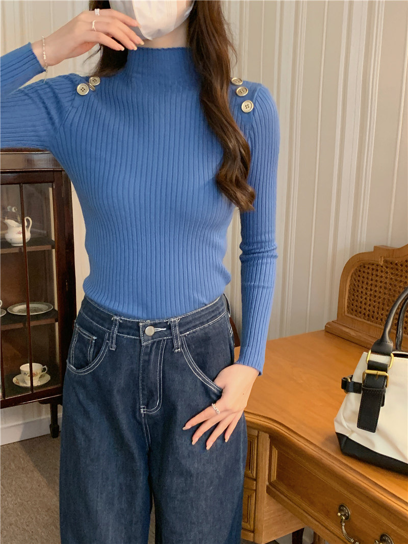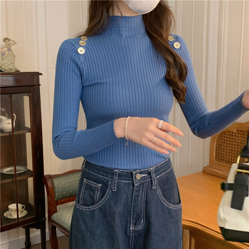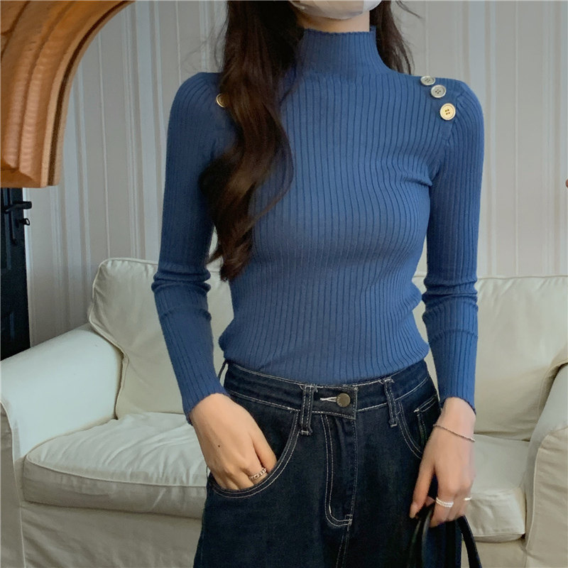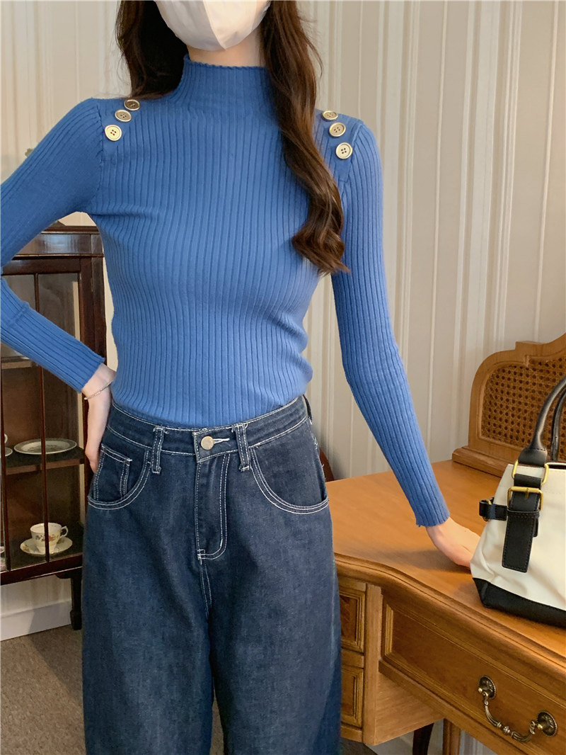 Демисезонный приталенный лонгслив, трикотажный свитер, высокий воротник