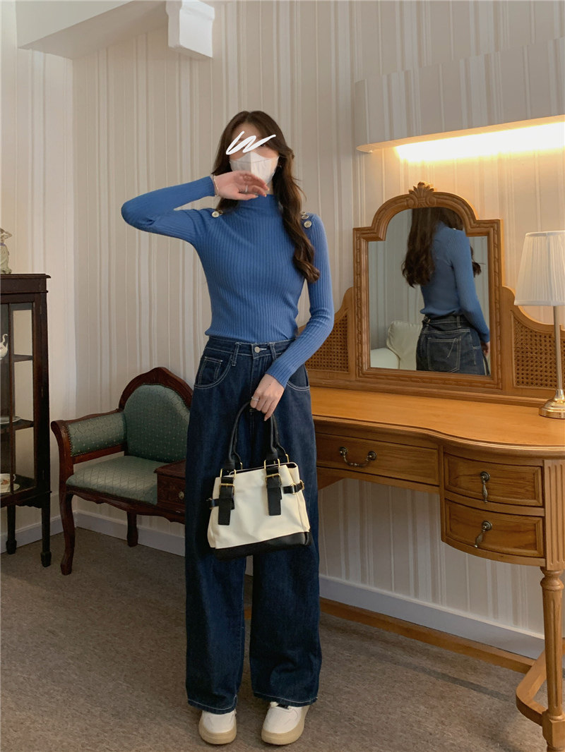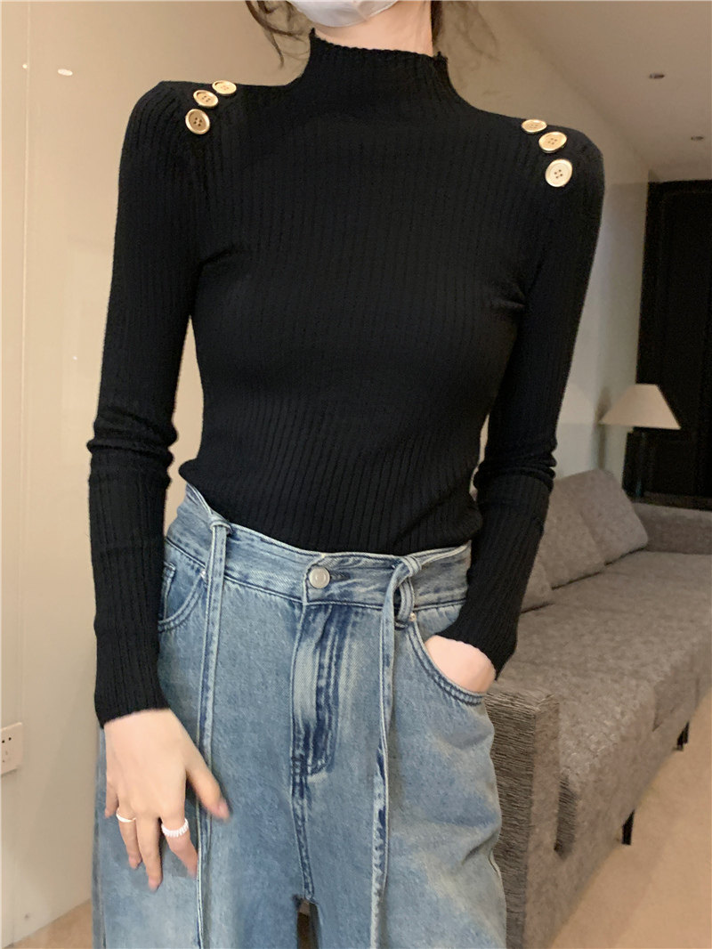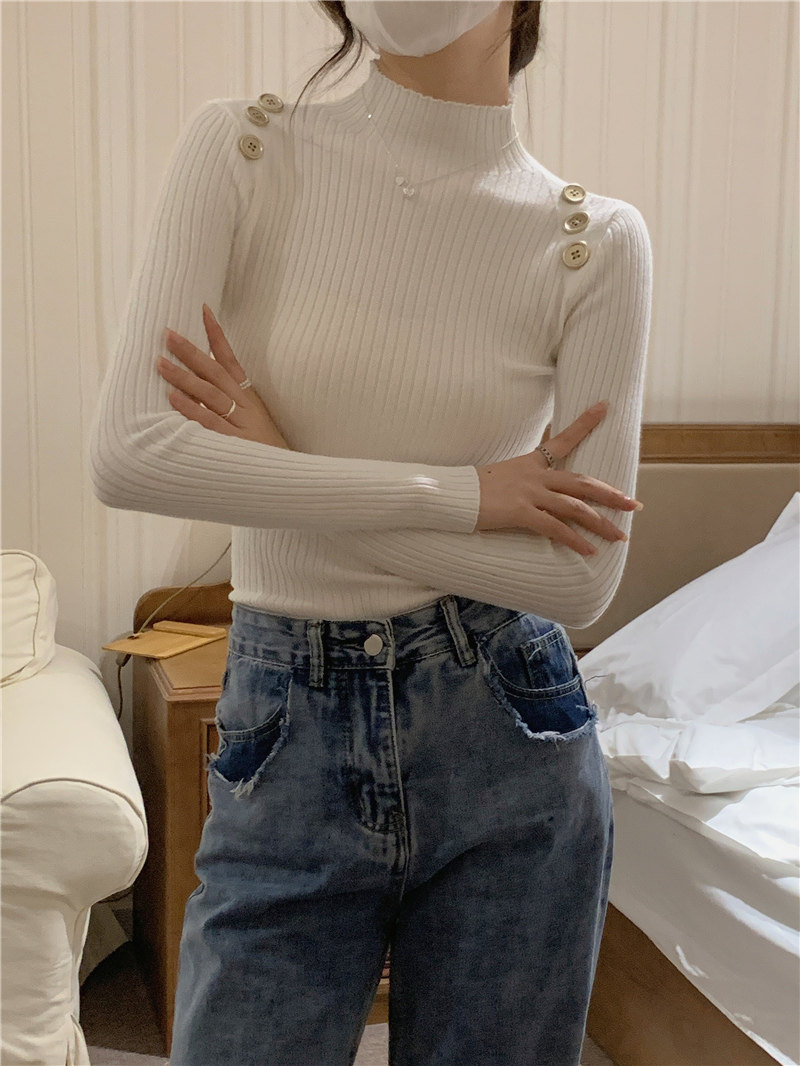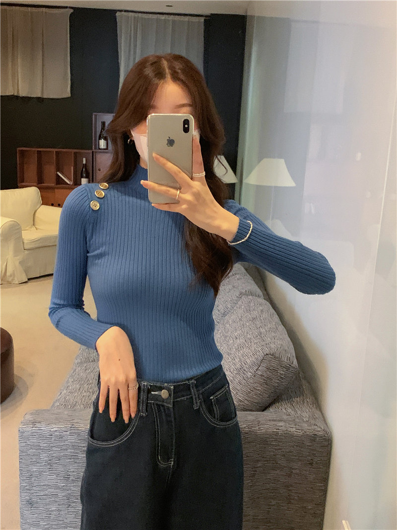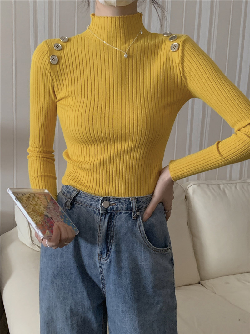 Демисезонный приталенный лонгслив, трикотажный свитер, высокий воротник