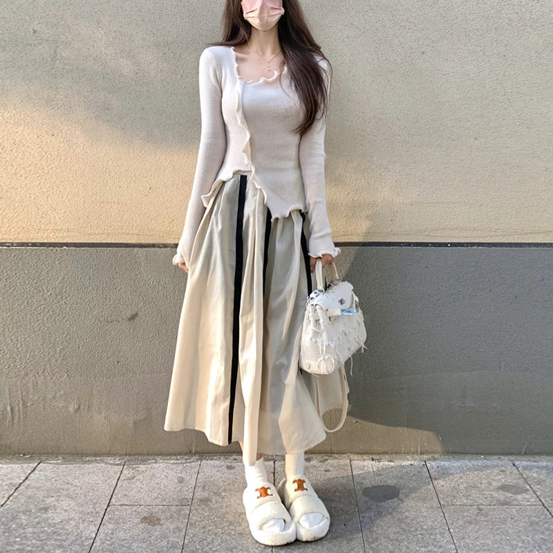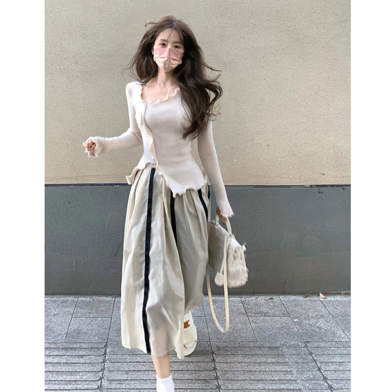 Трикотажный дизайнерский свитер, приталенный осенний лонгслив, базовая приятная телу юбка, комплект, тренд сезона