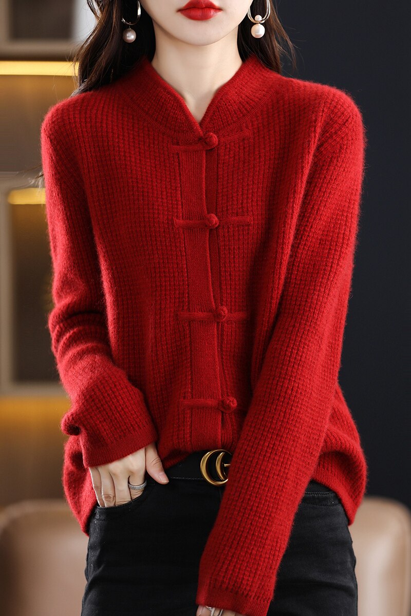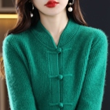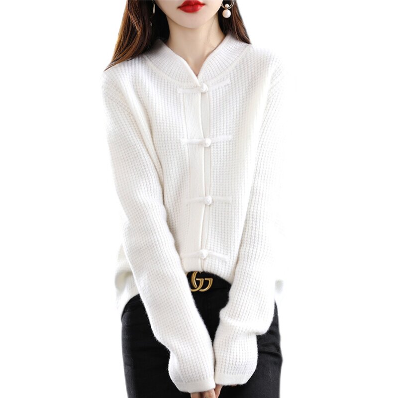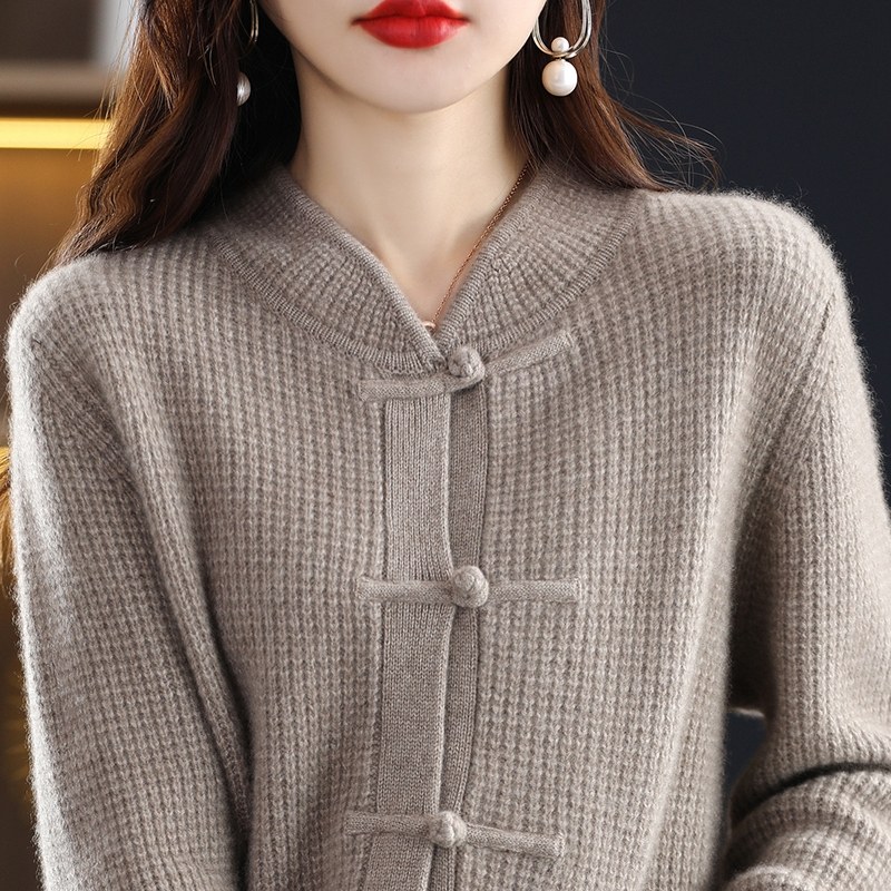 Демисезонный ретро шерстяной кардиган, свитер, куртка, увеличенная толщина, китайский стиль, свободный крой
